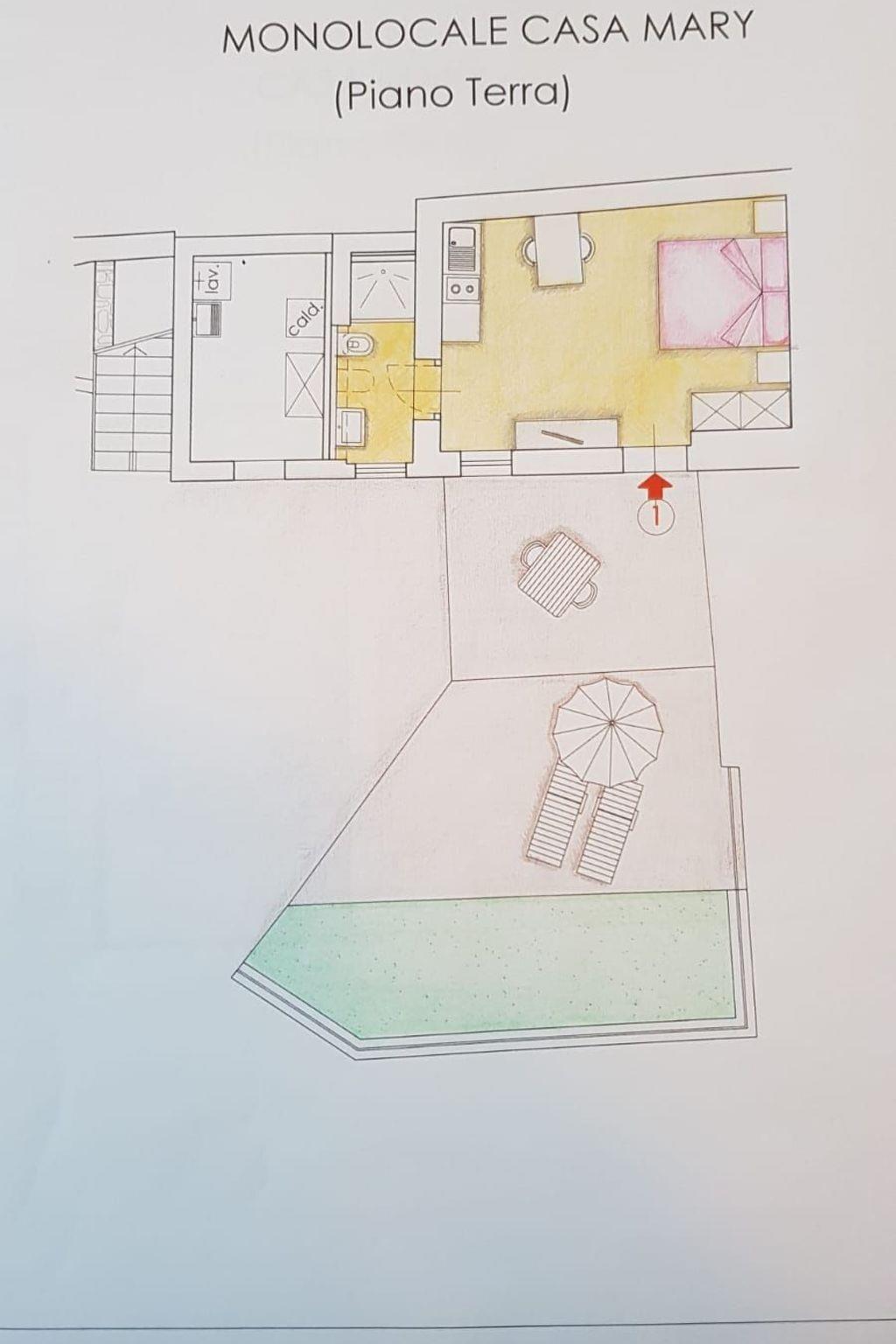 Casa Mary liegt in Castello di Brenzone, oberhalb der Kirche und verfügt über insgesamt drei Ferienwohnungen. Diese neue Einzimmerwohnung liegt im Erdgeschoss und hat eine Wohnfläche von ca. 30 qm. .Sie hat einen separaten Eingang in den Wohn/Schlafraum mit einem Doppelbett und einem Essplatz sowie einer durch einen Vorhang abgeteilten Kochnische mit 2 Herd-elektrische, Kaffeemaschine, Kühlschrank, Toaster. Das Bad hat eine Dusche, WC und ein Waschbedecken.In der Wohnung gibt eine Sat-TV, Heizung, wifi, ein Fön und Bügeleisen.
