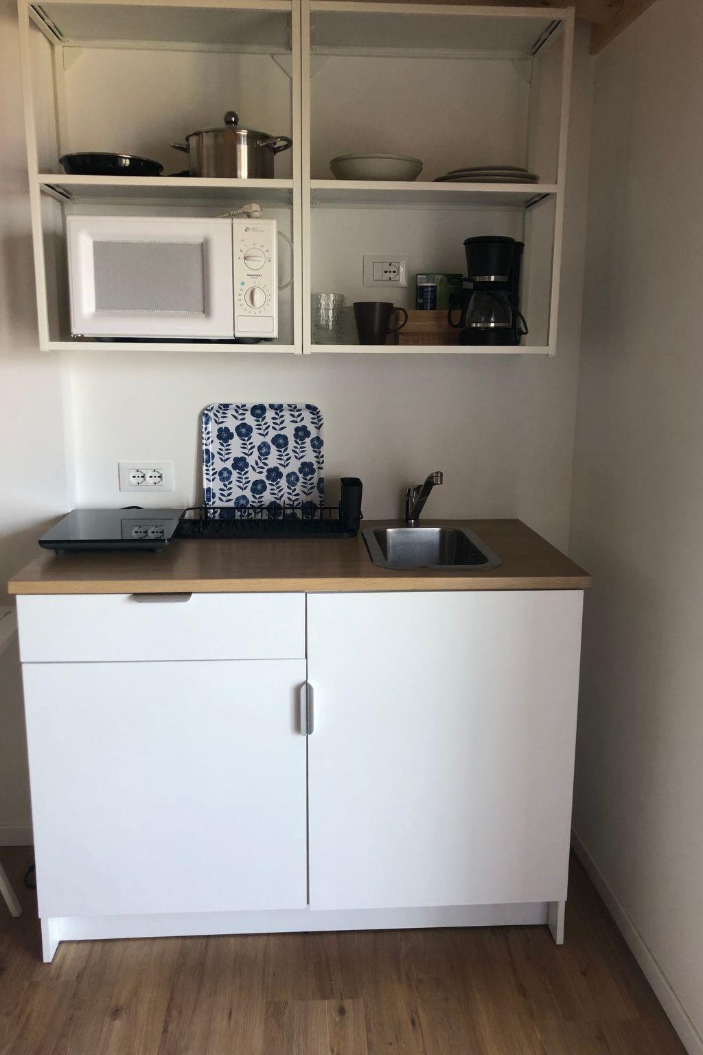 Die n. 8 ist ein neues Zimmer. Es befindet sich im 2. Etage. Es gibt ein Doppelbett, eine kleine Kueche mit Induktionskochfeld, kleine Spüle, Mikrowelle, Toaster und Kaffeemaschine, Kühlschrank.