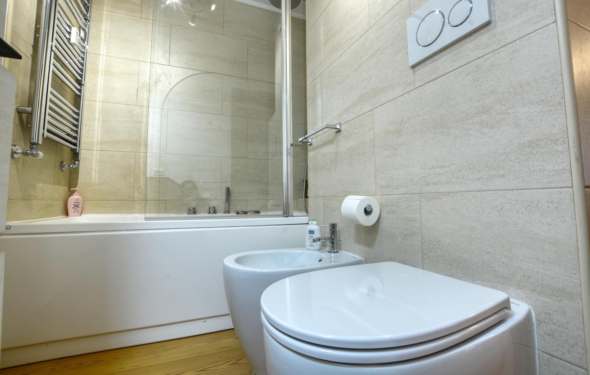 Badezimmer 4m2 (nr. 2) - WC. Warmes und kaltes Wasser. Badewanne