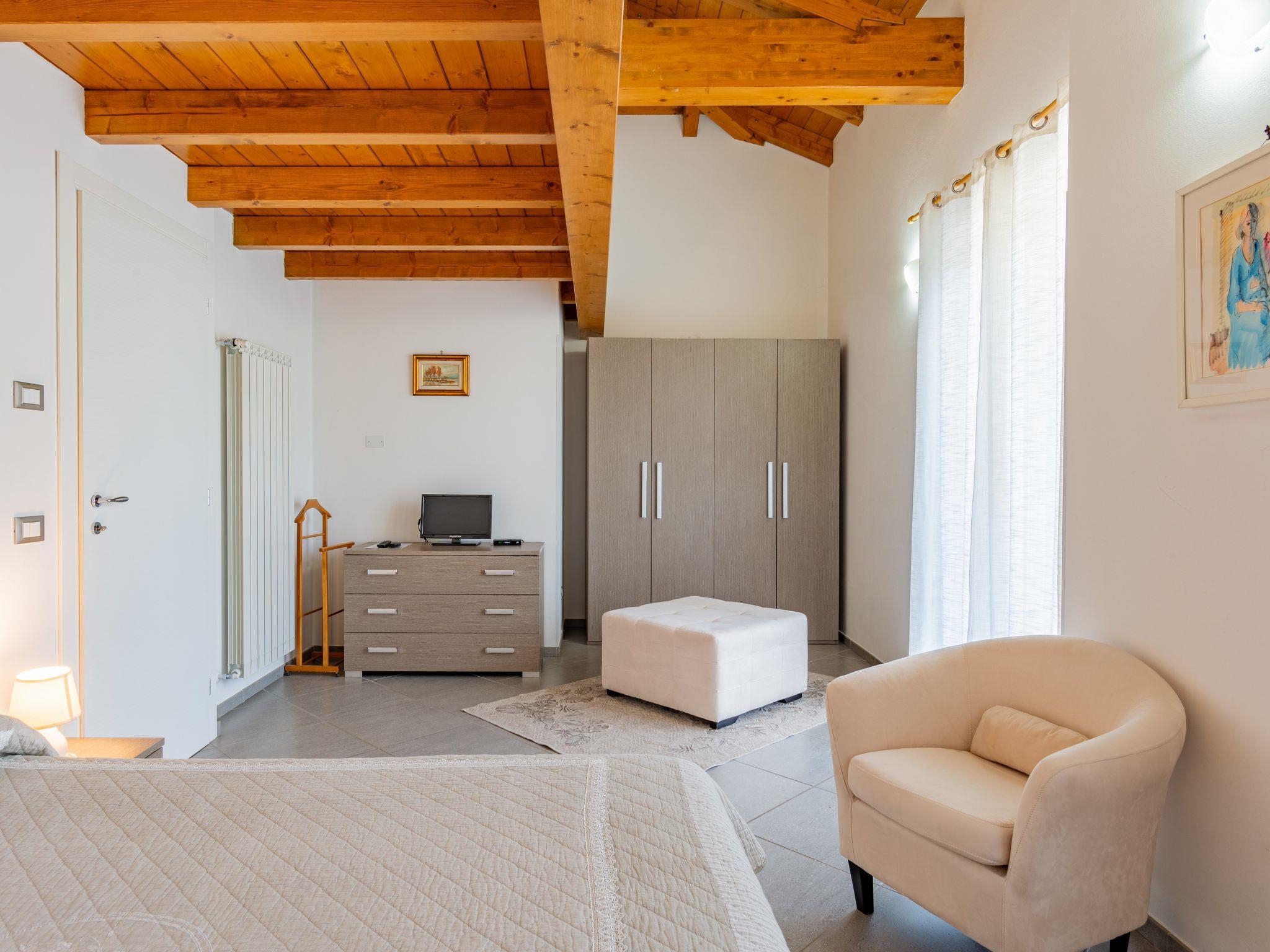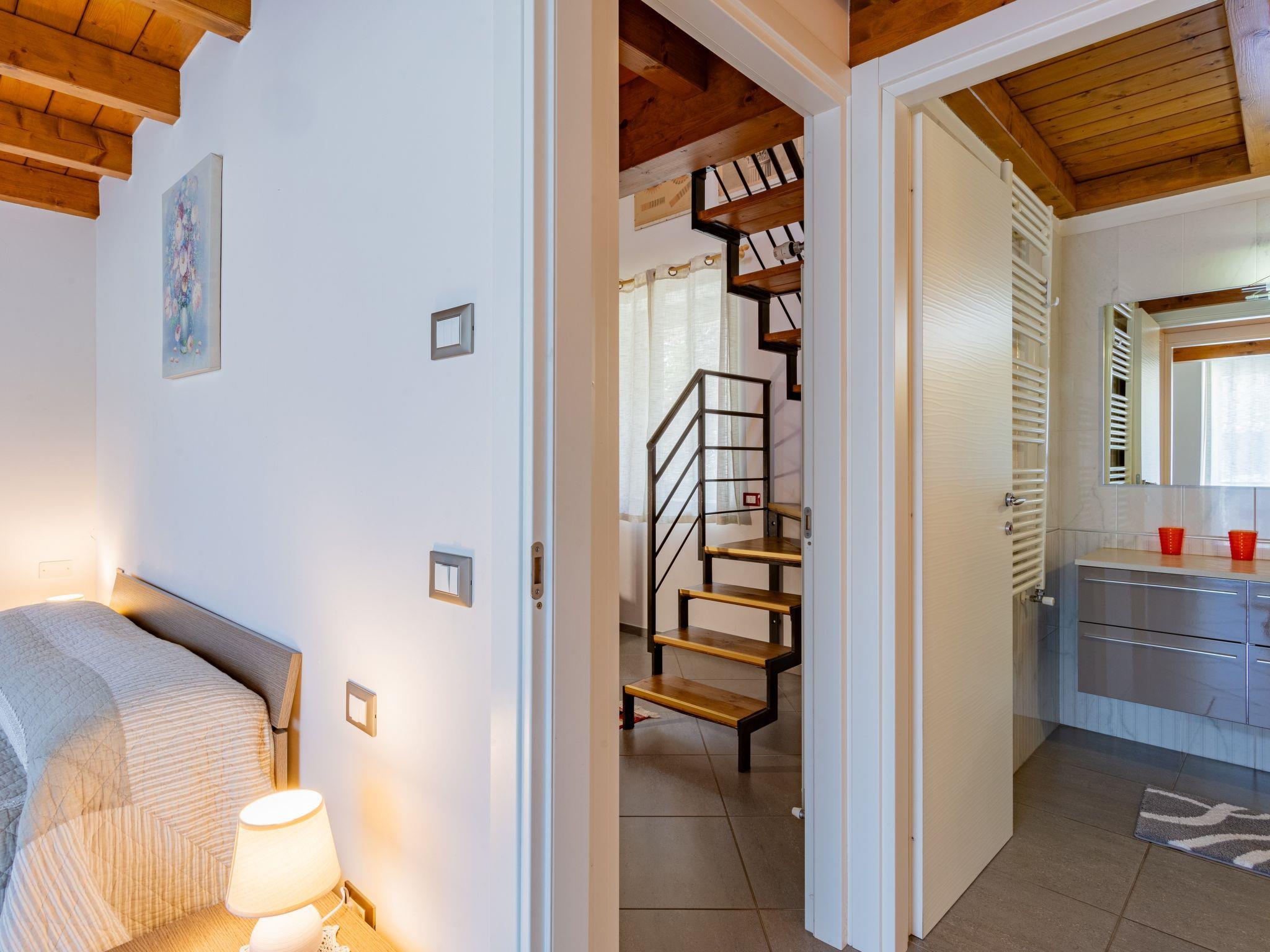 3-Zimmer-Doppelhaushälfte 100 m2 auf 3 Stockwerken. Zweckmässig und modern eingerichtet: Wohn-/Esszimmer mit Esstisch, Sat-TV, Radio und DVD. Ausgang zum Garten. Offene Küche (Backofen, Geschirrspüler, 4 Induktionskochplatten, Wasserkocher, Mikrowelle, Tiefkühler, elektrische Kaffeemaschine). Dusche/WC. Obergeschoss: 1 Doppelzimmer. Ausgang zum Balkon. 1 offenes Zimmer mit 1 x 2 Etagenbetten. Bad/Bidet/WC, Whirlbadewanne. G-Heizung (extra). Dachgeschoss: abgeschrägte, offene Galerie mit 2 Betten und Klimaanlage. Balkon. Terrassenmöbel, Liegestühle (4). Zur Verfügung: Waschmaschine, Bügeleisen, Fliegengitter, Haartrockner. Internet (Wireless LAN, gratis). Maximal 2 Haustiere/Hunde erlaubt. Das Unterdachzimmer blickt auf das Zimmer mit dem Etagenbett. Anstelle eines abgeschlossenen Schlafzimmers befinden sich manche Schlafplätze in einem offenen Bereich (Galerie, Nische etc.). IT012022C2VCINSHV3