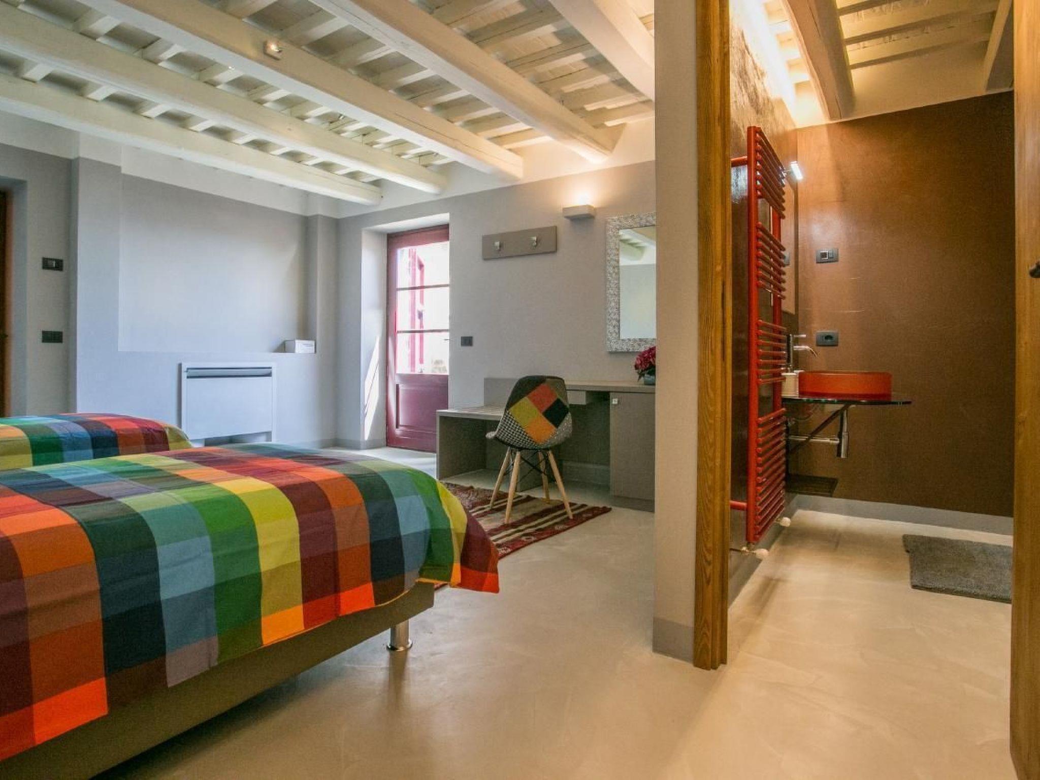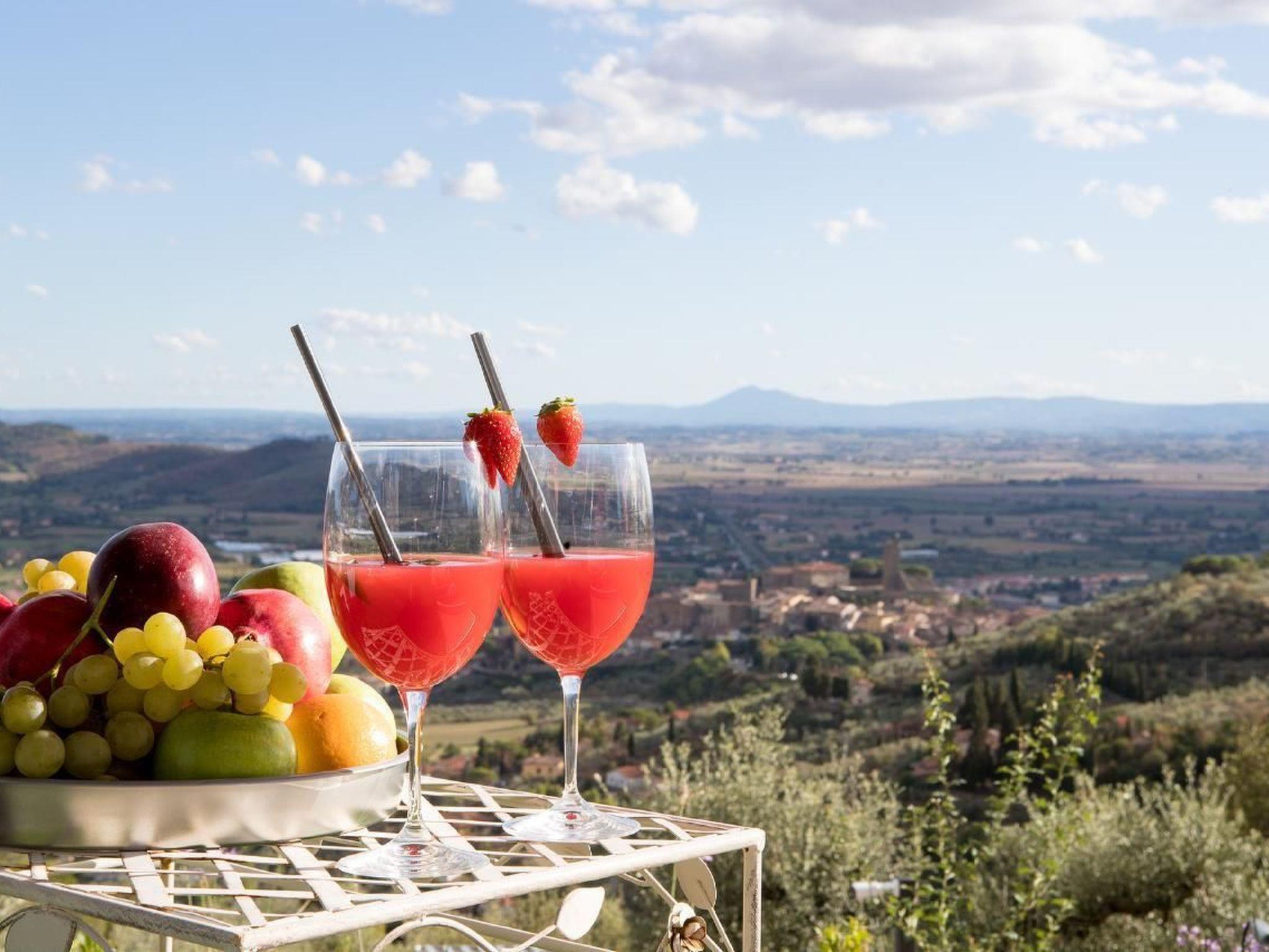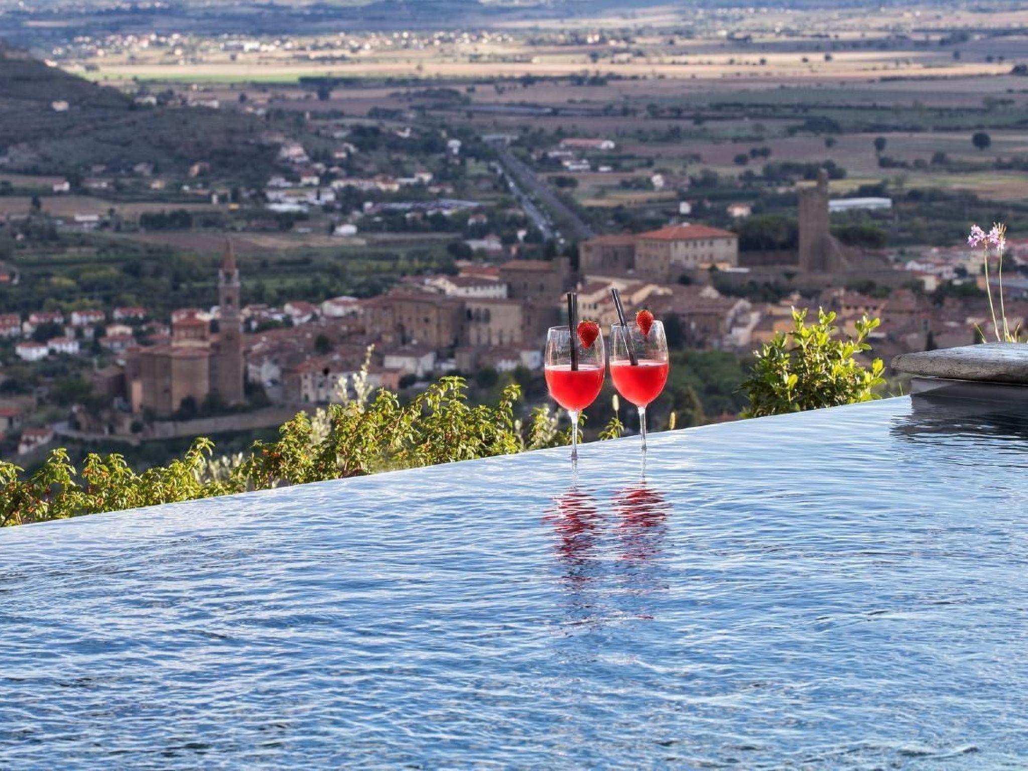 Bellavista di Mammi liegt auf einem großen Gelände inmitten sanfter Hügel und bietet einen privaten, friedlichen Rückzugsort auf dem Land, ist aber ideal gelegen, nur eine kurze Autofahrt von den Altstädten von Castiglion Fiorentino und Cortona entfernt. Dieses freistehende Haus liegt in einer reizvollen, erhöhten Lage und ist so konzipiert, dass es die ungestörte Aussicht über das Tal voll ausnutzen kann.Die Villa, die sich auf zwei Ebenen erstreckt, zeichnet sich durch eine moderne und stilvolle Innenausstattung aus, die jeglichen Komfort bietet.Im Erdgeschoss befinden sich die Wohnräume und die voll ausgestattete Küche. Im Erdgeschoss befindet sich außerdem ein Doppelzimmer mit zwei Einzelbetten und einem Bad mit Dusche. Im ersten Stock befindet sich das herrliche Hauptschlafzimmer mit einem großen, bequemen Doppelbett, gestalteten Innenräumen und einem großen Fenster, das einen unglaublichen Blick bis zum Horizont bietet. Es ist so unterhaltsam, das unverdorbene Panorama zu beobachten, dass man sich zu jeder Tageszeit darin verliert und die verschiedenen Farben von Sonnenaufgang bis Sonnenuntergang genießt. Das Hauptschlafzimmer wird von einem großen Badezimmer mit großer Duschkabine en suite bedient.Der Garten wird sorgfältig gepflegt und durch die Schönheit des Infinity-Pools aufgewertet, der sich mit dem hervorragenden Panorama dahinter vermischt. In den warmen Sommernächten können Sie in dem voll ausgestatteten Außenbereich, der auch einen BBQ bietet, unter freiem Himmel speisen. Das Anwesen verfügt über einen privaten Parkplatz, Zentralheizung, Satellitenfernsehen, WIFI und viele andere Annehmlichkeiten. BellaVista di Mammi ist der ideale Ort für einen unvergesslichen Urlaub mit viel Privatsphäre in einer ruhigen und malerischen Ecke der Toskana.Tagesausflüge in die Kunststädte der Toskana (Florenz, Siena, Pienza, Montepulciano) oder Umbrien (Perugia, Assisi, Lago Trasimeno) sind leicht zu organisieren. Das Dorf Castiglion Fiorentinoi liegt in ca. 1,5 Km Distanz – im Dorf finden Sie verschiedene Einkaufsmöglichkeiten, Restaurants etc.Kurzbeschreibung 1Anzahl Küchen : 1UmgebungSportmöglichkeiten in der Umgebung : Mountainbiking, RadtourenGarten und AussenanlagenFreizeiteinrichtungen am Objekt : Außenpool alleinige Nutzung, SwimmingpoolGartenausstattung : Gartenmöbel vorhanden, GrillServiceleistungenServiceleistungen (ggfs. kostenpflichtig) : Einkaufsservice vor der Anreise, Hauspersonal, Koch