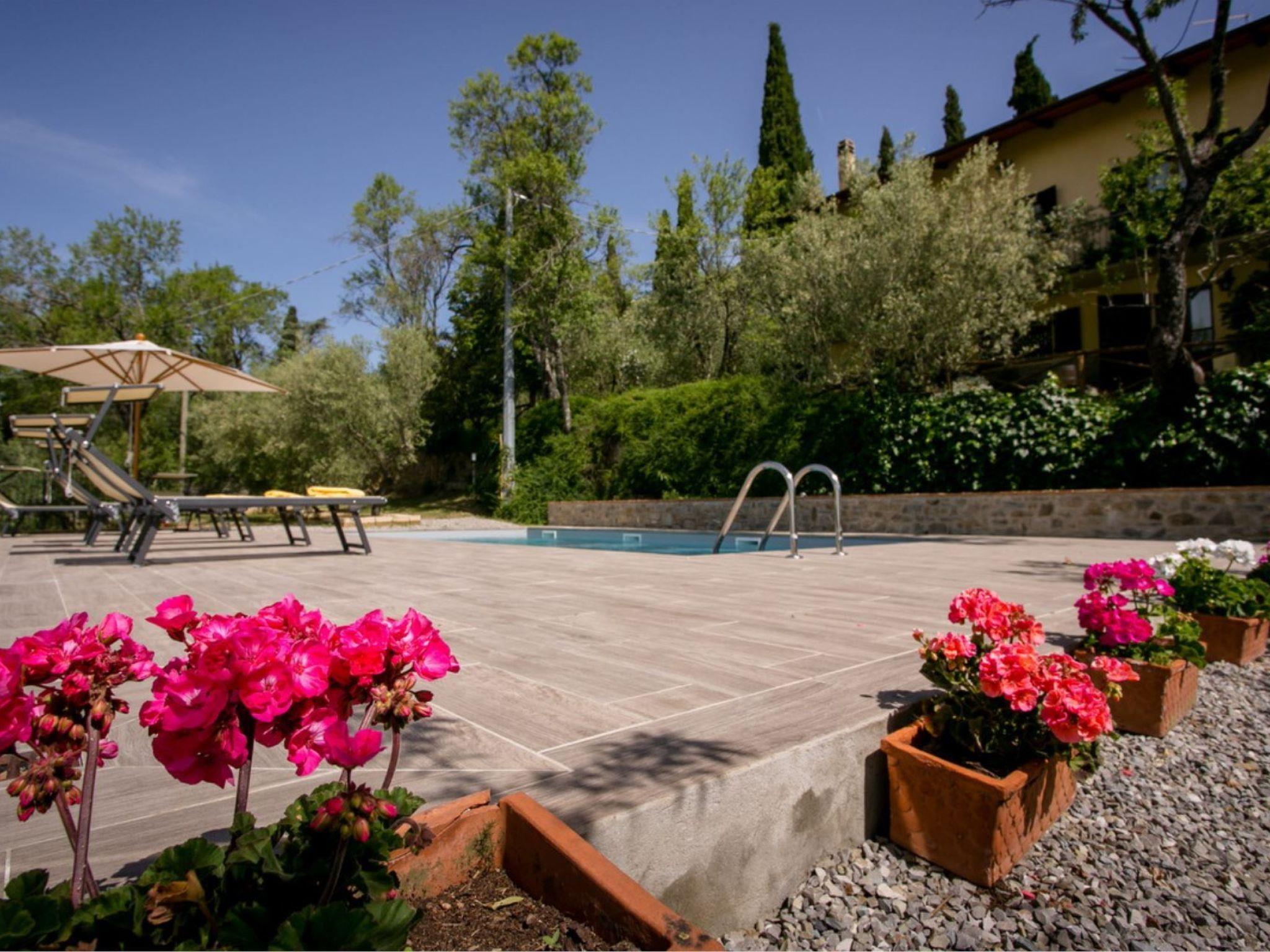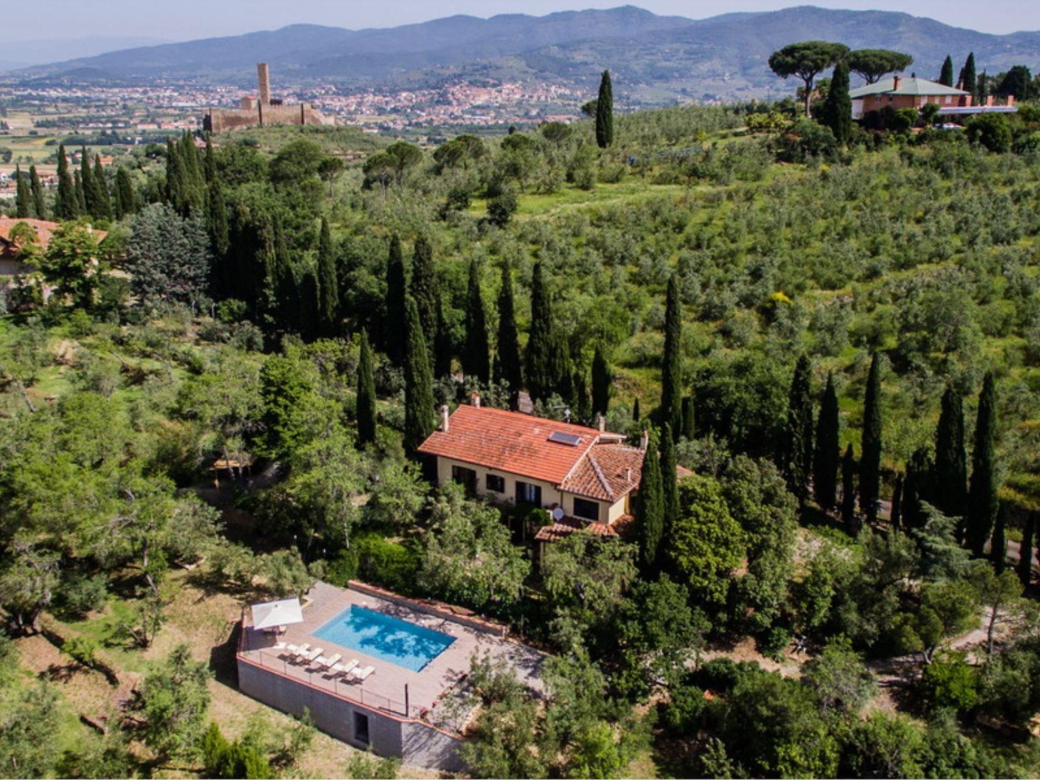 Villa Luisella ist ein schönes Haus vor kurzem in der schönen Landschaft von Castiglion Fiorentino, im Zentrum der Valdichiana Bereich restauriert. Dank der großartigen Lage der Villa erreichen Sie in kurzer Zeit die vielen Ortschaften und wichtigen Städte der Toskana. Cortona, Arezzo, der Trasimeno-See und Montepulciano sind weniger als 30 km entfernt, Siena 45 Minuten mit dem Auto und das Zentrum von Florenz nur eine Stunde mit dem Zug. Die Villa liegt inmitten einer wunderschönen Vegetation neben dem eindrucksvollen Schloss von Montecchio und wurde vor kurzem zu einem hohen Standard restauriert, wobei viele traditionelle Merkmale beibehalten und mit modernem Komfort in einer durch und durch traditionellen und rustikalen Umgebung gesegnet wurden. Der terrassenförmig angelegte Pool (10m x 5m) mit herrlicher Aussicht, die Pergola und der Grill laden im Sommer zum Vergnügen im Freien ein, zum Entspannen und Essen in der Sonne. Das Schwimmbad ist vom 27. April bis zum 28. September geöffnet.Privater Pool (10 x 5)Essbereich im Freien mit Pergola, Grill und HolzofenErdgeschossEsszimmer/Küche mit 4 Herdplatten, Backofen, Geschirrspüler, Kühlschrank, Wasserkocher, Toaster und amerikanischer Kaffeemaschine.1 Doppelbettzimmer mit einem weiteren Einzelbett1 Duschraum1 Waschküche mit Waschmaschine und BügelmöglichkeitErster StockWohnzimmer mit Kamin, Schlafsofa für eine Person, TV SAT und Wifi1 Doppelbettzimmer mit einem weiteren Einzelbett und eigenem Duschbad2 Doppelbettzimmer1 DuschbadMontecchio (Geschäfte und Restaurant)Castiglion Fiorentino 5 KmCortona 14 KmArezzo 20 KmTrasimeno See 30 KmMontepulciano 35 KmPienza 45 KmChianti Gebiet 50 KmSiena 65kmPerugia (Flughafen) 61 KmFirenze 91 Km (eine Stunde mit dem Zug von Castiglion Fiorentino)