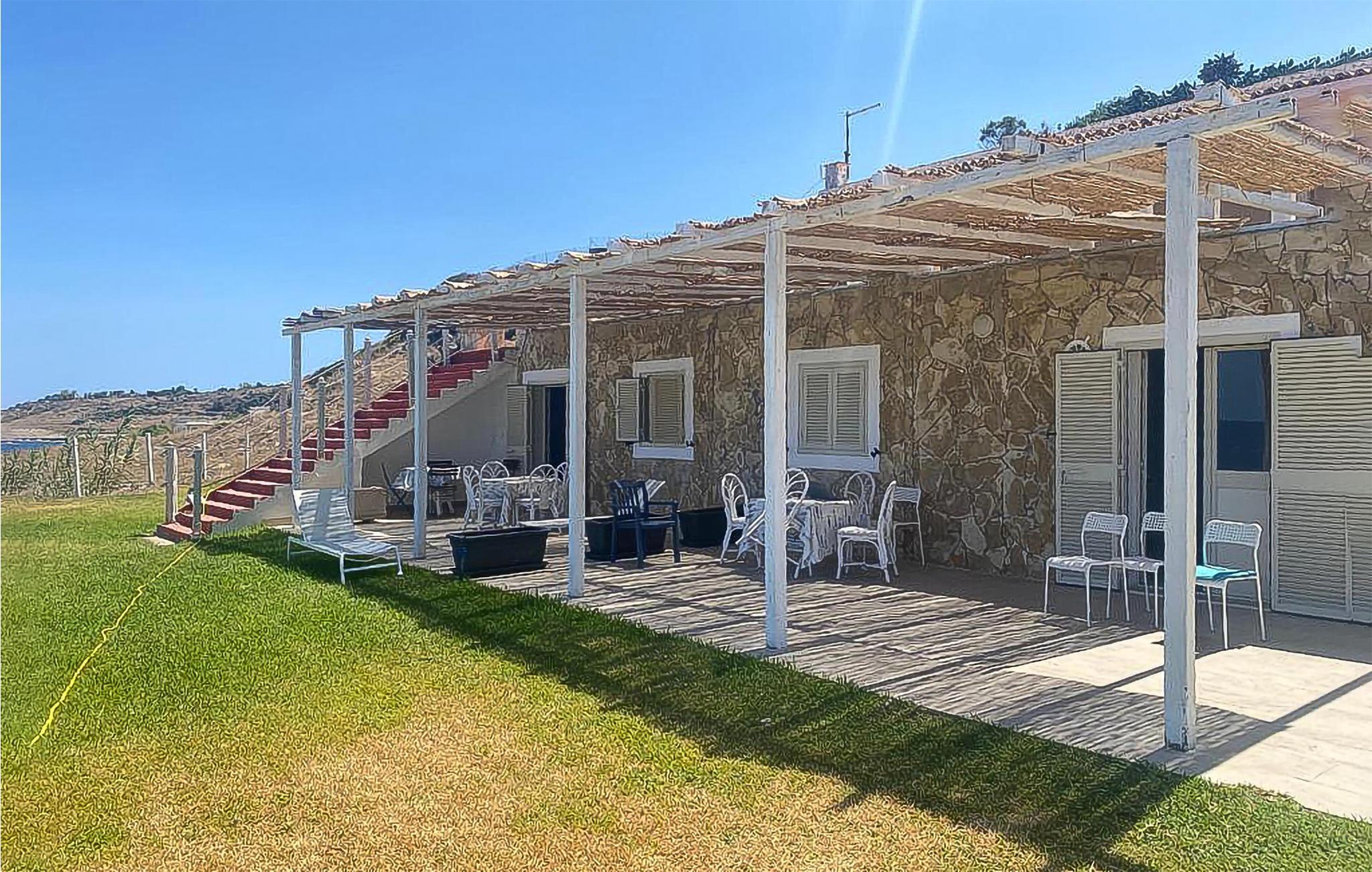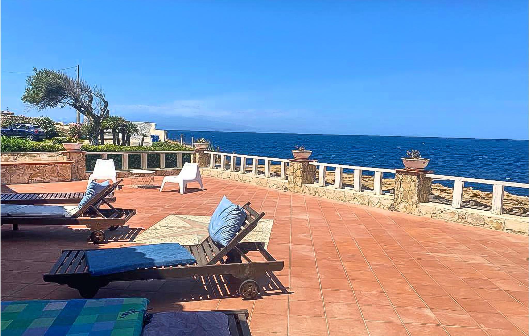 Willkommen in diesem Ferienhaus mit einem wunderschönen Panoramablick auf das Meer. Das großräumige Haus verspricht eine erholsame, variierte Zeit auf der schönen Sonneninsel, die alle Sinne anregt. Im Inneren bilden die Blautöne einen charmanten Kontrast zum Weiß und erinnert Sie sanft an die Nähe des Meeres und das magische Licht. Planen Sie morgens beim Frühstück auf einer der Terrassen Ihre spannenden Aktivitäten und erfrischen Sie sich tagsüber im Schatten mit süßen Orangen, dem Gold Siziliens. Abkühlung gefällig? Ja, dann springen Sie einfach von den Felsen ins wohltuende Wasser. Von der Felsenküste können Sie auch gut angeln. Vielleicht fangen Sie das Abendessen? Wenn Sie Lust haben, können Sie in der Nähe die Umgebung auf dem Rücken eines Pferdes erkunden.
