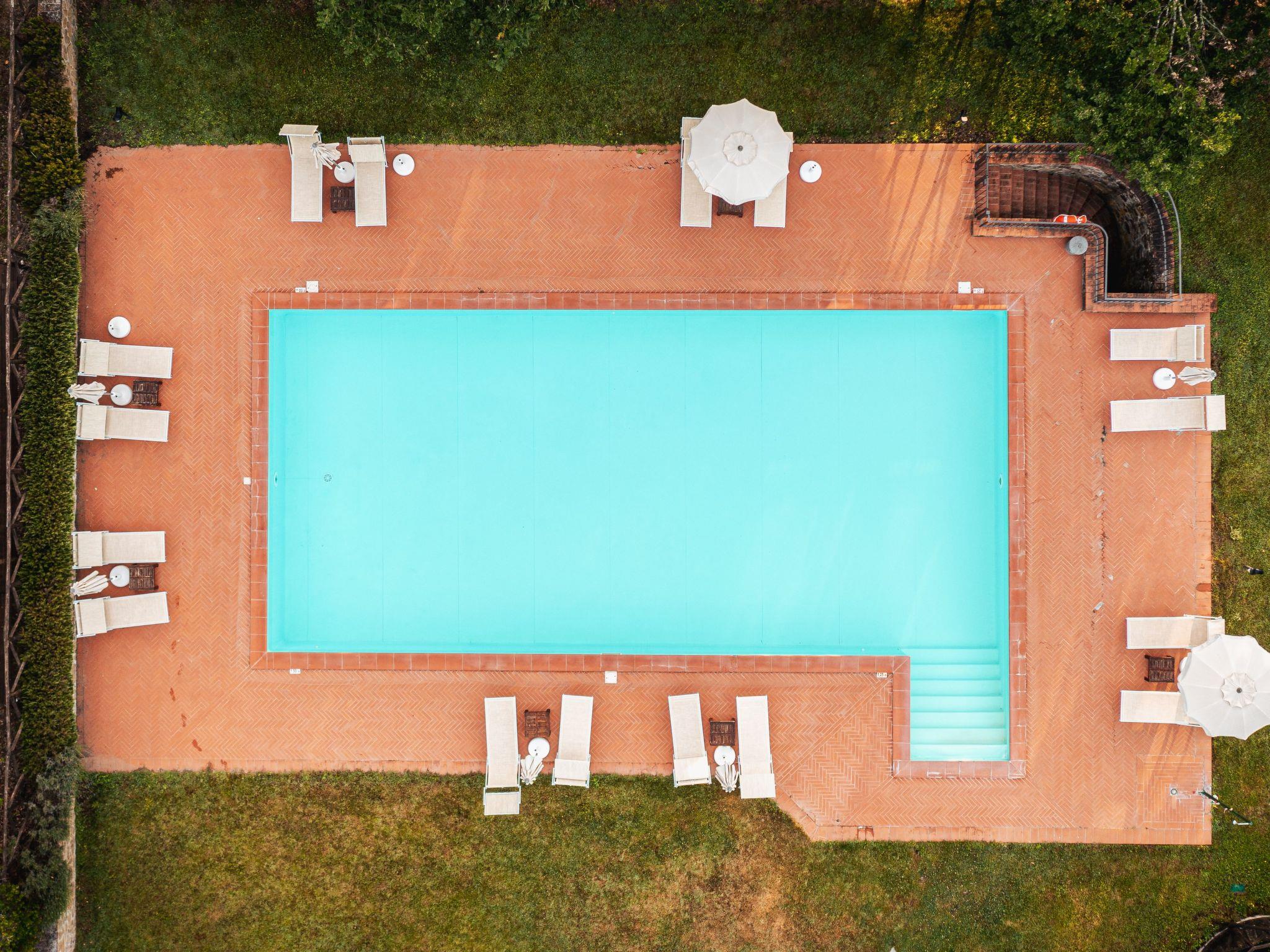 Die Dispensa Suite befindet sich im Erdgeschoss. Die Wohnung besteht aus einem Wohnzimmer mit einem Doppelschlafsofa (auf Anfrage), einem Smart-TV, einem Esstisch, einer gut ausgestatteten Küche mit Kühl- und Gefrierschrank, einem Schlafzimmer mit Doppelbett, einem Badezimmer mit Dusche und einem Safe. Sie können Mittag- und Abendessen auf der Terrasse direkt vor der Tür genießen. Die Dispensa Suite bietet eine wunderschöne Natur: einen großen Gemeinschaftspool, einen Grillplatz mit Esstischen, eine gemeinsame Wäscherei, einen Kinderspielplatz, ein Spielzimmer mit Tischtennis und Tischfußball. Haustiere erlaubt (zusätzlich).Unsere Apartments bieten den besten Komfort: Sie zeichnen sich durch Terrakottaböden, Holzbalken und Möbel im Landhausstil aus und bieten den Gästen eine Atmosphäre mit antikem Geschmack. Die Apartments bieten seinen Gästen einen großen Außenbereich, wie beispielsweise den großen Pool von 15 x 7 m, den Sie in den Monaten Mai bis September nutzen können, um an heißen Nachmittagen des toskanischen Sommers am besten zu entspannen. Das Haus ist von einem großen Garten (1000 m²) umgeben, in dem die Gäste entspannen und die Ruhe der toskanischen Landschaft und der Chianti-Umgebung genießen können. Sie sitzen auf den Bänken und an den Tischen im Schatten der Eichen. Wir bieten auch einen Grillplatz mit Oudoor-Tischen unter einer Pergola und ein Spielzimmer mit Fußballtisch und Tischtennis. Zur Verfügung unseres Gastes auch eine Wäscherei mit Waschmaschine und Bügeleisen.KurzbeschreibungSonstiges : NichtraucherhausKurzbeschreibung 1Anzahl Küchen : 1UmgebungLeihmöglichkeiten : FahrradverleihSportmöglichkeiten in der Umgebung : Mountainbiking, Reitboxen (Gäste), Reithalle, Reitplatz / ReitmöglichkeitenUmgebung 1Sonstige Sport- und Freizeitmöglichkeiten : Trekking, Polo club, Spa, Cooking class, YogaGarten und AussenanlagenFreizeiteinrichtungen am Objekt : Außenpool gemeinschaftliche Nutzung, Spielplatz, Swimmingpool, TischtennisGartenausstattung : GrillServiceleistungenServiceleistungen (ggfs. kostenpflichtig) : Koch