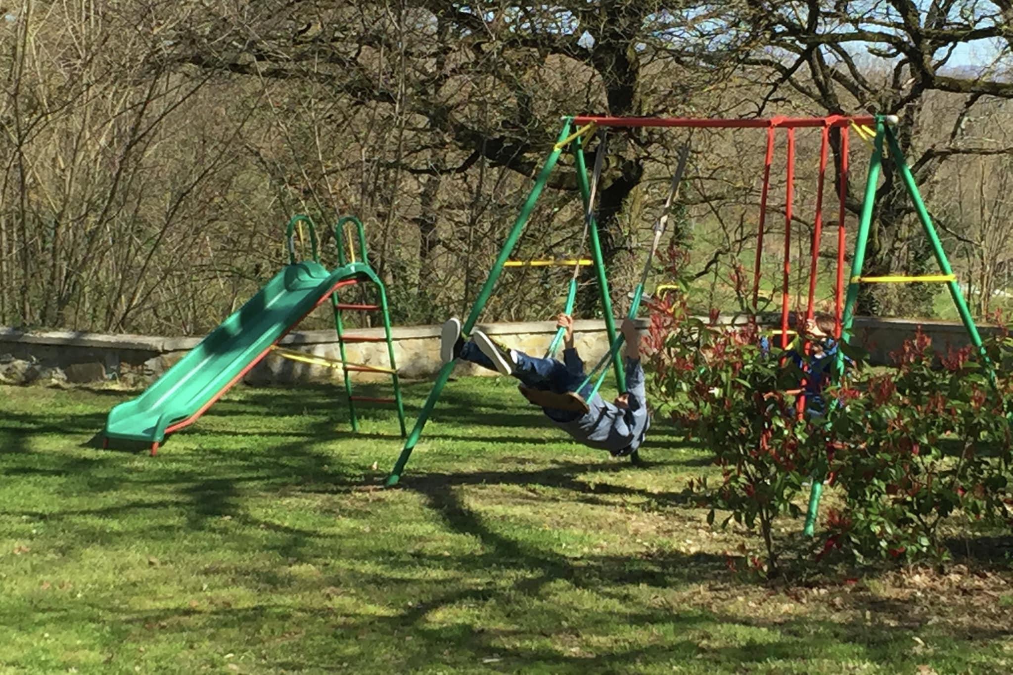 Parterre: (offene Küche(Kaffeemaschine(Filter), Backofen, Tiefkühlschrank, Kühl-/Gefrierkombination), Wohn/Esszimmer(Doppelschlafcouch, TV(Satellit), Kaminofen), Schlafzimmer(Einzelbett, Doppelbett), Badezimmer(Dusche, Waschbecken, Toilette, Bidet)) Heizung, Terrasse(überdacht), Garten(teilweise umzäunt), Gartenmöbel, Grill, Parkplatz, Pool(Gemeinschaftliche Nutzung mit anderen Gästen, 17 x 7 m., geöffnet von Jun bis einschließlich Sep), Spielgeräte, Rutsche, Kinderbett(auf Anfrage), Hochstuhl(auf Anfrage)