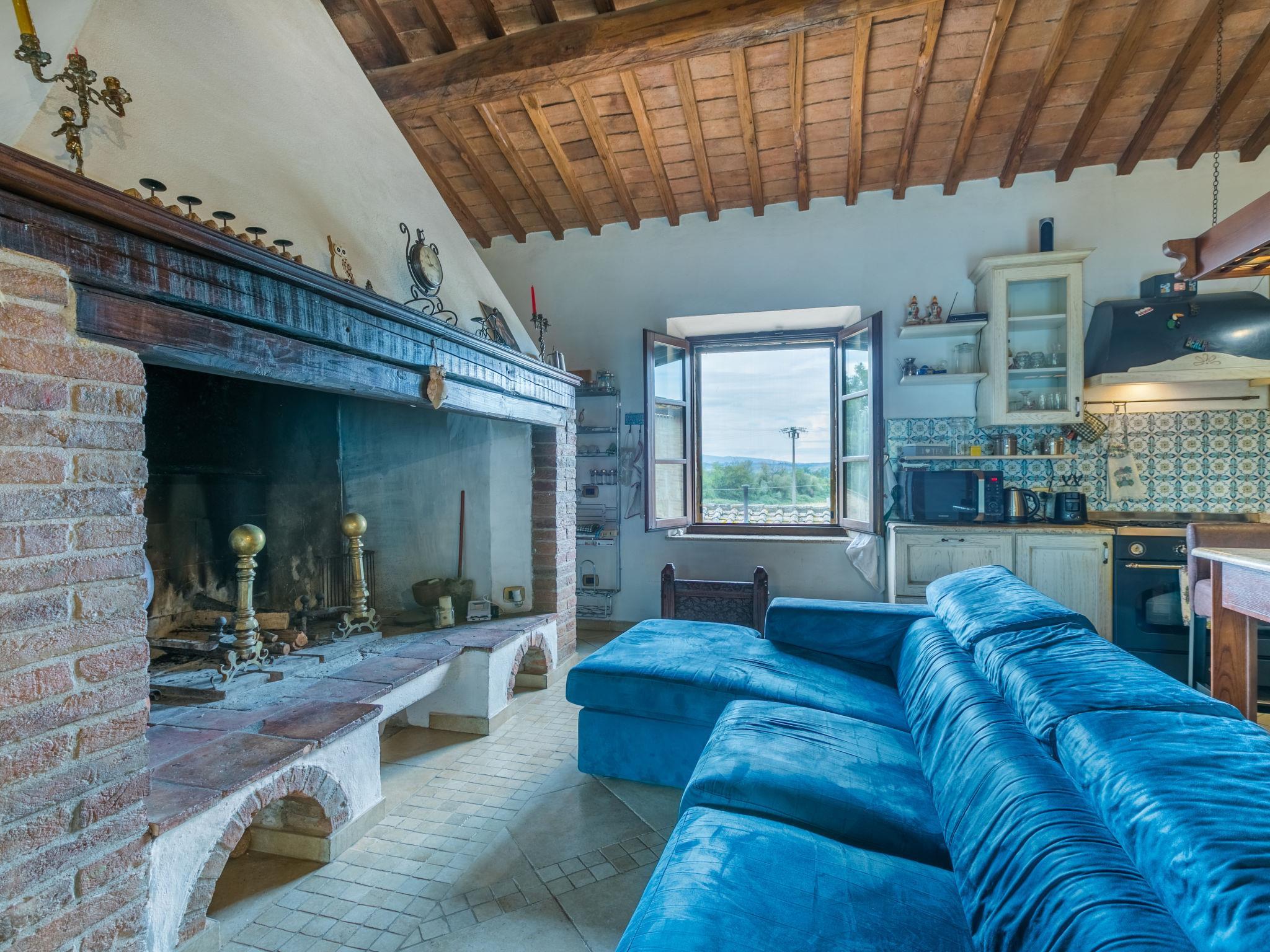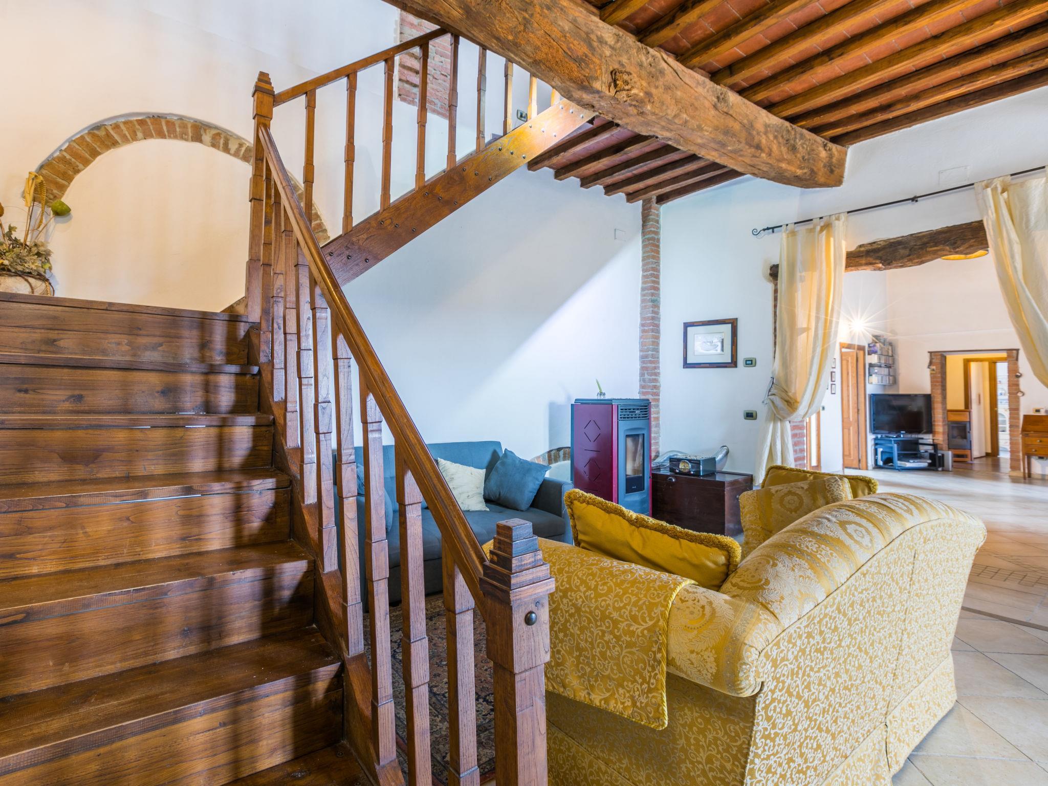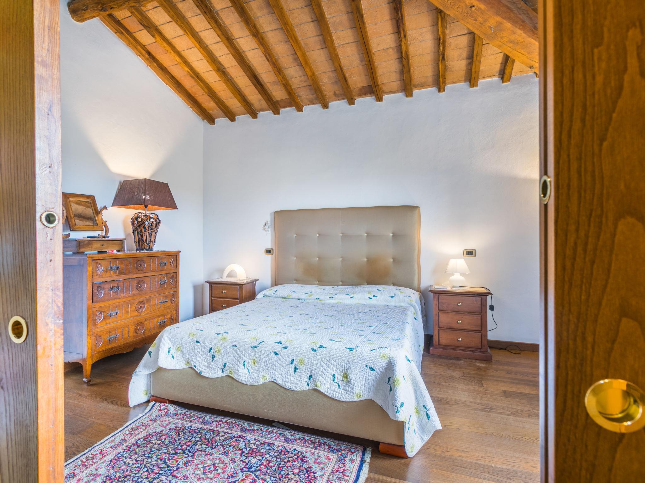 "Podere Palazzetto", 5-Zimmer-Doppelhaushälfte 280 m2 auf 2 Stockwerken. Geräumig, renoviert, komfortabel und geschmackvoll eingerichtet: Obergeschoss: Wohnzimmer mit Panoramafenster. Wohnzimmer mit 1 Doppeldiwanbett, TV und Flachbildschirm. 2 Doppelzimmer mit begehbarem Kleiderschrank. Grosse Wohnküche (Backofen, Geschirrspüler, Gasherd, 5 Flammen, Toaster, Wasserkocher, Mikrowelle, elektrische Kaffeemaschine) mit Esstisch, offenem Kamin. Bad/Bidet/WC, Dusche/Bidet/WC. 2. Obergeschoss: 1 offenes grosses Doppelzimmer mit Dusche/Bidet/WC. G-Heizung, Klimaanlage. Natursteinboden. Gartensitzplatz. Terrassenmöbel, Gartengrill, Liegestühle, Loggia, Abstellkammer. Schöne Panoramasicht auf die Landschaft. Zur Verfügung: Waschmaschine, Bügeleisen, Fliegengitter, Kinderhochstuhl, Babybett bis 2 Jahre, Haartrockner, Holz (extra). Internet (WLAN, gratis). Parkplatz beim Haus. Bitte beachten: Nichtraucher-Unterkunft. Maximal 1 Haustier/Hund erlaubt. Der ausgeschriebene Pool ist zur alleinigen Nutzung. IT052003C2IWB3GK4S