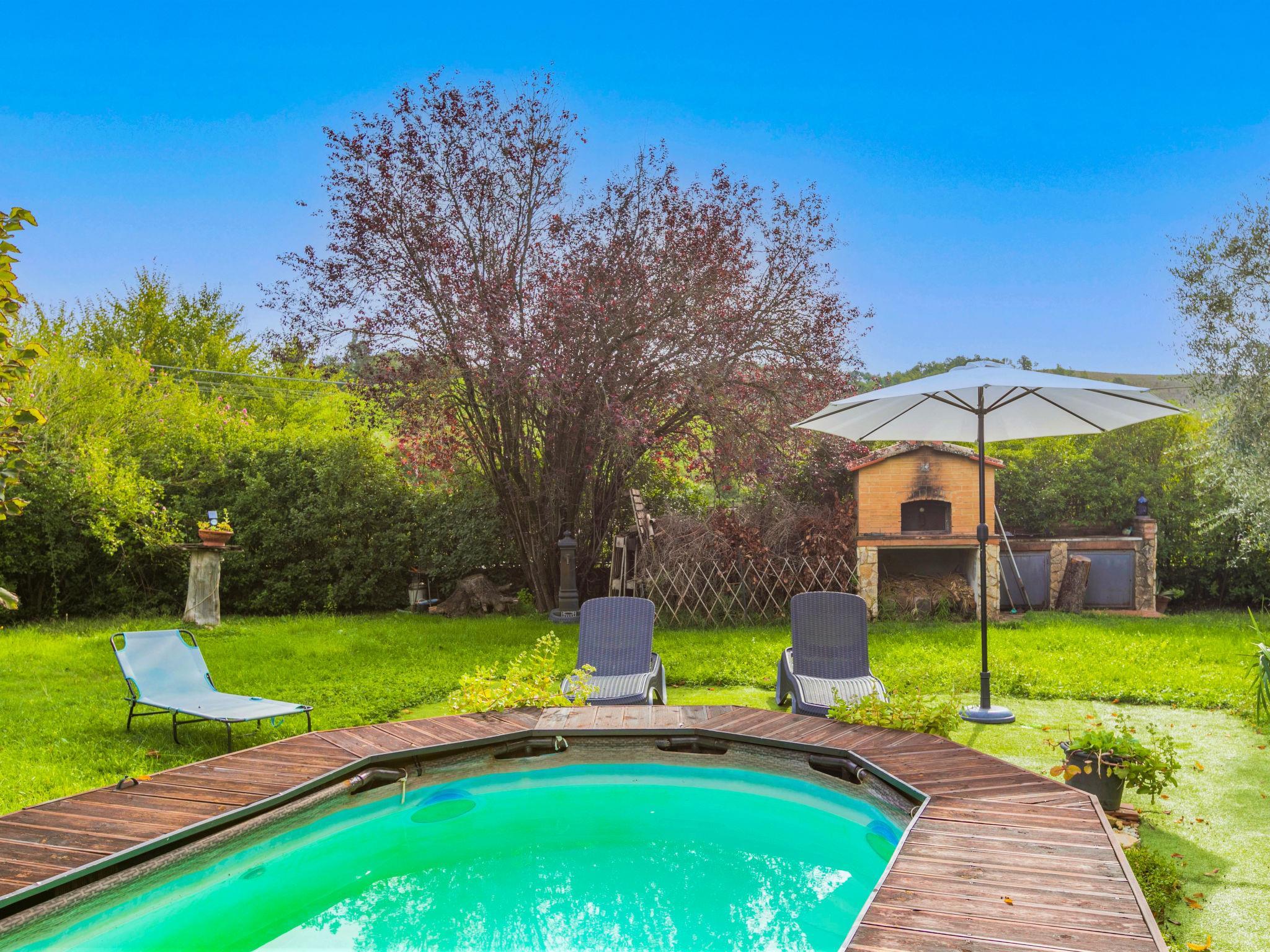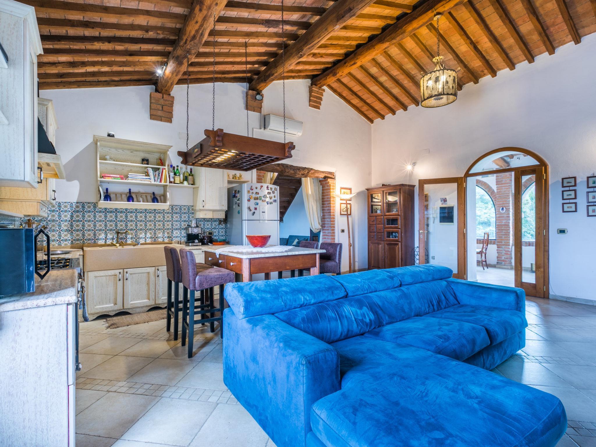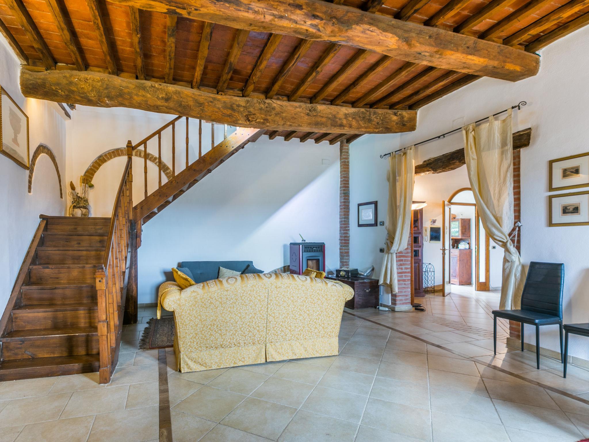 "Podere Palazzetto", 5-Zimmer-Doppelhaushälfte 280 m2 auf 2 Stockwerken. Geräumig, renoviert, komfortabel und geschmackvoll eingerichtet: Obergeschoss: Wohnzimmer mit Panoramafenster. Wohnzimmer mit 1 Doppeldiwanbett, TV und Flachbildschirm. 2 Doppelzimmer mit begehbarem Kleiderschrank. Grosse Wohnküche (Backofen, Geschirrspüler, Gasherd, 5 Flammen, Toaster, Wasserkocher, Mikrowelle, elektrische Kaffeemaschine) mit Esstisch, offenem Kamin. Bad/Bidet/WC, Dusche/Bidet/WC. 2. Obergeschoss: 1 offenes grosses Doppelzimmer mit Dusche/Bidet/WC. G-Heizung, Klimaanlage. Natursteinboden. Gartensitzplatz. Terrassenmöbel, Gartengrill, Liegestühle, Loggia, Abstellkammer. Schöne Panoramasicht auf die Landschaft. Zur Verfügung: Waschmaschine, Bügeleisen, Fliegengitter, Kinderhochstuhl, Babybett bis 2 Jahre, Haartrockner, Holz (extra). Internet (WLAN, gratis). Parkplatz beim Haus. Bitte beachten: Nichtraucher-Unterkunft. Maximal 1 Haustier/Hund erlaubt. Der ausgeschriebene Pool ist zur alleinigen Nutzung. IT052003C2IWB3GK4S