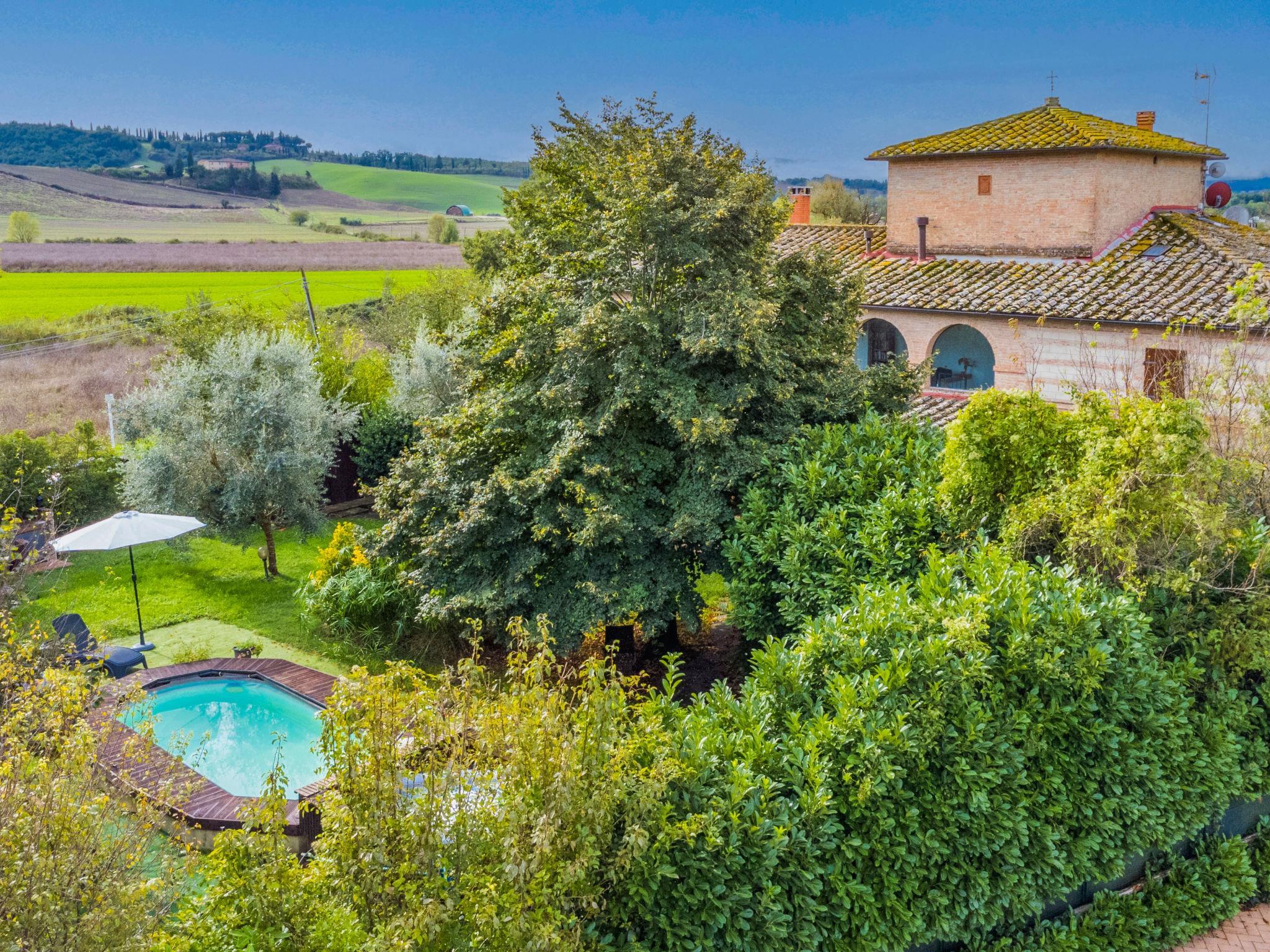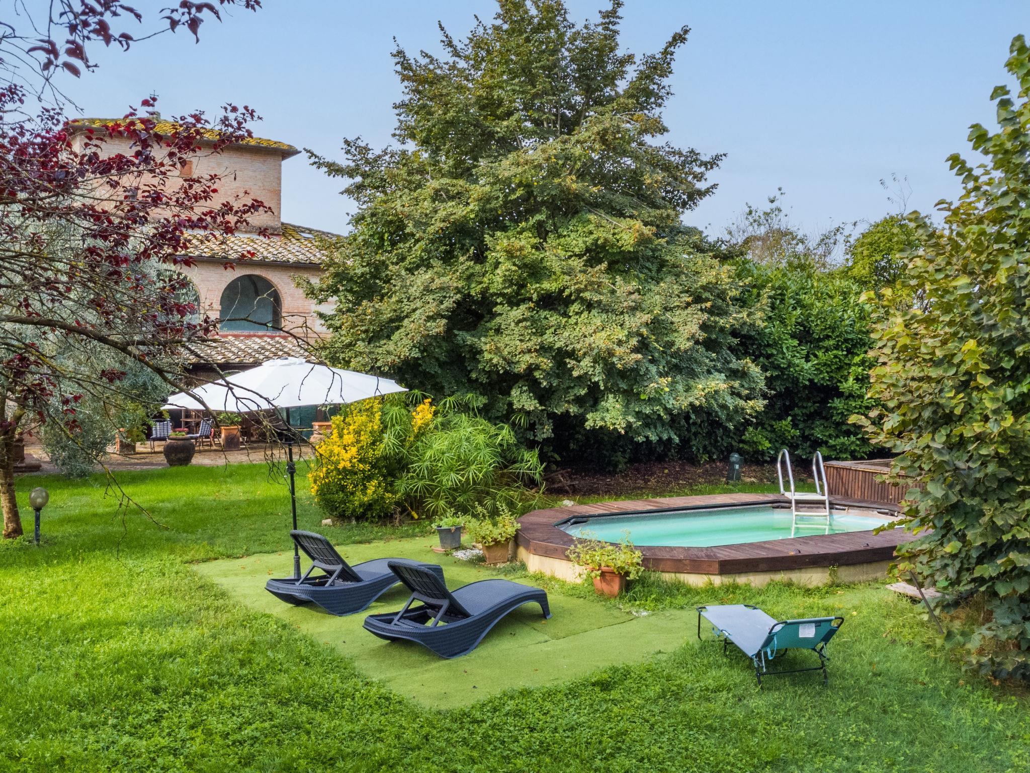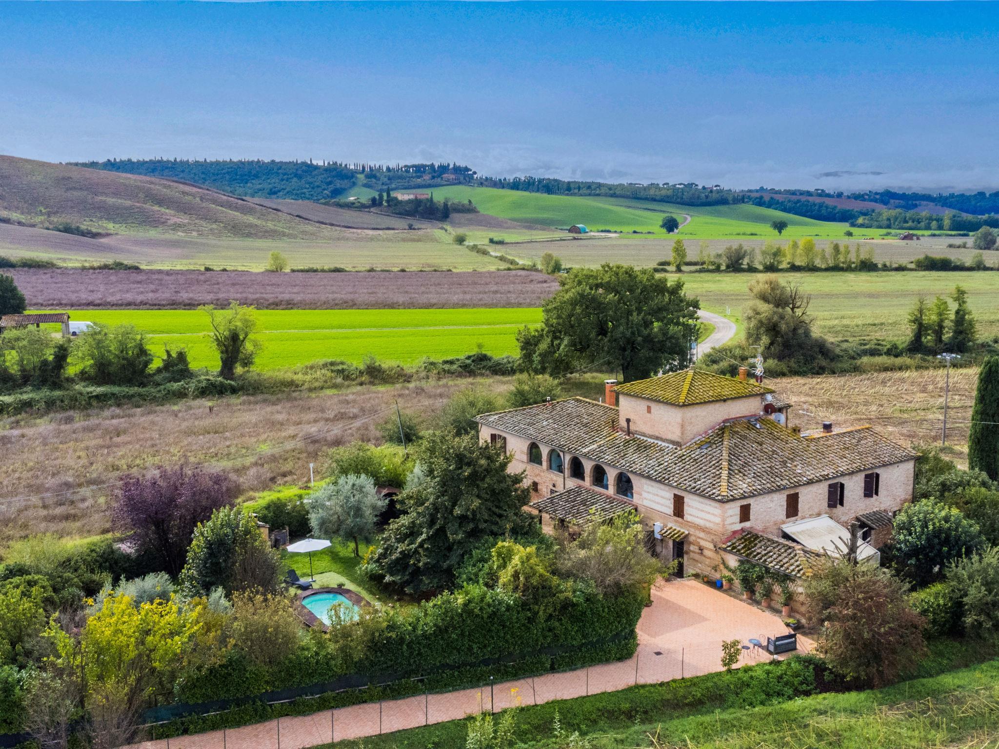 Buonconvento: Sehr komfortables Landhaus "Podere Palazzetto", auf 2 Stockwerken, umgeben von Bäumen und Wiesen. 8 km vom Zentrum von Buonconvento, 13 km vom Zentrum von Monteroni d'Arbia, sonnige Lage, im Grünen. Zur Alleinbenutzung: Grundstück (eingezäunt), Garten Pflanzen und Bäumen, Schwimmbad (3 x 6 m, saisonale Verfügbarkeit: 01.Mai. - 15.Okt.). Aussendusche, Sprudelbad, Sitzplatz, Terrasse, Grill, Poolpflege durch den Besitzer/Gärtner. Wäschewechsel (zusätzlich extra). 3 km lange holprige Zufahrt bis zum Haus. Parkplatz beim Haus. Einkaufsgeschäft 4 km, Lebensmittelgeschäft 4 km, Supermarkt 4 km, Restaurant 5 km, Sandstrand "Follonics" 94 km, Thermalbad "Rapolano Terme" 23 km. Nahe gelegene Sehenswürdigkeiten: Monte Uliveto Maggiore 17 km, Montalcino 18 km, San Quirico d'Orcia 25 km, Siena 28 km, Pienza 35 km, Montepulciano 46 km. Bitte beachten: Fahrzeug empfohlen. Babyausstattung (inkl.). Jugendgruppen nur auf Anfrage.