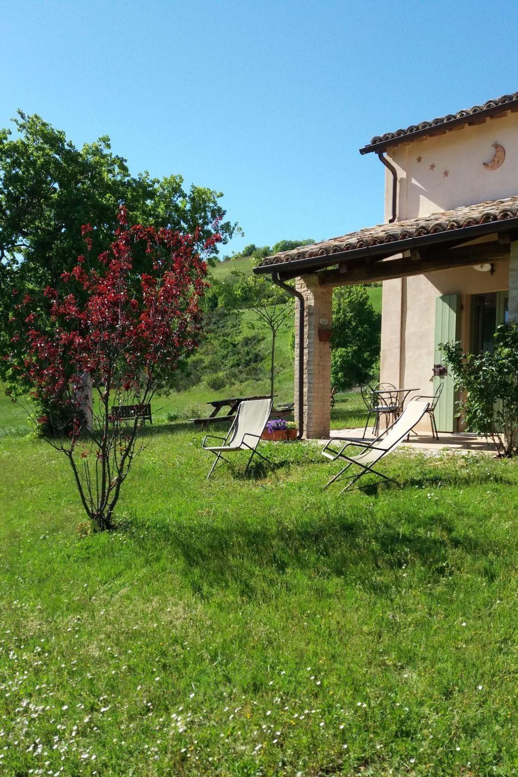 Erhohlungsurlaub in einer unberuehrten Natur, umgeben von Kornfeldern, Olivenhainen, Sonnenblumen, Obstbaueme, und Waeldern. Es ist ein Paradies fuer Wanderliebhaber und herrliche Wanderpfade fuehren durch ein traumhaftes Panorama. Auch für Mountainbike Liebhaber gibt es hier wunderschöne Wegen. Vellaneta bietet eine wunderschoene Aussicht auf die hoechste Gipfel der Bergkette des Appenin: Monte Petrano, Monte Nerone, Monte Catria und Monte Acuto. Auf diesem Landgut, 65 ha. gross und gelegen auf einer Hoehe von 550 m, lebten frueher Bauernfamilien, die das Land bearbeiteten. Das Landhaus aus Naturstein, wo mehrere Familien wohnten, und der Heuschuppen, beide aus dem 16. Jahrhundert, sind originalgetreu restauriert worden wodurch der charakteristische Stil behalten worden ist. Uebrigens sind wir nur eine Autostunde entfernt vom Golfbahn Umbertide und Conero!