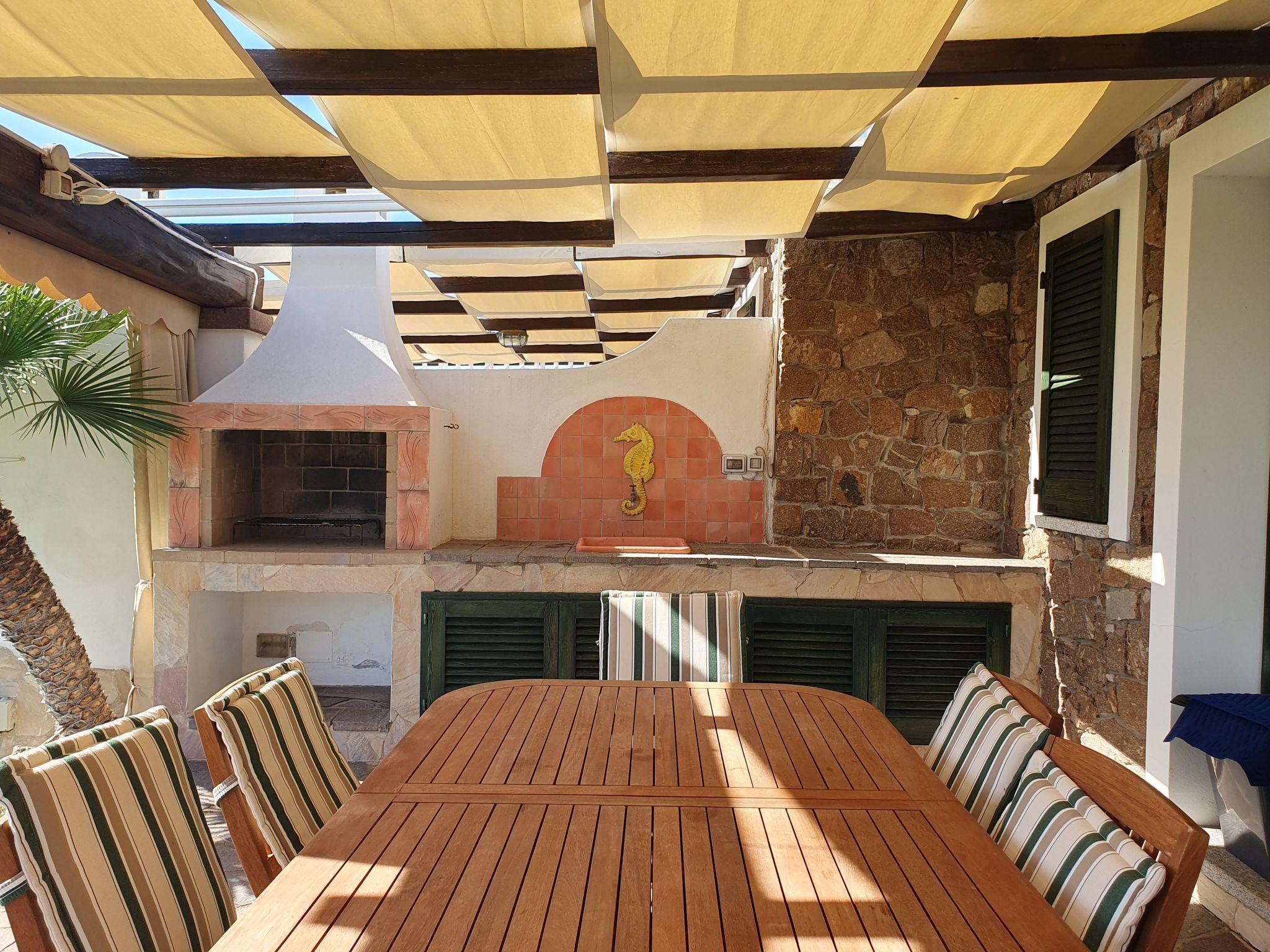 Der private Garten ist eine wahre Oase der Ruhe, wo der grüne Rasen zu Momenten der puren Entspannung unter dem sardischen Himmel einlädt. Die Gäste können die sonnigen Tage genießen oder sich im Schatten auf der möblierten Veranda erfrischen, die der ideale Ort für gesellige Mittag- und Abendessen im Freien ist. Es gibt auch einen Grill und ein Spülbecken im Freien für Ihre Grillabende in Gesellschaft, so dass jede Mahlzeit zu einem kleinen Fest wird.