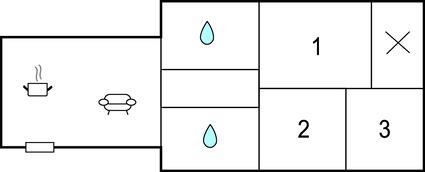 Badezimmer (nr. 1) - WC. Warmes und kaltes Wasser. Dusche