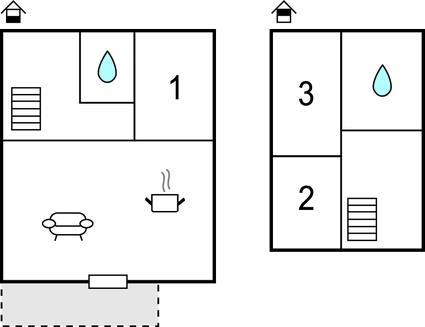 Badezimmer (nr. 1) - WC. Warmes und kaltes Wasser. Dusche