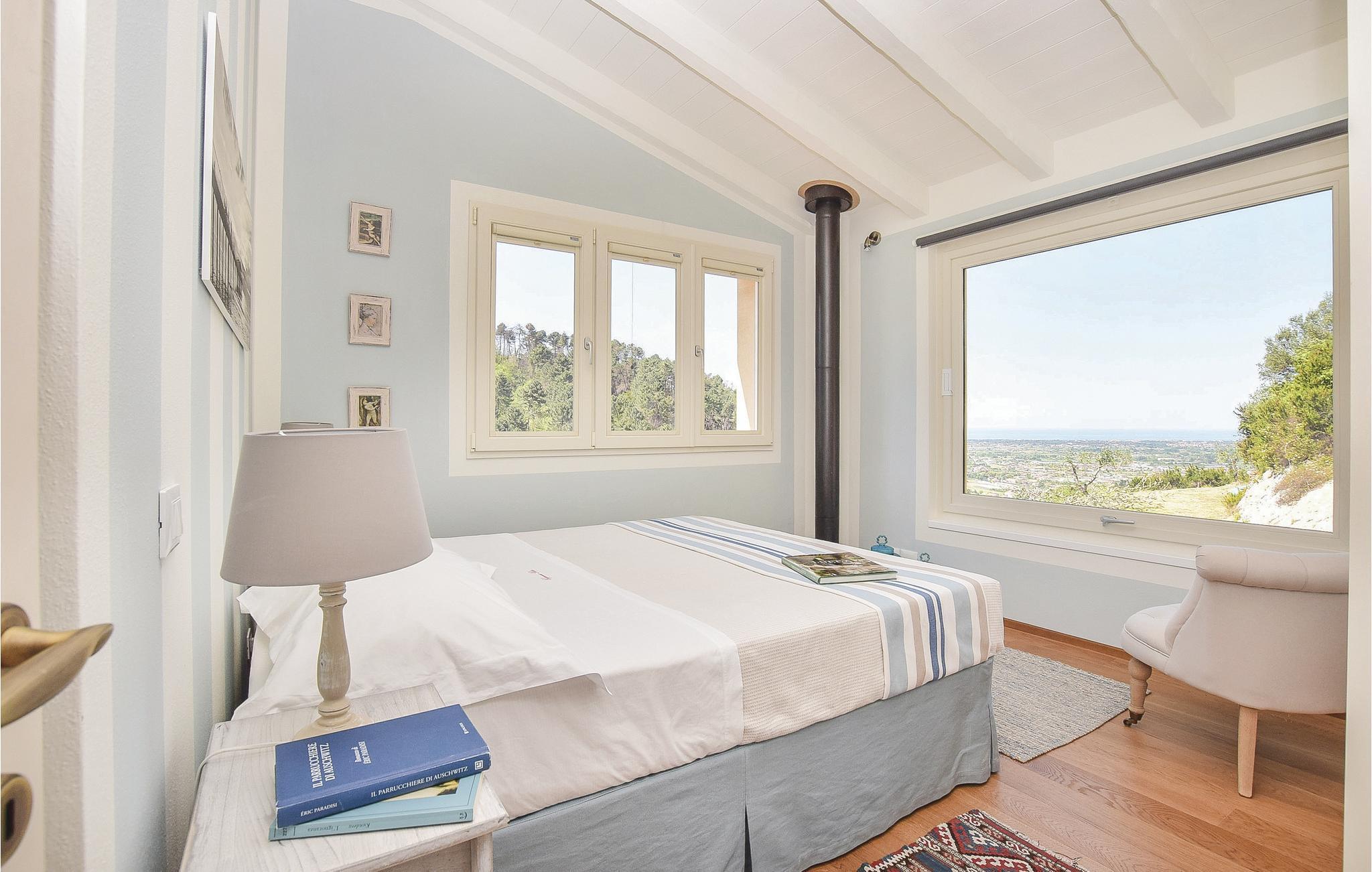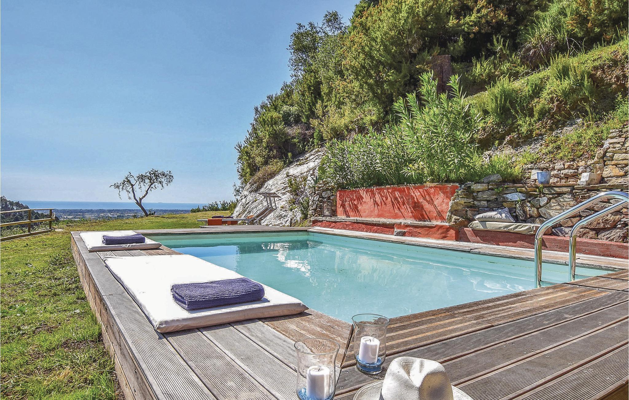 Auf den Hügeln der Versilia, inmitten eines grünen Parks, befindet sich dieses Ferienhaus in Camaiore (Lucca). Es hat ein Erdgeschoss und einen ersten Stock und bietet einen schönen Meeresblick, einen Garten, Parkplatz und Privacy. Die Fenster haben alle Fliegengitter; Klimaanlage und Heizung sind vorhanden. Im Freien: Veranda mit Tisch, Pergola mit Sesseln. Vom Swimmingpool aus genießt man die Sicht aufs Meer, am Pool stehen 2 Liegestühle und 2 Sonnenliegen zur Verfügung. Das Feriendomizil erreicht man über eine private Straße von 400m, von denen 100m nicht asphaltiert sind, mit zwei Kurven. Der Ort Camaiore ist 3 km entfernt und zum Strand sind es 10 km. Der Flughafen von Pisa in 30 km, der Bahnhof von Viareggio in 10 km.