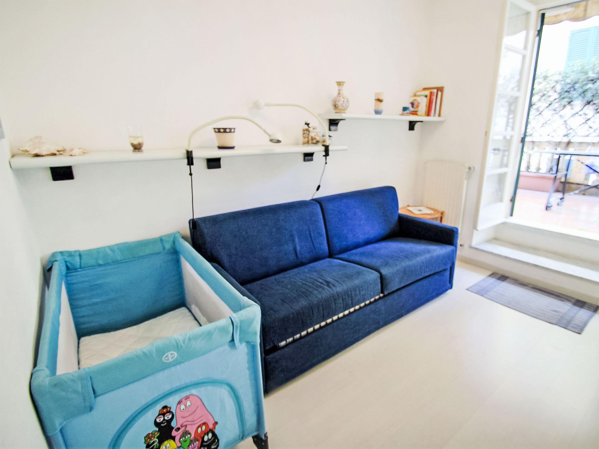 Gemütliches Mehrfamilienhaus "Francesca". Im Ortszentrum von Camogli, 100 m vom Meer. Im Hause: Fahrstuhl. Zufahrt bis 30 m zum Haus. Öffentliche Parkplätze 200 m auf der Strasse extra. Einkaufsgeschäft 20 m, Lebensmittelgeschäft, Restaurant 50 m, Bar, Bushaltestelle 50 m, Bahnstation "Camogli" 300 m, Steinstrand 100 m. Bitte beachten: Eisenbahnlinie 10 m vom Haus. Die Wohnung befindet sich in einer für den Verkehr begrenzt zugänglichen Zone (ZTL).