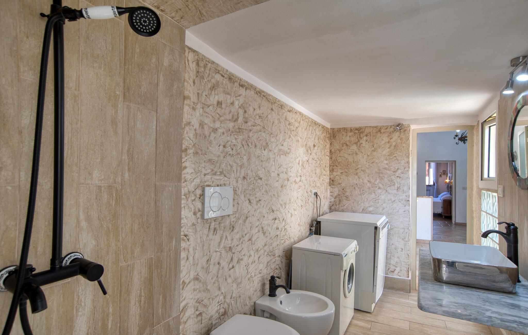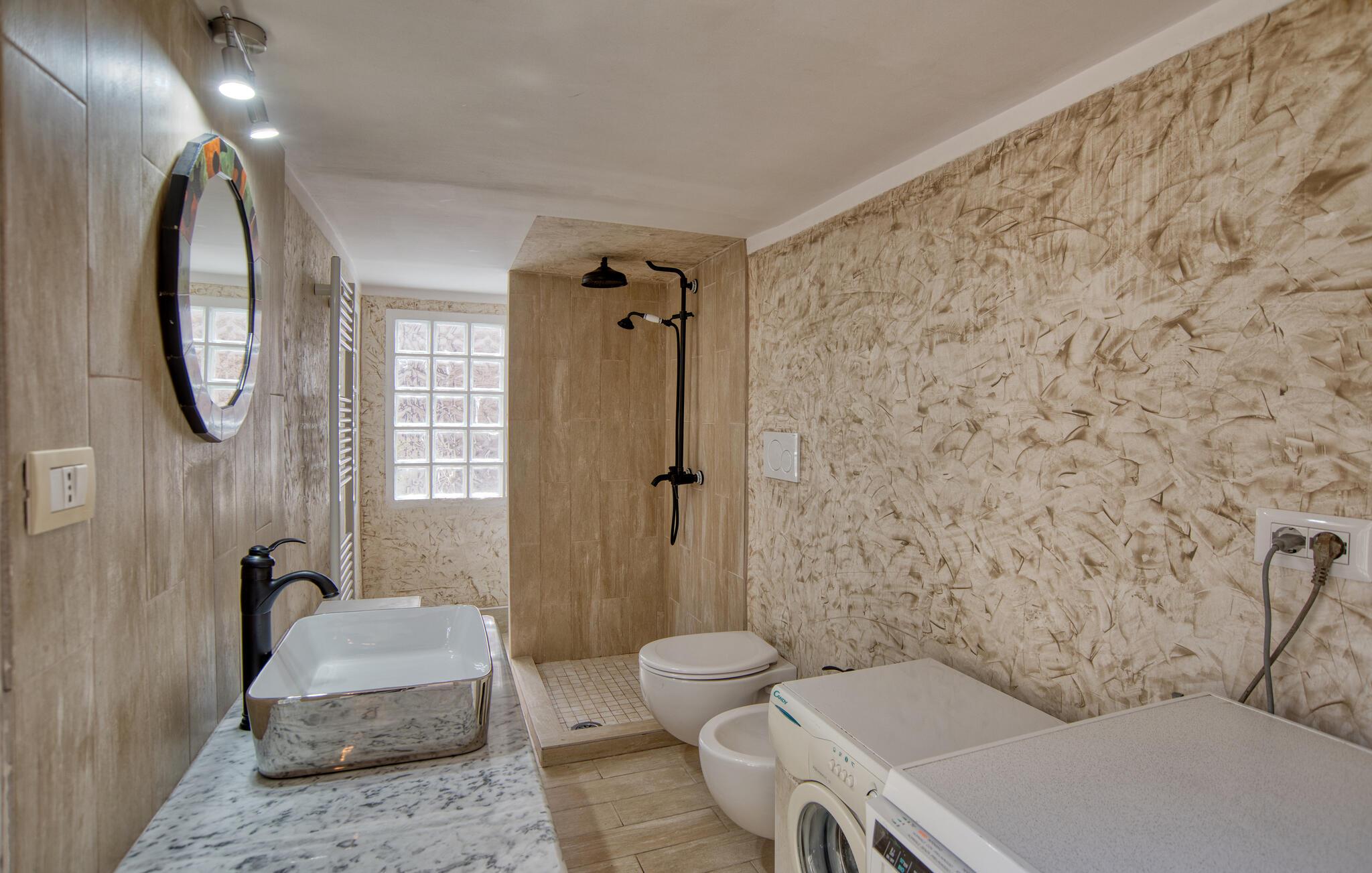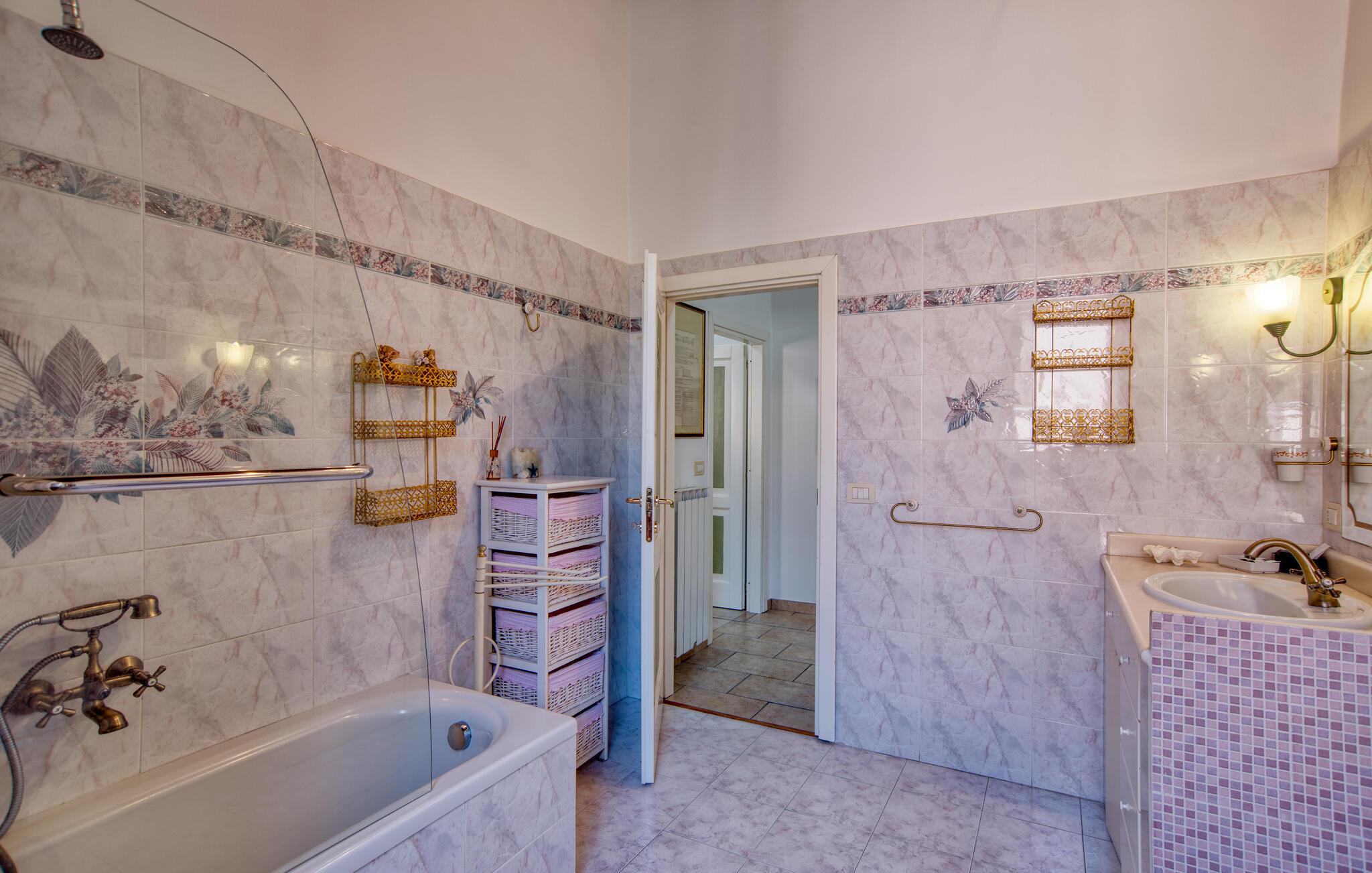 - WC mit warmem und kaltem Wasser, Dusche und Badewanne