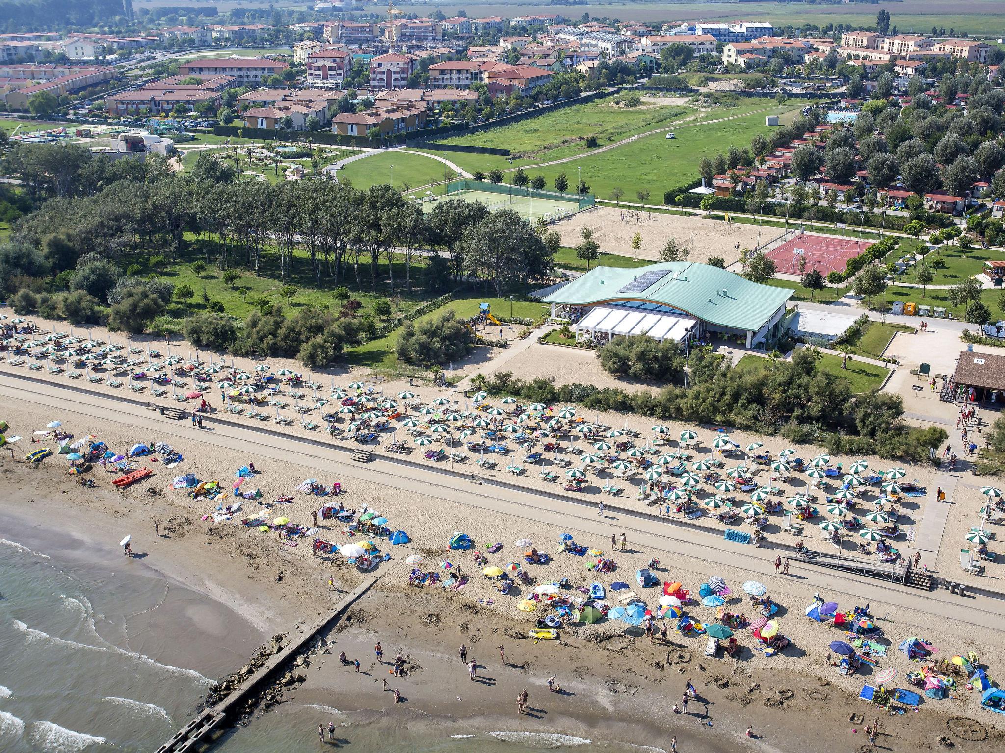Kinderfreundliche Ferienanlage "Le Farnie". 32 Häuser im Ferienresort. 24 Wohnungen in der Residenz. Im Ortsteil Caorle-Lido Altanea, 5 km vom Zentrum von Caorle, 60 km vom Zentrum von Venezia, 115 km vom Zentrum von Trieste, 700 m vom Meer, 700 m vom Strand. Zur Mitbenutzung: Schwimmbad (17 x 8 m, saisonale Verfügbarkeit: 15.Mai. - 15.Sep.). Kinderbecken, Tennis (1 x Hartbelag), beleuchtet (extra), Tischtennis, Basketball, Volleyball, Badminton (extra). In der Anlage: Wireless LAN, Einkaufsmöglichkeit, Boutique, Waschmaschine (zur Mitbenutzung, extra). Parkplatz beim Haus, öffentliche Parkplätze auf der Strasse. Supermarkt, Restaurant 400 m, Bushaltestelle 600 m, Bahnstation "San Donà di Piave" 28 km. Golfplatz (18 Loch) 800 m. Bitte beachten: Animation in der Saison. Geeignet für Familien. Unsere Kunden erhalten 10 % Ermäßigung für den Strandservice bei Online-Buchung vor Anreise beim Schlüsselhalter.