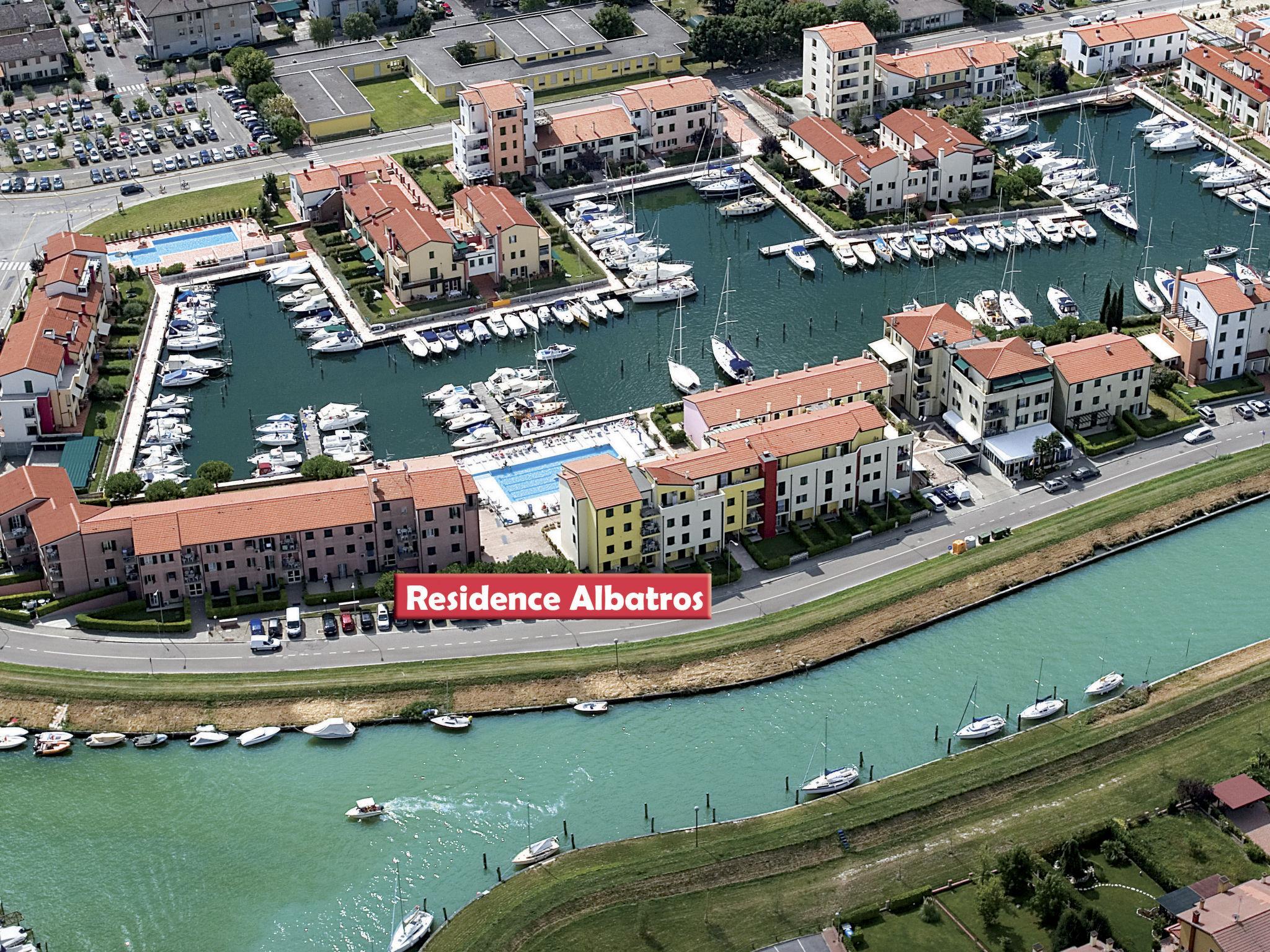 Residenz "Albatros", auf 4 Stockwerken. 100 Wohnungen in der Residenz. 500 m vom Zentrum von Caorle, 65 km vom Zentrum von Venezia, 115 km vom Zentrum von Trieste, 600 m vom Meer, 600 m vom Strand. Zur Mitbenutzung: Grundstück (eingezäunt), Schwimmbad (20 x 10 m, saisonale Verfügbarkeit: 23.Mai. - 15.Sep.). Kinderbecken, Aussendusche. In der Anlage: Restaurant, Bar. Parkplatz beim Haus, öffentliche Parkplätze auf der Strasse extra. Lebensmittelgeschäft 500 m, Bushaltestelle 350 m, Bahnstation "San Donà di Piave" 28 km, Sandstrand 600 m. Jacht-Hafen 20 m, Golfplatz (18 Loch) 9.3 km. Nahe gelegene Sehenswürdigkeiten: Laguna di Caorle 5 km.