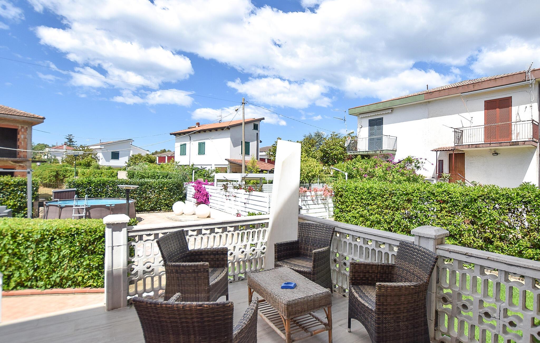 Erleben Sie sonnige Tage in diesem komfortablen Ferienhaus mit Pool unweit schöner Strände.