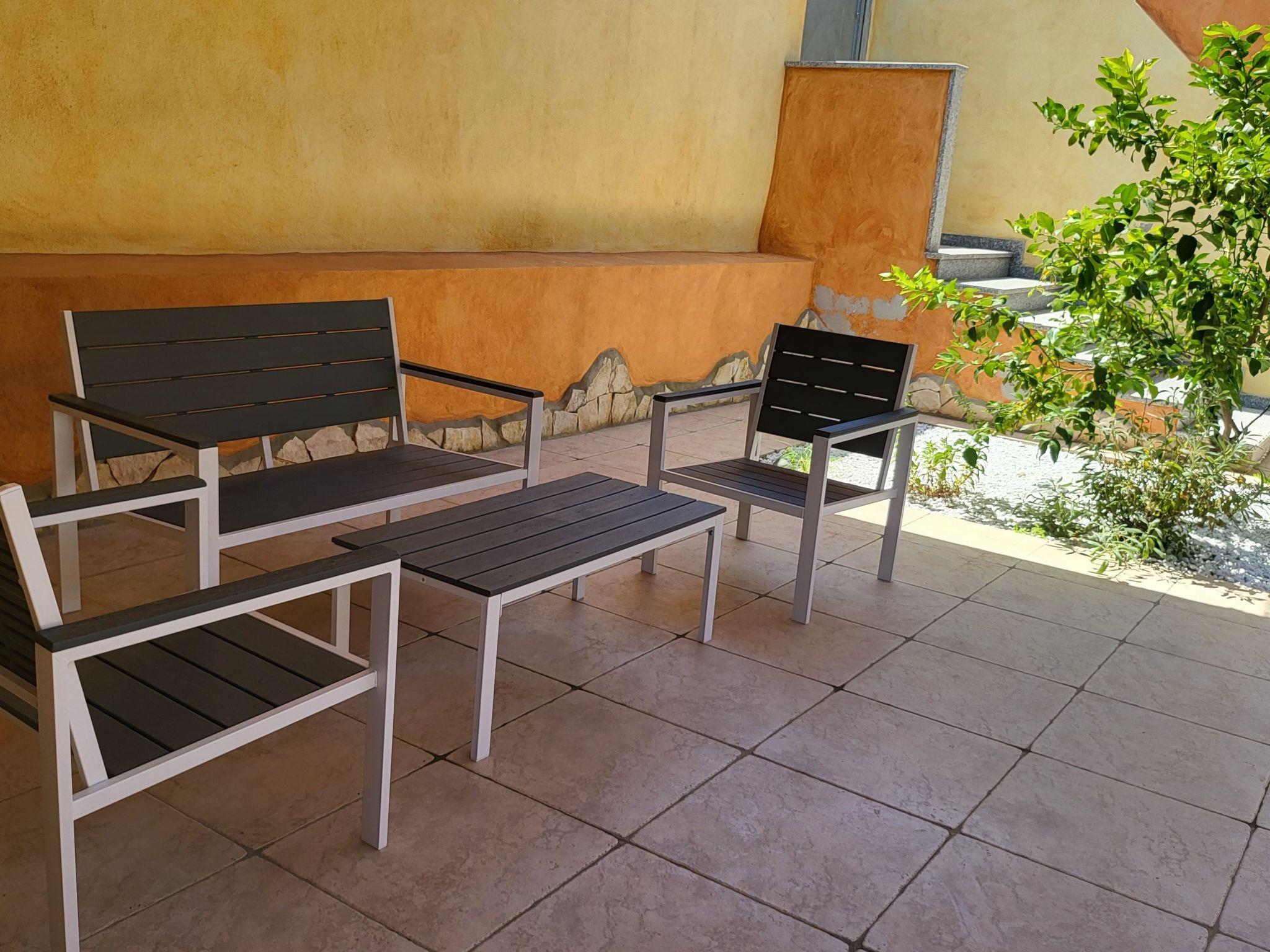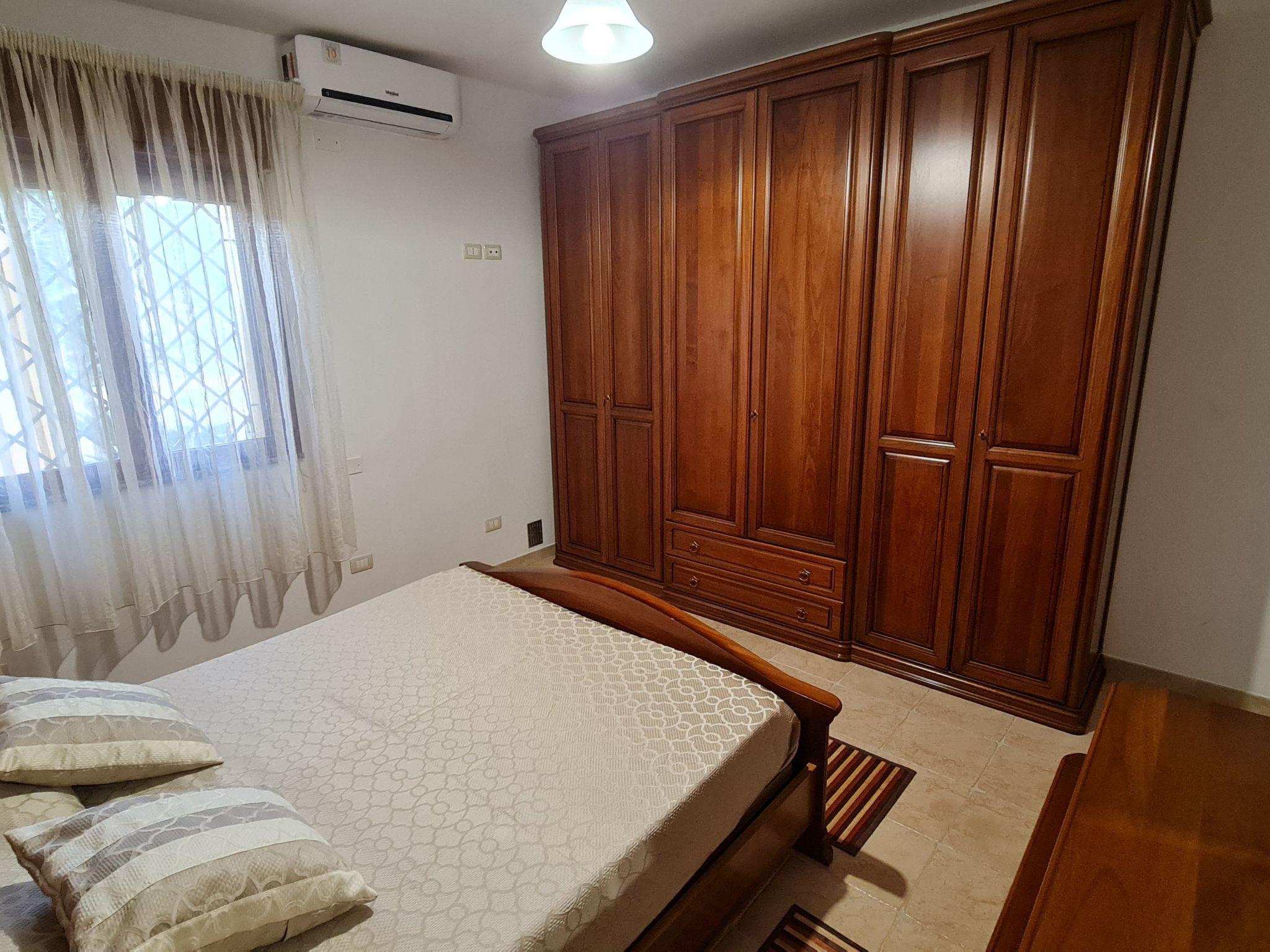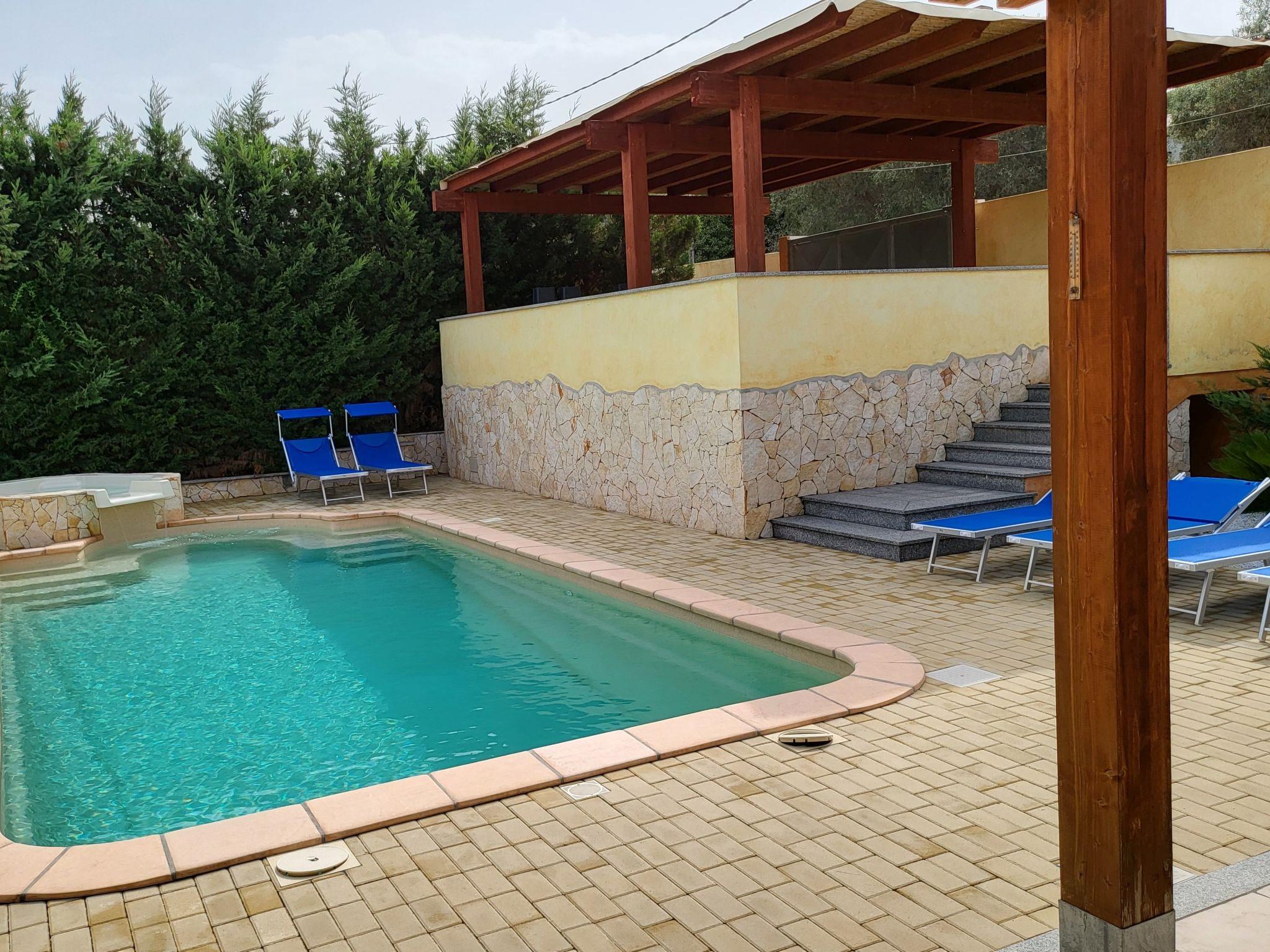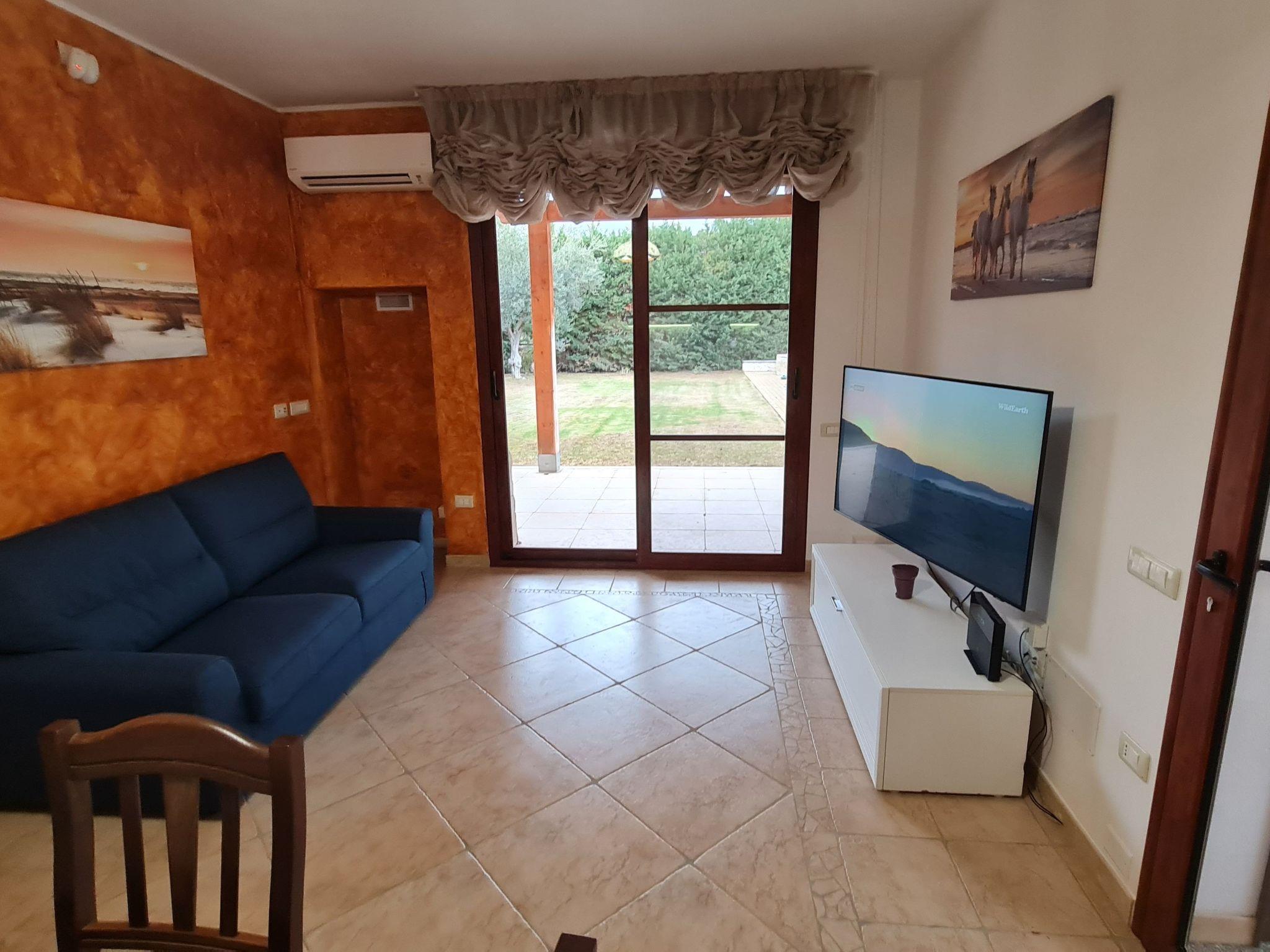 Der Zugang zur Villa erfolgt über einen Fußgängereingang oder mit dem Auto über den internen Parkplatz mit Schiebetor. Ein breiter Gehweg führt zur Eingangstür des Hauses. Im Inneren ist die Villa auf zwei Ebenen. Der Haupteingang im Erdgeschoss führt direkt in das Wohnzimmer mit TV und Essbereich. In einem einzigen Raum befinden sich das Wohnzimmer und die große, gut ausgestattete Küche. Die helle Glasschiebetür des Wohnzimmers und der Küche führt auf eine Veranda und zu einem überdachten Pavillon mit Tisch und Stühlen, ideal für ein Abendessen, bei dem man die typischen Produkte unseres sardischen Landes kosten kann. Vom Wohnzimmer aus erreicht man den Korridor, der zum Badezimmer und zum Schlafzimmer mit Doppelbett führt. Vom Korridor aus erreicht man die Treppe, die zum Schlafbereich im Obergeschoss führt, der aus einem Doppelzimmer, einem Zweibettzimmer mit zusammensteckbaren Betten und einem Badezimmer besteht.