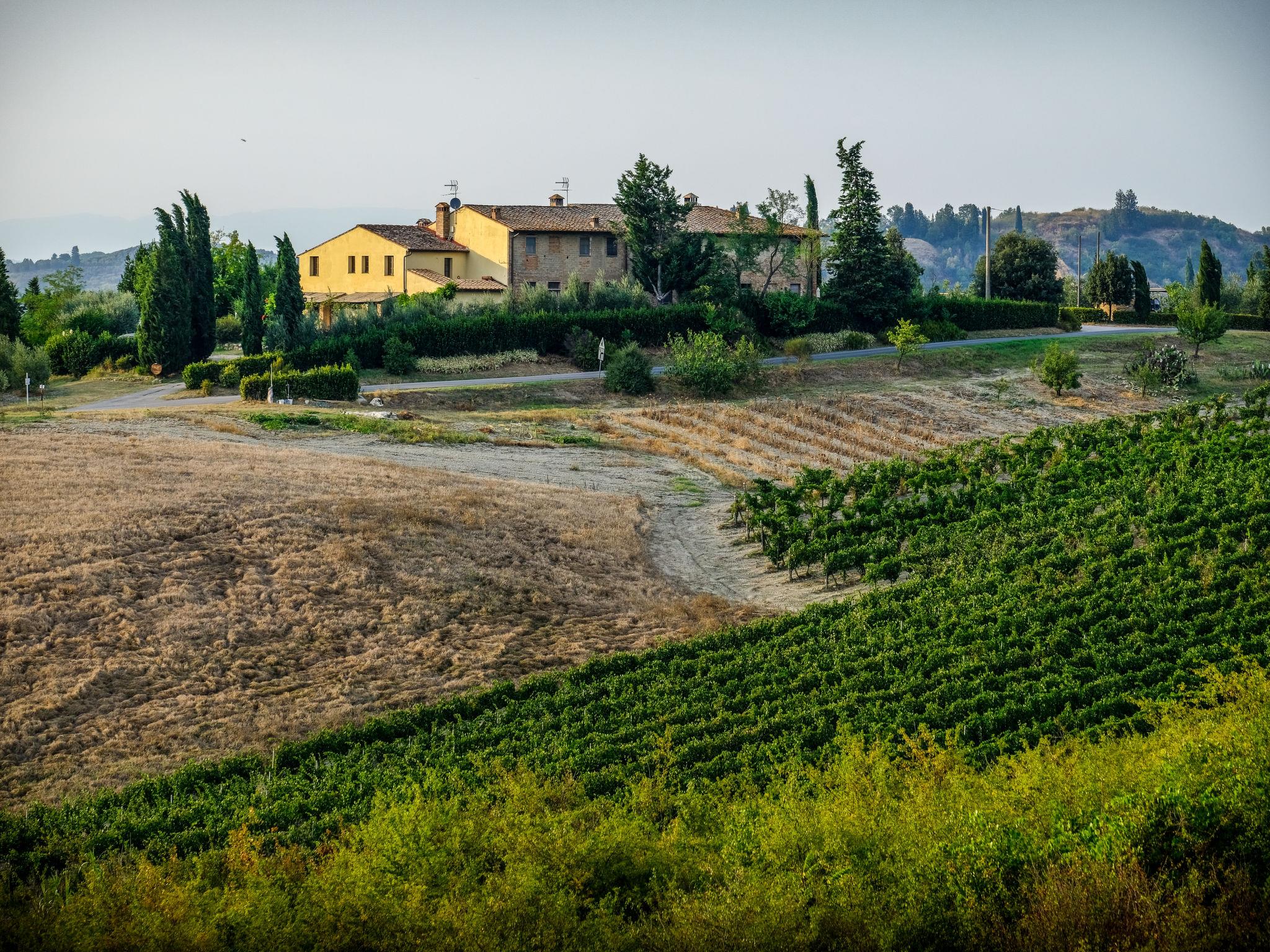 Schönes Bauerngut "Podere La Torre", renoviert, umgeben von Wiesen, Feldern und Weinbergen. Am Ortsrand Certaldo Alto, alleinstehende, sonnige Lage auf einem Hügel, im Grünen. Zur Mitbenutzung: naturbelassenes Grundstück, Garten mit Rasen und Pflanzen, Schwimmbad (5 x 10 m, saisonale Verfügbarkeit: 24.Apr. - 02.Okt.). Aussendusche, Terrasse, Gartenmöbel, Grill. In der Anlage: Internetzugang, Wireless LAN, Waschmaschine, Wäschetrockner, Heizung vor Ort zu zahlen, Fahrräder vorhanden. Wäschewechsel 1 mal wöchentlich. Parkplatz auf dem Grundstück. E-Ladestation. Einkaufsgeschäft 2 km, Supermarkt 2 km, Einkaufszentrum 1 km, Bäckerei 1 km, Zentrum zu Fuss in 20 Minuten erreichbar, Bushaltestelle 2 km, Freibad 2 km. Golfplatz 30 km, Tennis 3 km, Reitstall 5 km, Kinderspielplatz 3 km. Nahe gelegene Sehenswürdigkeiten: Certaldo Alto 1 km, Firenze 45 km, Siena 45 km, San Gimignano 12 km. Ab Hof Verkauf von bäuerlichen Produkten. Bitte beachten: Der Besitzer wohnt auf dem gleichen Grundstück.