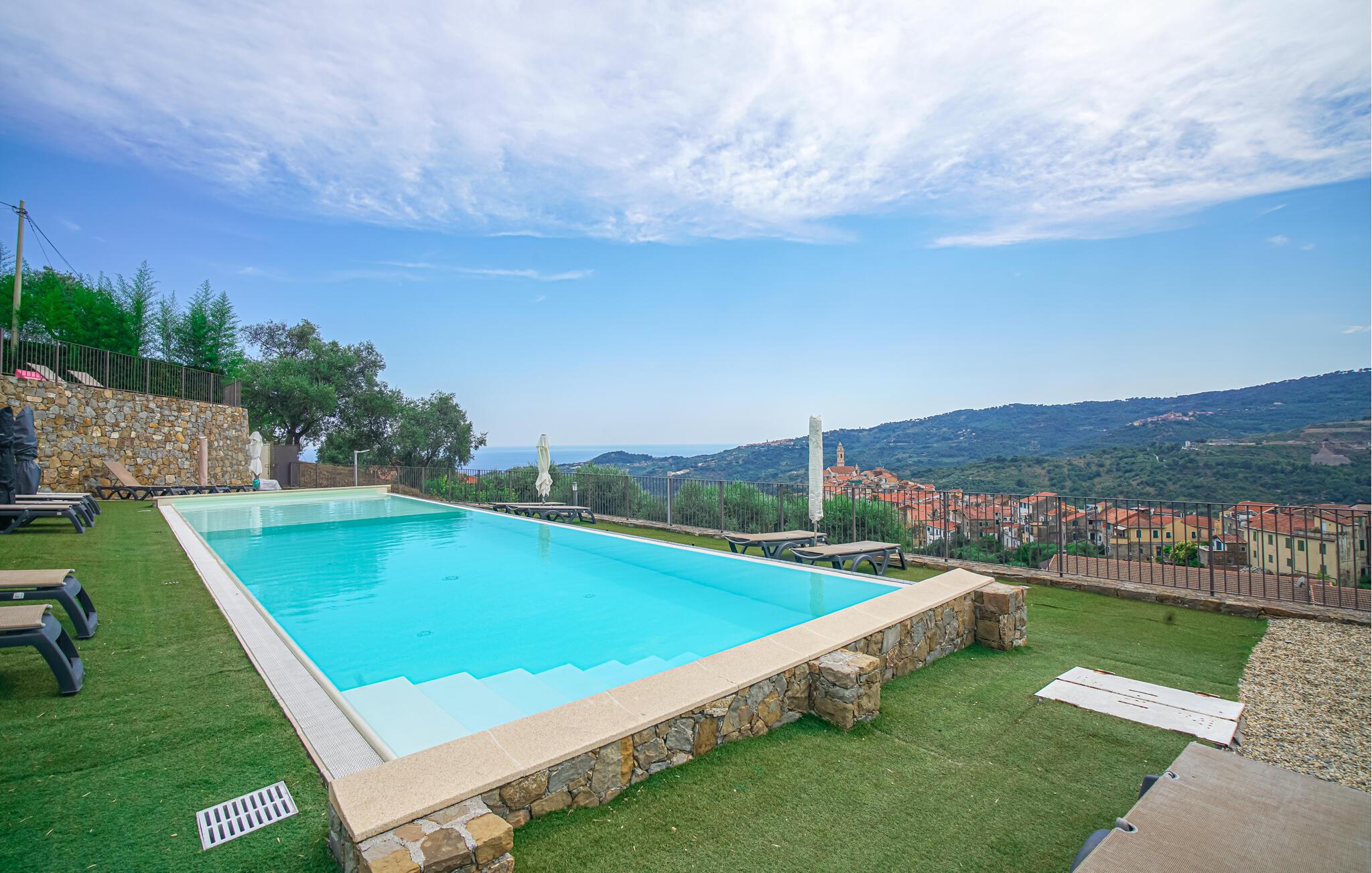 Starten Sie mit einem entspannten Frühstück auf der überdachten Terrasse in den Tag und lassen Sie die friedliche Atmosphäre auf sich wirken. Werfen Sie sich das Handtuch über die Schulter und spazieren Sie zum herrlichen Pool, wo Sie sich nach Lust und Laune erfrischen und einen sensationellen Panoramablick auf die malerische Landschaft genießen können.