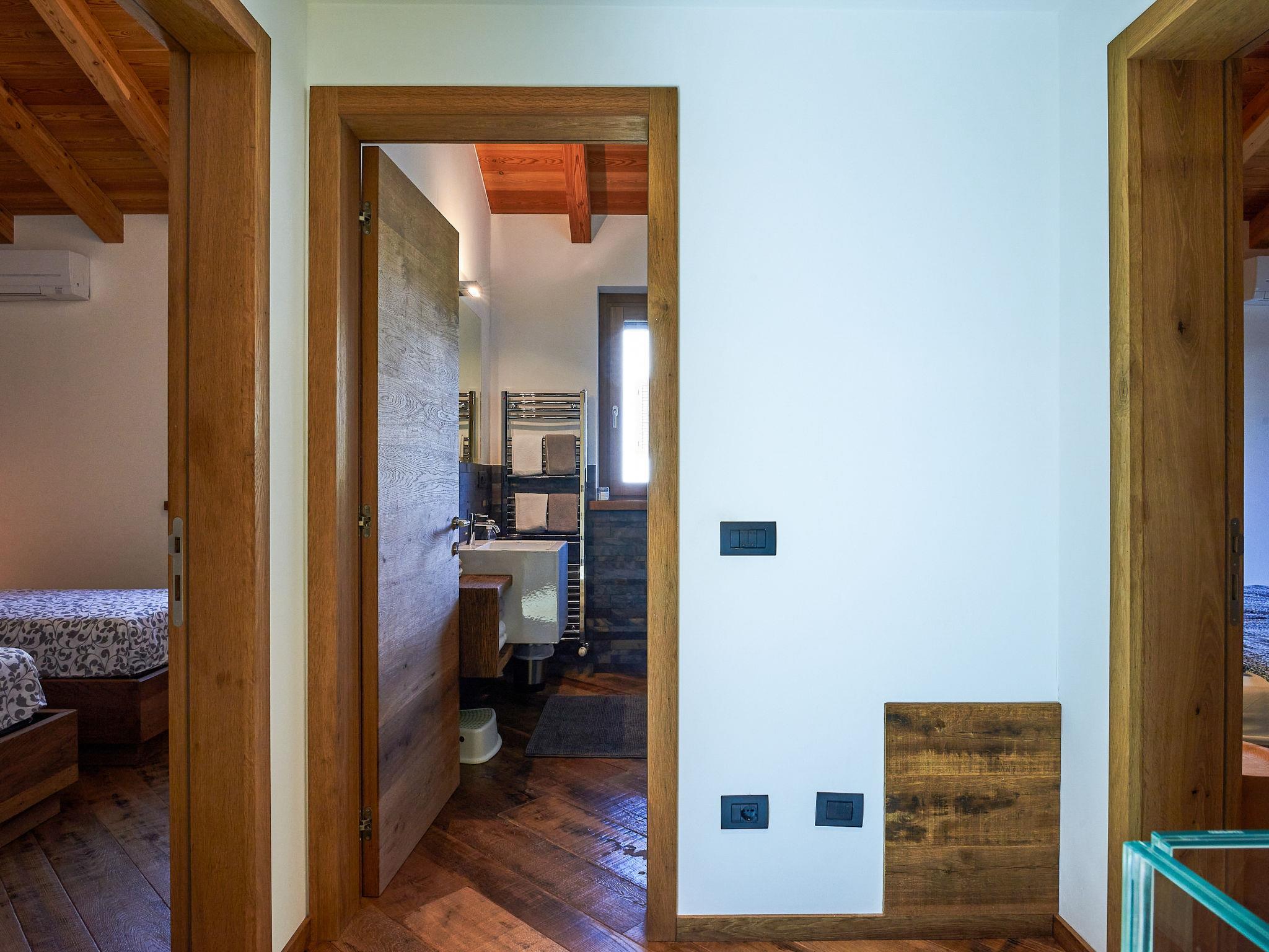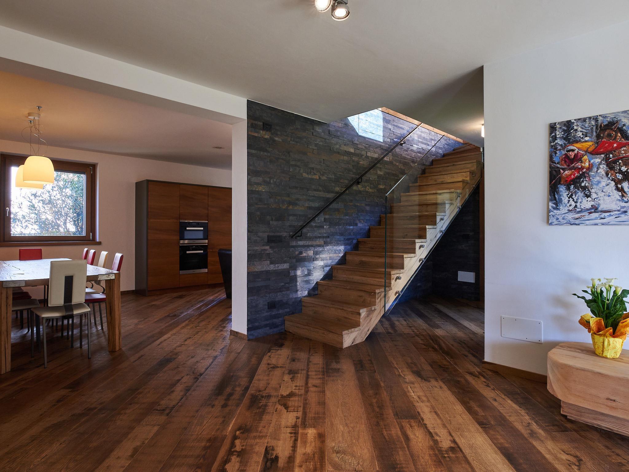 8-Zimmer-Haus 300 m2. Geschmackvoll und mit viel Holz eingerichtet: Wohnzimmer mit Sat-TV. Ausgang zum Garten. 1 Zimmer mit 2 Betten und Klimaanlage. Grosse, offene Küche (Backofen, Geschirrspüler, 4 Induktionskochplatten, Toaster, Mikrowelle, elektrische Kaffeemaschine) mit Bar, Esstisch. Ausgang zum Gartensitzplatz. Dusche/WC. Unteres Geschoss: 1 Zimmer mit 2 Betten und 1 Doppelbett. Spielzimmer mit Schwedenofen und Bar. Dusche/WC. Obergeschoss: offenes Wohnzimmer mit TV und elektrischem Rollladen. Ausgang zum Balkon. 1 Doppelzimmer mit Klimaanlage. 1 Zimmer mit 2 Betten und Klimaanlage. Ausgang zum Balkon. 1 Doppelzimmer mit Bad/WC, Sprudelbad und Klimaanlage. Dusche/Bidet/WC. Klimaanlage, Warmluftheizung. Holzdielenboden. Kleiner Balkon, grosser Gartensitzplatz. Terrassenmöbel, Gartengrill (mobil), Liegestühle (6). Zur Verfügung: Waschmaschine, Wäschetrockner, Bügeleisen, Fliegengitter, Kinderhochstuhl, Babybett bis 2 Jahre. Internet (WLAN, gratis). Bitte beachten: Nichtraucher-Haus. Maximal 1 Haustier/Hund erlaubt. Feuerlöscher. Bei Belegung mit weniger Personen als der maximalen Personenzahl stehen nicht alle Wohneinheiten zur Verfügung. IT097023C2WRJQEYKK