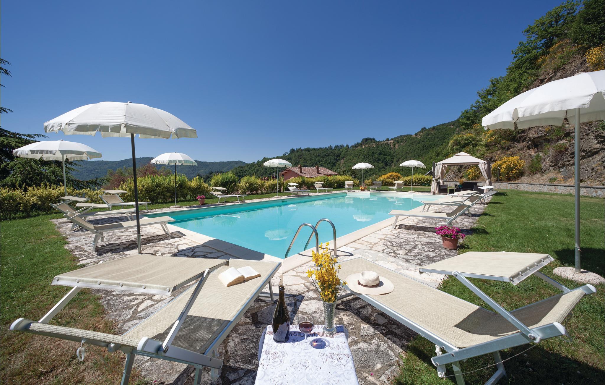 Etwa 15 km oberhalb von Cortona, umgeben von weiten Eichenwäldern, liegt dieses freundliche Ferienhaus mit privatem Pool, großem Garten, tollem Blick und viel Platz für Gross und Klein! Im Erdgeschoss und im 1. Stock gibt es große Terrassen zur sonnigen Südseite; einen schattigen Sitzplatz direkt vor der Küche, mit Barbecue. In der unteren Etage steht den Gästen ein heller Raum mit Tischtennis, Tischfußball und Fitnessgeräten zur Verfügung. Alle Schlafzimmer haben eigene Badezimmer, zwei zusätzliche Toiletten im Erdgeschoss. Die Einrichtung ist einfach und funktional. Etwas oberhalb vom Haus liegt der umzäunte Poolbereich mit Liegestühlen und Panoramablick. Außerdem auf dem Grundstuck: Basket, Boccia, Badminton. Direkt vom Haus aus können Sie wunderbare Spaziergänge unternehmen. Die pittoreske Etruskerstadt Cortona ist ein lohnendes Ziel: Hier können Sie die malerischen Sträßchens und Gassen durchwandern, immer wieder neue Ausblicke bis auf dem Trasimeno-See entdecken und das lebendige Treiben vor einer der zahlreichen Bars und Weinstuben gemütlich beobachten. Schicke Kleidung und Lederwaren, Weine und lokale Spezialitäten bekommen Sie hier vielerorts geboten. Das etruskische Museum sollten Sie nicht auslassen und auch ein Spaziergang hinauf zur Festung bietet Ihnen immer wieder einmalige Ausblicke. Wunderschön ist das nahe gelegene Franziskanerkloster Le Celle, ein romantischer Ort der Besinnung (12 km).Weitere Ausflugsziele: Der Lago Trasimeno mit seinen Sandstränden und kleinen Inseln (35 km). In Montepulciano sollten Sie den berühmten Rosso di Montepulciano vor Ort (45 km) probieren und erwerben; das reizende Renaissance-Städtchen Pienza mit atemberaubender Sicht über das einmalige Orcia-Tal (50 km) wird Ihnen in lebhafter Erinnerung bleiben. Doch auch ein Besuch im umbrischen Città di Castello (30 km) lohnt sich! Siena mit der schönen Piazza del Campo (90 km) sowie die umbrische Hauptstadt Perugia (70 km) erreichen Sie in einer Stunde Fahrt. Steile Zufahrt!