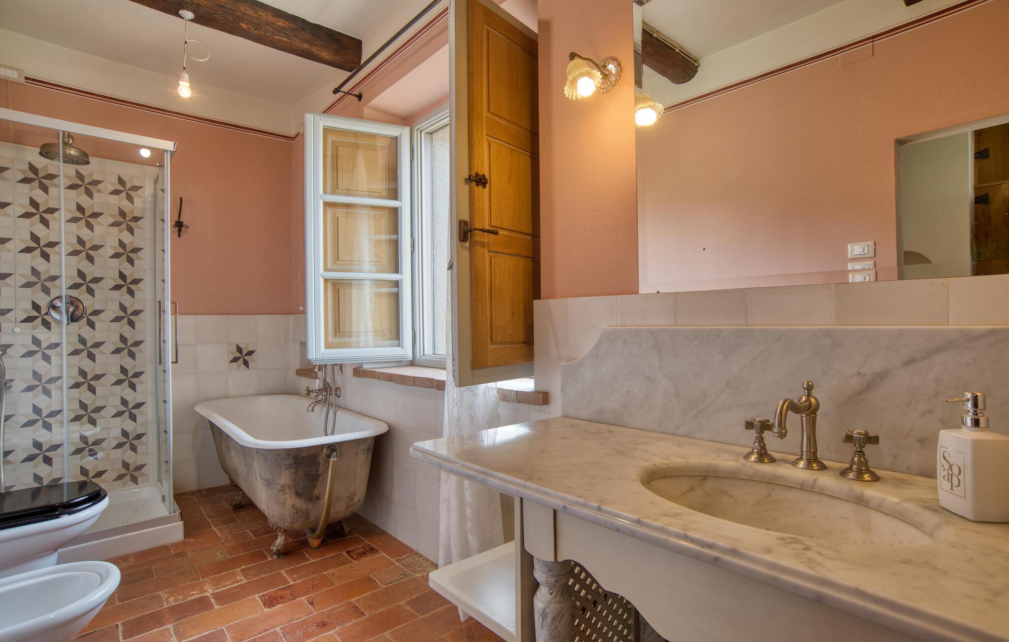 Mit schöner Aussicht auf die Landschaft empfängt Sie dieses geräumige Ferienhaus in Cortona.