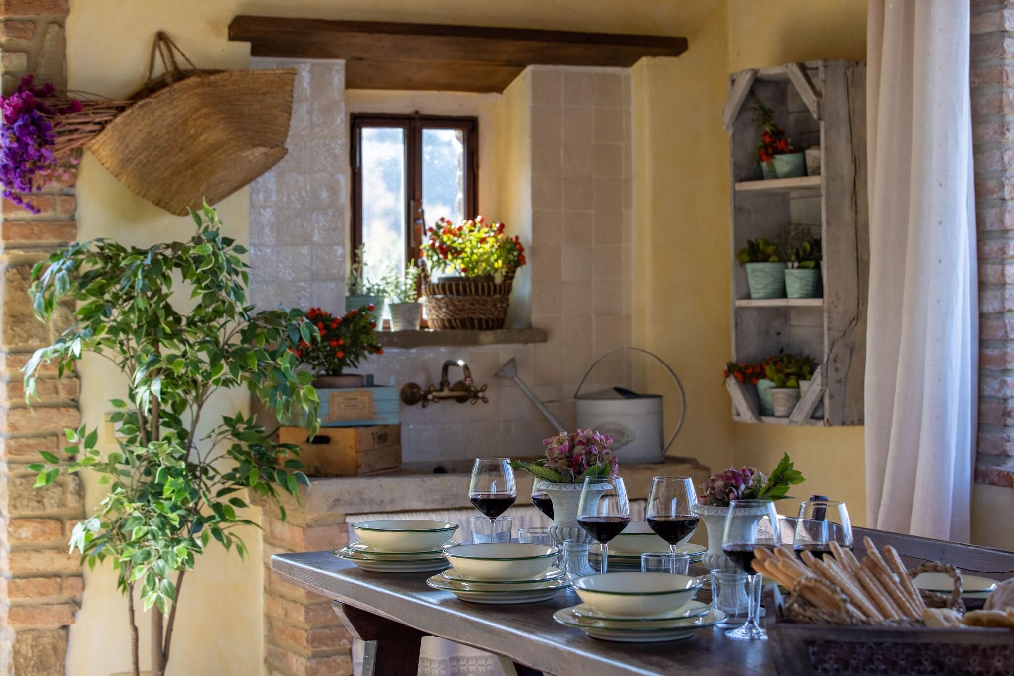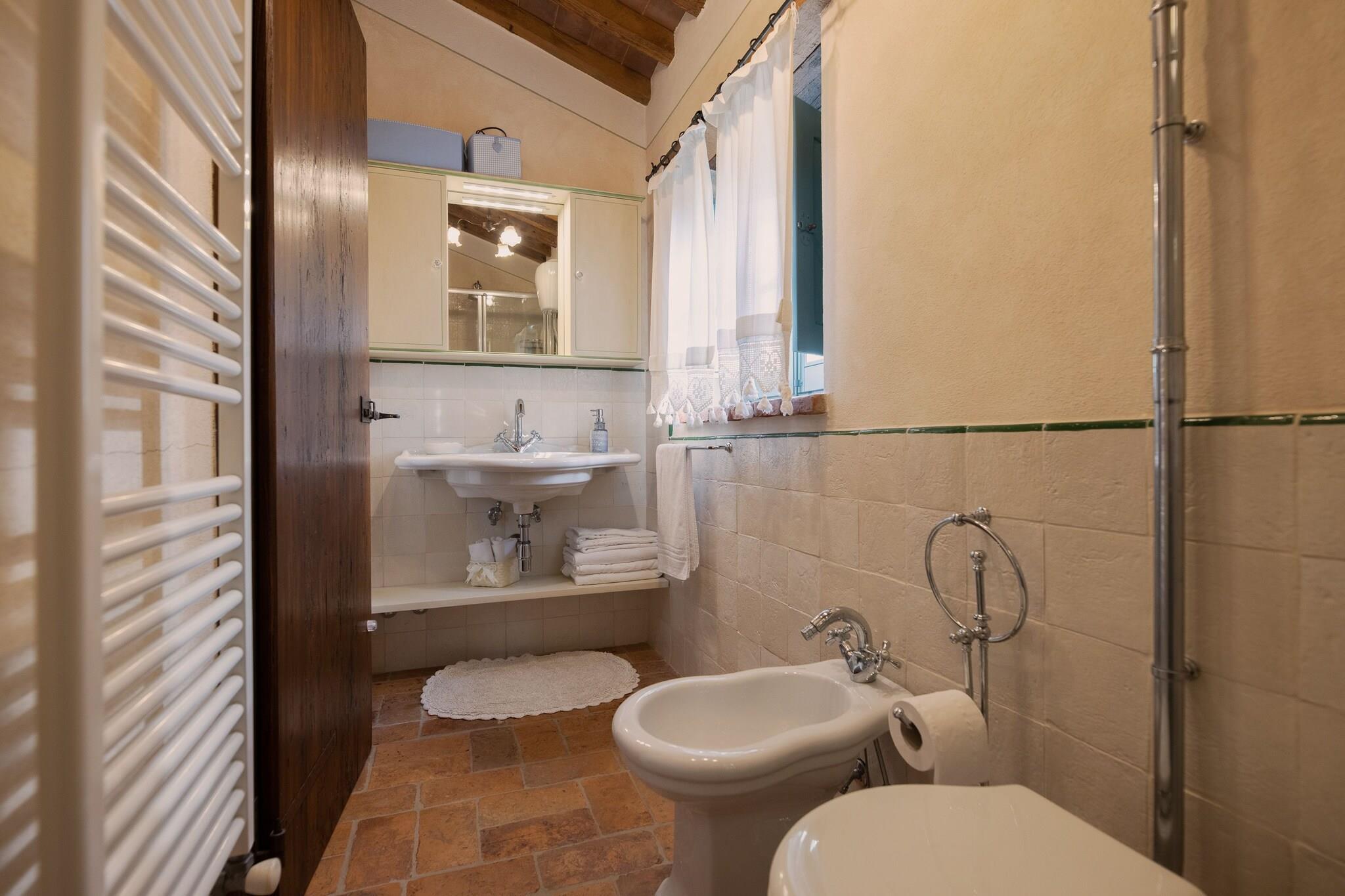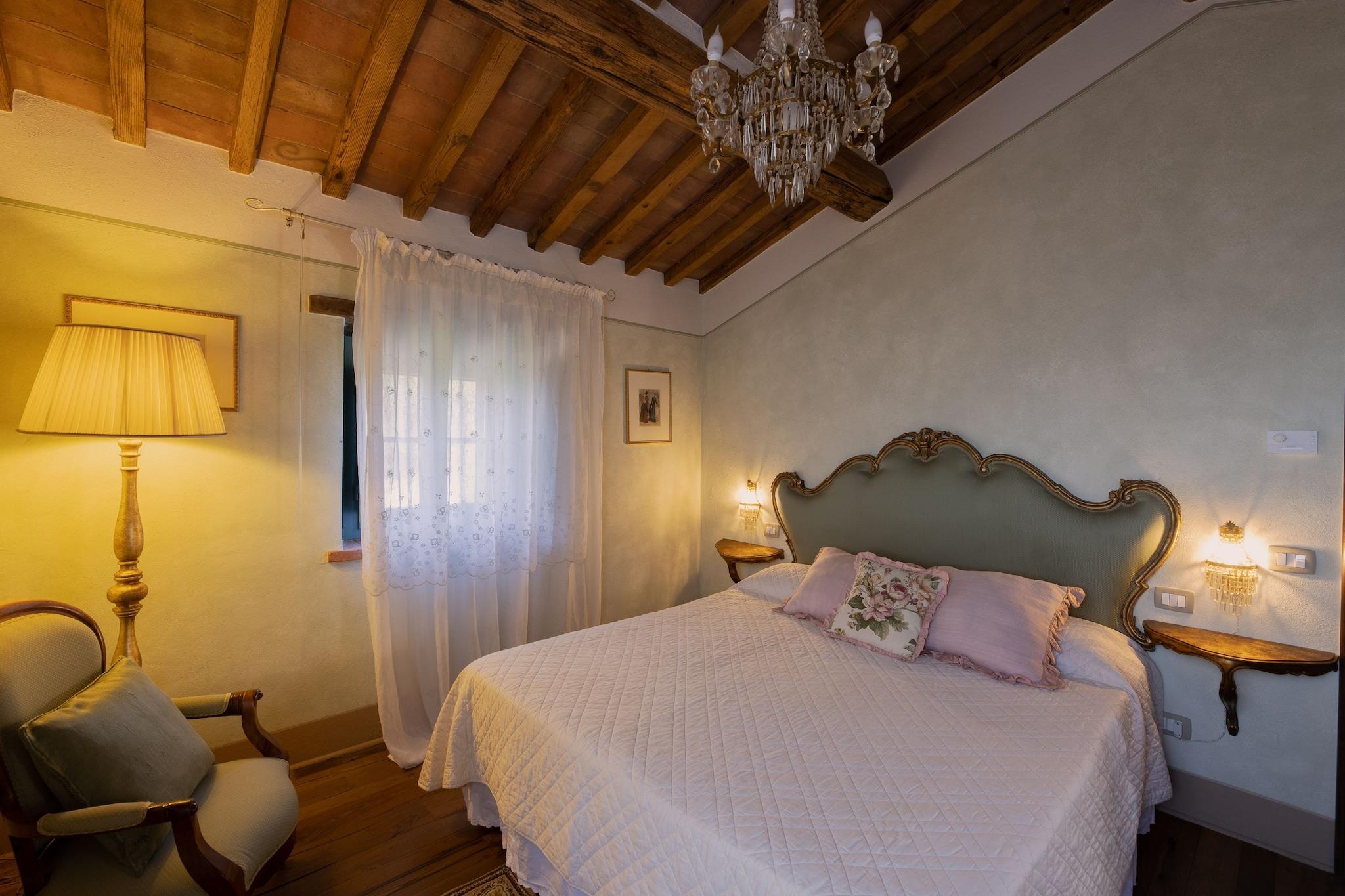 Casa Lamate ist ein Ferienhaus im toskanischen Stil in Panoramalage über dem Valdichiana. Umgeben von einer großen Terrasse und einem eingezäunten Garten bietet es den idealen Ort für entspannte Momente unter Olivenbäumen und Eichen. Eine kleine Ecke ist mit Grill und Holzofen ausgestattet. Nur wenige Kilometer von der bekannten etruskischen Stadt Cortona entfernt, die reich an Traditionen, Kultur, Kunst und kulinarischer Geschichte ist, ist es dank seiner strategischen Lage der ideale Ausgangspunkt für Besuche der wichtigsten Kultur- und Stadtzentren Mittelitaliens. Das Haus erstreckt sich über drei Etagen, jede mit direktem Zugang von außen. Der Haupteingang führt in die große Küche und die Außenveranda – ideal für köstliche Abendessen mit Blick auf die Landschaft. Eine Bogentür trennt die Küche vom gemütlichen Wohnzimmer mit Sofas, in dem der Steinkamin hervorsticht. Im ersten Stock befinden sich drei Schlafzimmer. Eines der Doppelzimmer verfügt über ein eigenes Bad; die beiden anderen Schlafzimmer teilen sich ein Badezimmer mit Dusche.