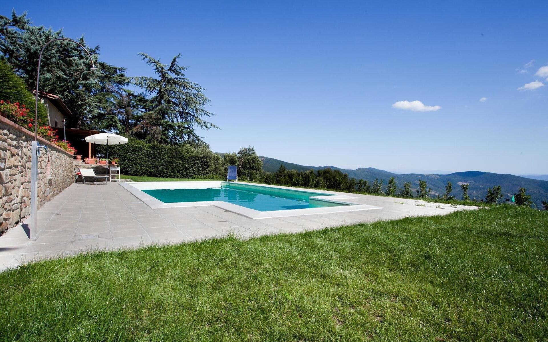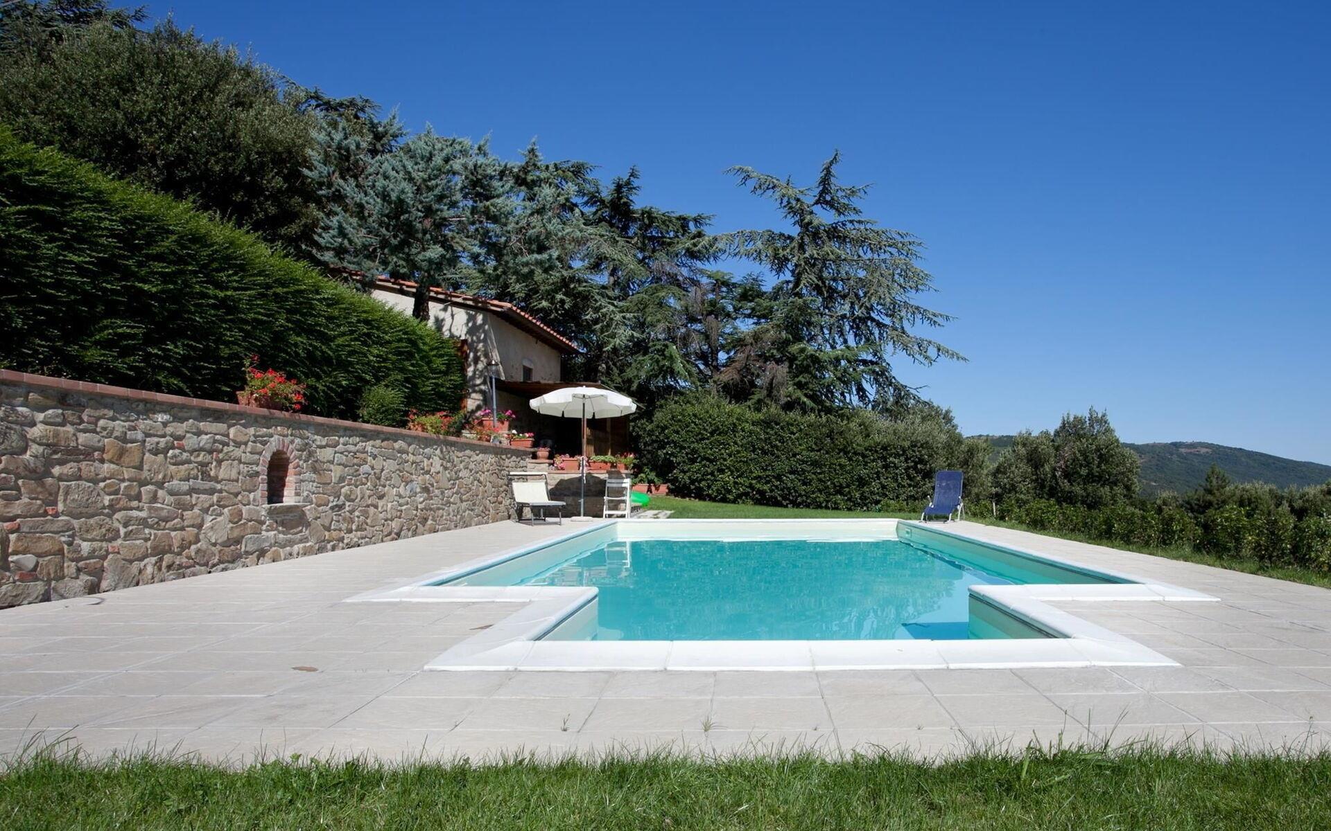 Casa Cristina befindet sich mitten der Natur, von Wäldern und Olivenhainen umgeben, so dass sie zu einer Oase des Friedens und der Ruhe wird, wo Sie ein paar schöne Tage verbringen können. Das Schwimmbad (10 x 5 m, Tiefe 1,60 m) ist den ganzen Tag der Sonne ausgesetzt und befindet sich auf einer herrlichen natürlichen Panoramaterrasse, wo Sie zu Ihrer Verfügung, Liegestühle, Sonnenschirme und eine Außendusche haben. Draußen ebenfalls der Vorteil einer schönen Terrasse, wo Sie Ihre Mahlzeiten im Freien genießen können. Ein paar Meter von dem Haus befindet sich ein Grill, Holzofen und Waschküche.