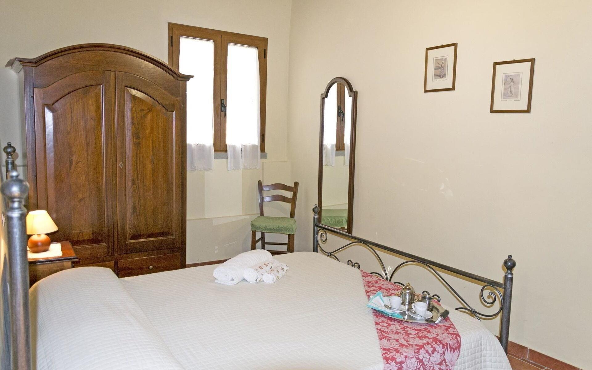 Casa Cristina verteilt sich auf einer Ebene. Die gefliesten Böden und Decken mit sichtbaren Holzbalken führen auf den klassisch toskanischen Stil, zusammen mit den Holzmöbeln und typischen Elemente dieses Stils, zurück.