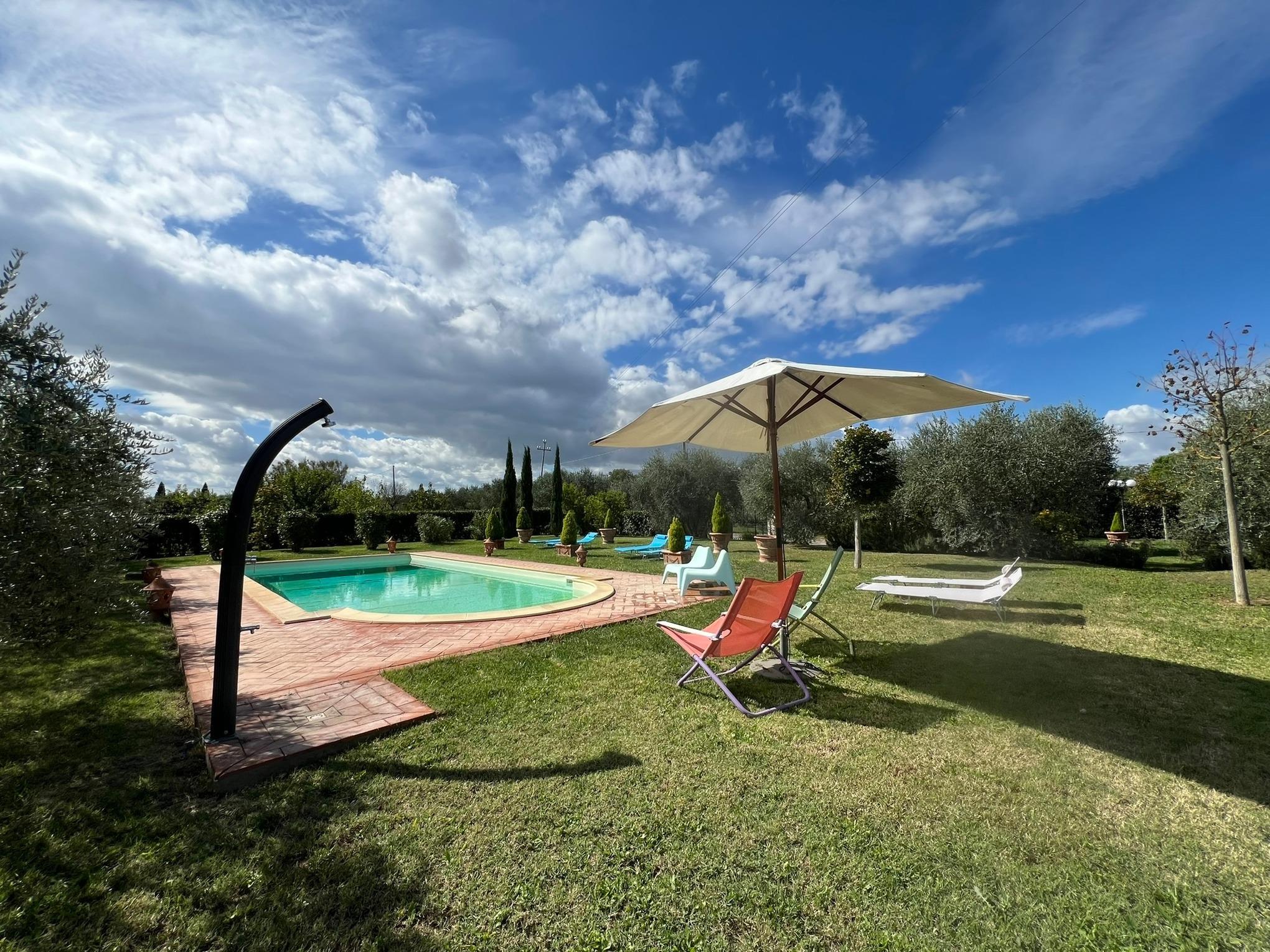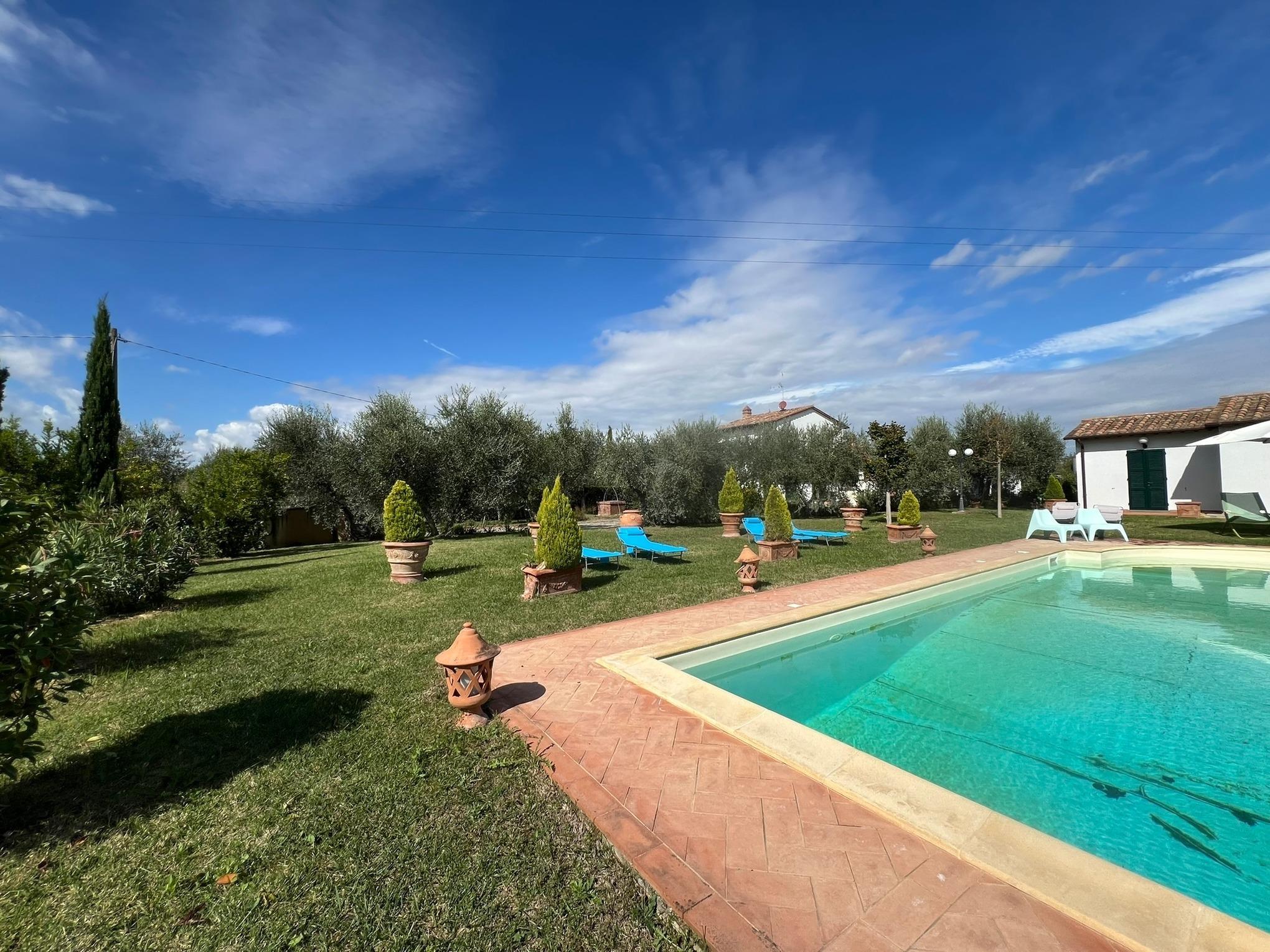 Villa Elena ist ideal für diejenigen, die einen abgelegenen und ruhigen Ort suchen und gleichzeitig die Stadt Cortona und die schönsten Städte der Toskana und Umbriens, wie Montepulciano, Montalcino, Arezzo, Pienza, Orvieto, Assisi und viele andere, leicht erreichen wollen. Das Grundstück ist komplett eingezäunt und liegt in einem wunderschönen Garten mit vielen Blumen und Olivenbäumen. Der Poolbereich ist den ganzen Tag über der Sonne ausgesetzt und wird zum perfekten Ort, an dem Sie sich während der heißen Sommertage erfrischen können. Das Schwimmbad ist mit Liegestühlen, Sonnenschirmen und einem Bad ausgestattet.