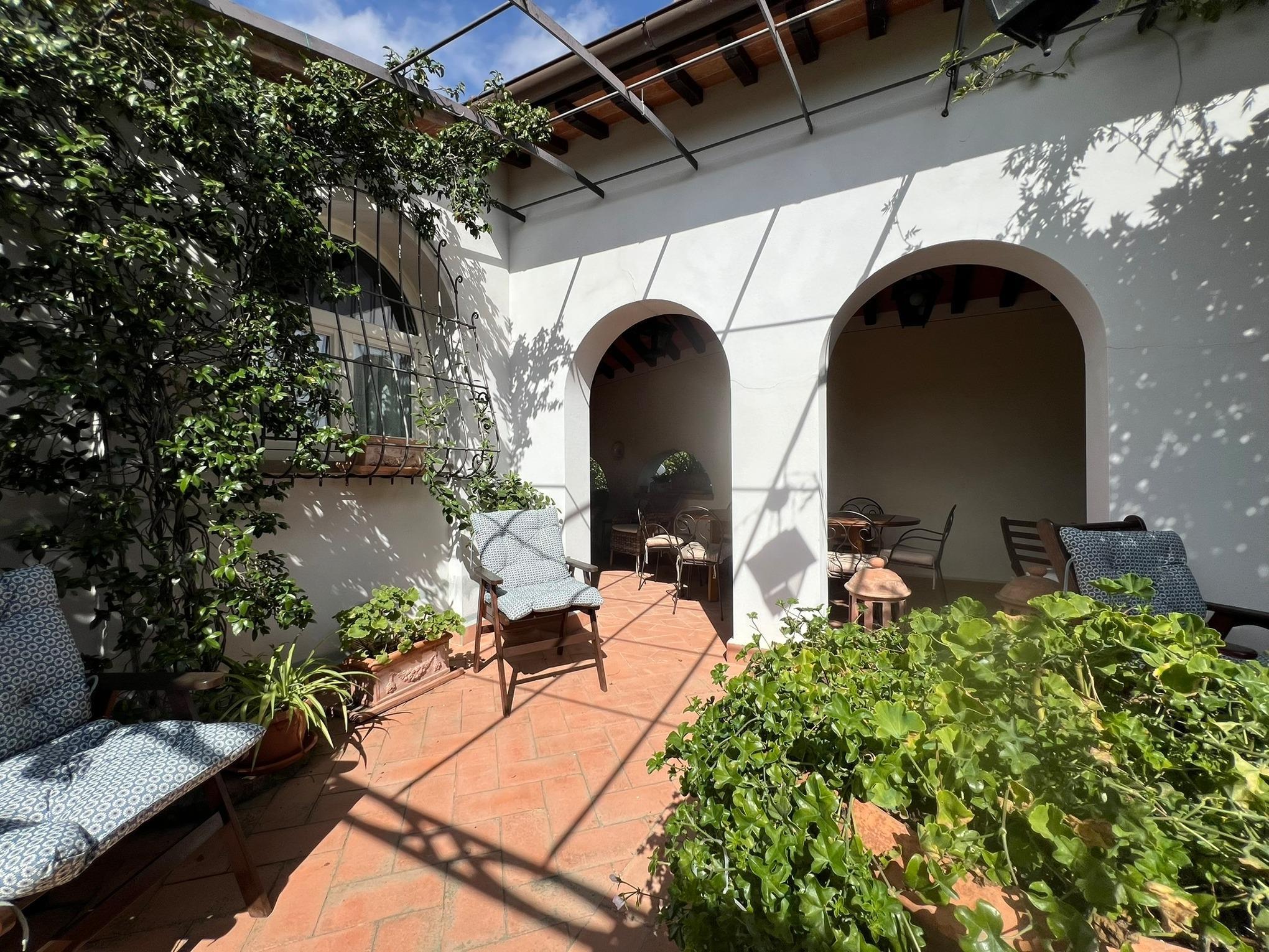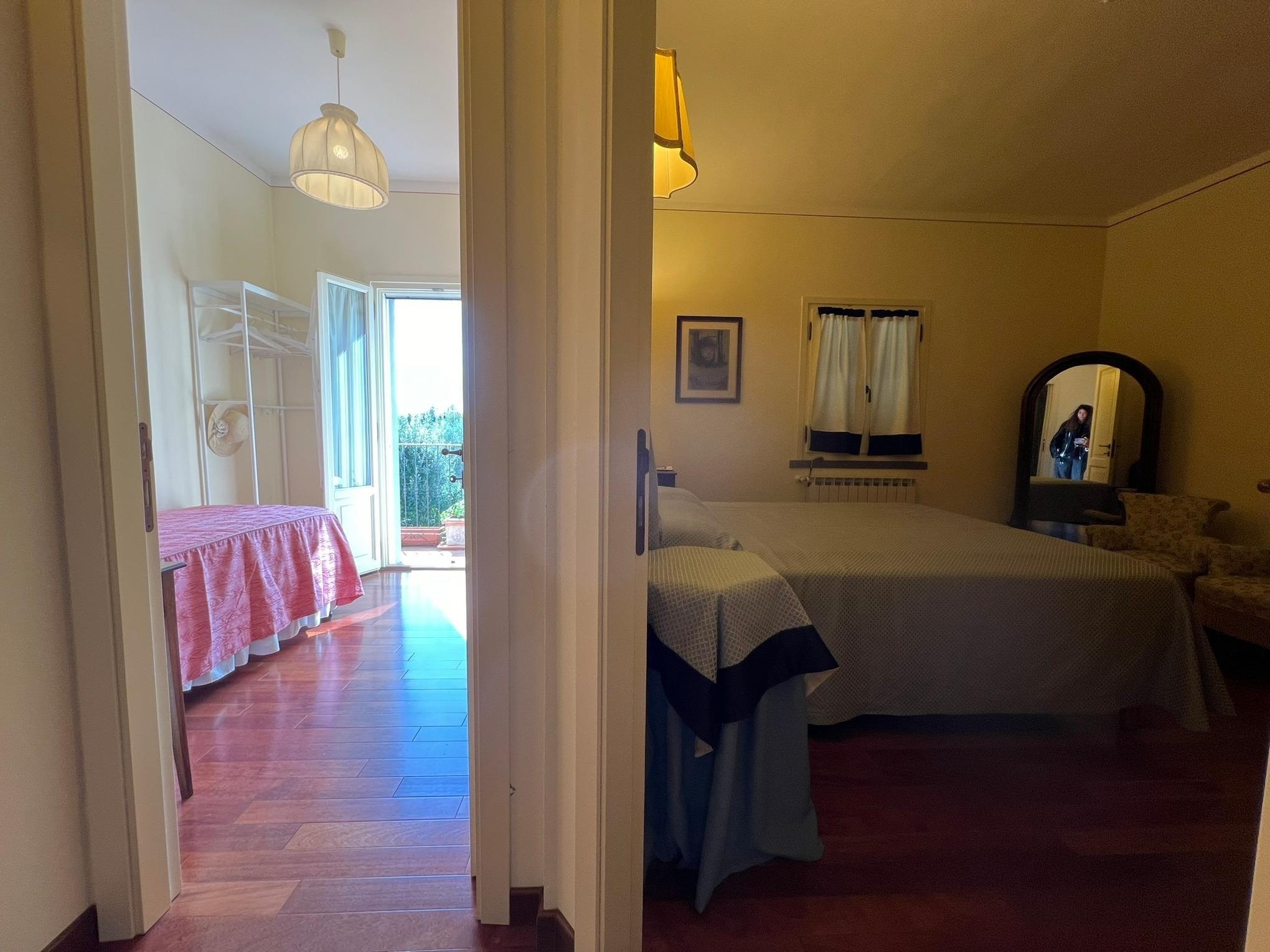 Die Villa Elena bietet Platz für bis zu 7 Personen und erstreckt sich über zwei Ebenen, die durch eine Innentreppe verbunden sind. Die Villa, die kürzlich renoviert wurde, ist modern und elegant eingerichtet. Sie zeichnet sich durch einen schönen Parkettboden im ganzen Haus und wertvolle Oberflächen aus. Von der Eingangstür aus gelangt man direkt in einen Flur, in dem sich auf der linken Seite das erste der vier Schlafzimmer befindet, ein geräumiges Schlafzimmer mit Doppelbett und einem schönen und raffinierten Studiobereich, in dem sich eine große Bibliothek und ein großes Sofa befinden. Neben dem Schlafzimmer befindet sich eine Toilette. Rechts vom Eingang befindet sich der Wohnbereich mit einem Steinkamin, Sofa und Sesseln, einem großen Esstisch und einem Smart-TV. Vom Wohnzimmer aus haben Sie direkten Zugang zur Küche durch eine Salontür. Die Küche ist modern und geräumig, voll ausgestattet und mit allem Notwendigen versehen, um Ihre Lieblingsgerichte zu kochen. Sie ist direkt mit der Außenveranda verbunden, wo Sie weite Räume zum Entspannen und zum Essen zur Verfügung haben. Von der Veranda aus haben Sie Zugang zu einem Raum, der als Waschküche genutzt wird, komplett mit Waschmaschine und Trockner.