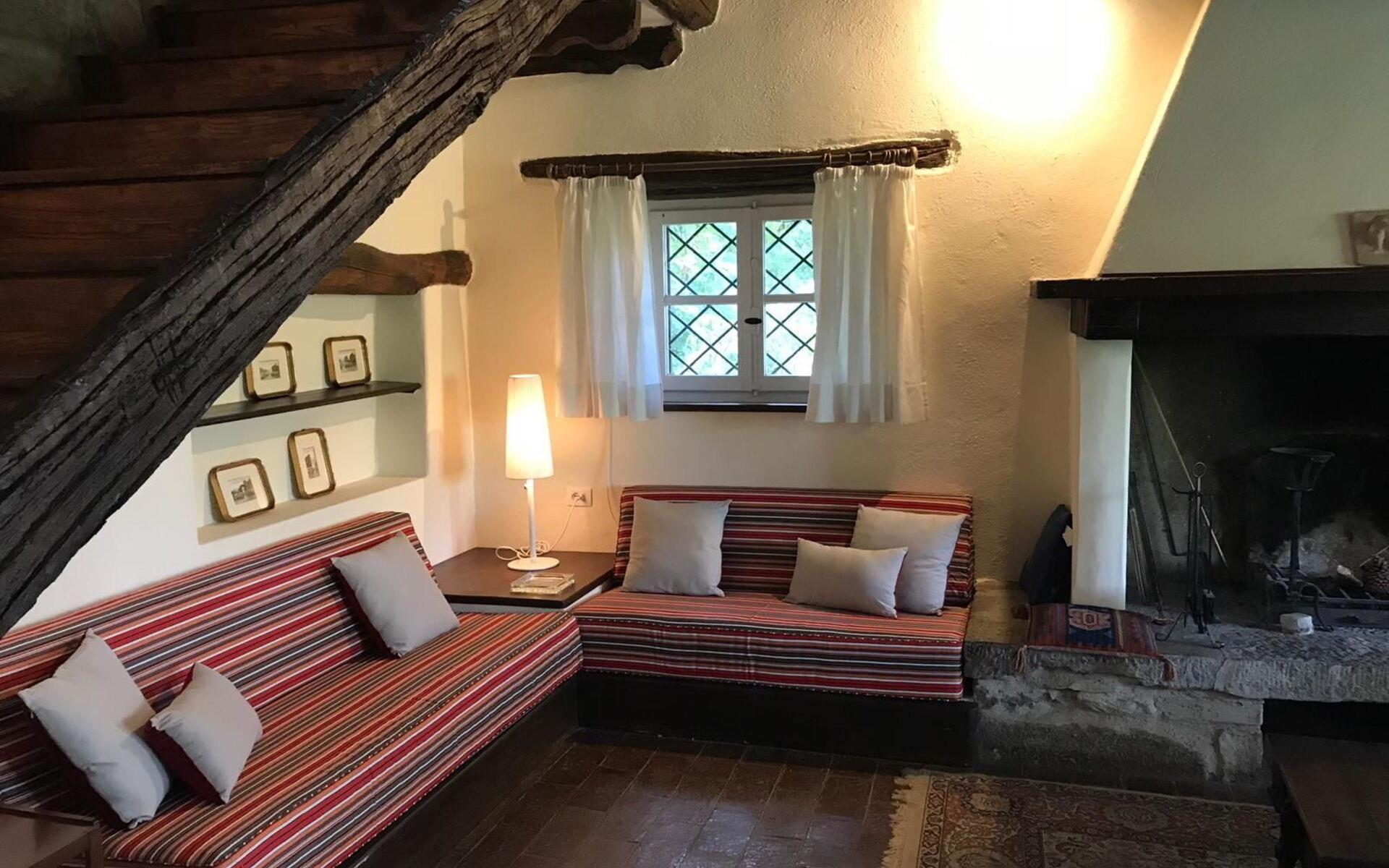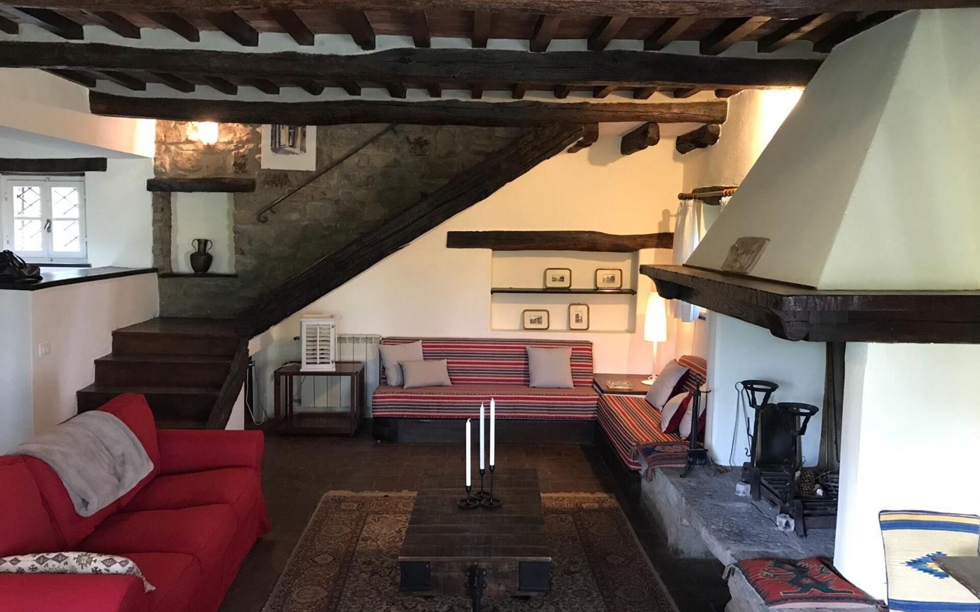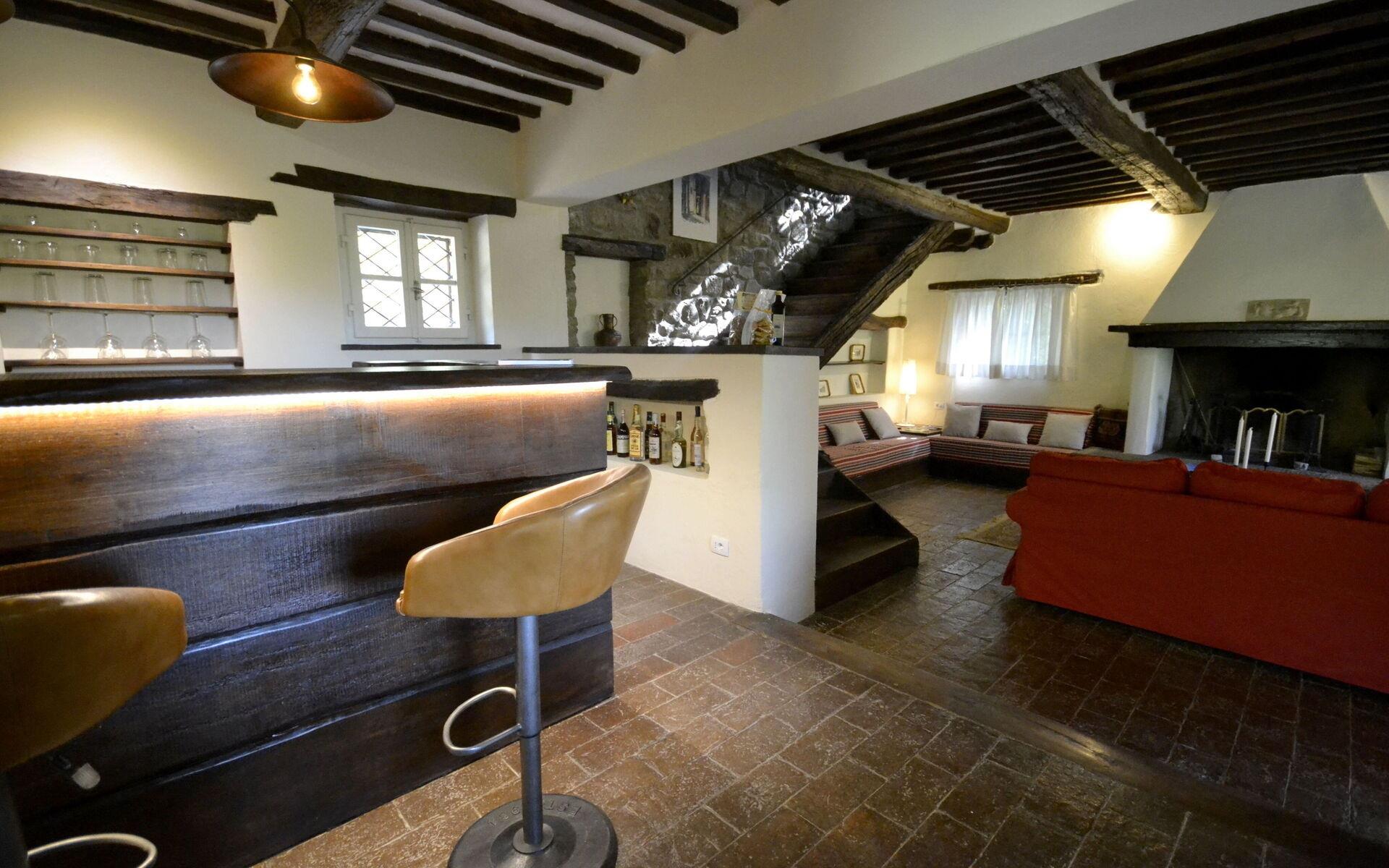 Die Innenräume der Villa delle Fragole zeichnen sich durch Decken mit freiliegenden Holzbalken und Terrakottaböden aus, die an den rustikalen toskanischen Stil erinnern, der in der ganzen Welt bekannt ist. Die Villa erstreckt sich über zwei Etagen, die durch eine interne Holztreppe und eine schöne Außentreppe aus Stein verbunden sind, auf der sich eine charakteristische Loggia mit Panoramablick befindet. Das Erdgeschoss ist über zwei verschiedene Eingänge zugänglich: Der erste führt direkt in das große Wohnzimmer, das mit seinen großen Fenstern und Ausgängen nach draußen sehr charmant und komfortabel ist. Das Wohnzimmer verfügt über Sofas, einen SAT-TV, Sitzmöglichkeiten, einen Kamin und einen Bereich, in dem Ihnen eine offene Bar zur Verfügung steht.