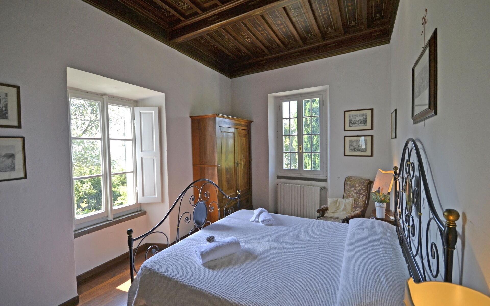 Über die Holztreppe gelangen Sie in den ersten Stock mit dem Schlafbereich, der aus drei geräumigen Doppelschlafzimmern besteht, die sich durch große Fenster mit Blick auf den Garten und das Tal auszeichnen.