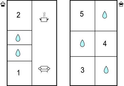 Badezimmer (nr. 1) - WC. Warmes und kaltes Wasser. Dusche