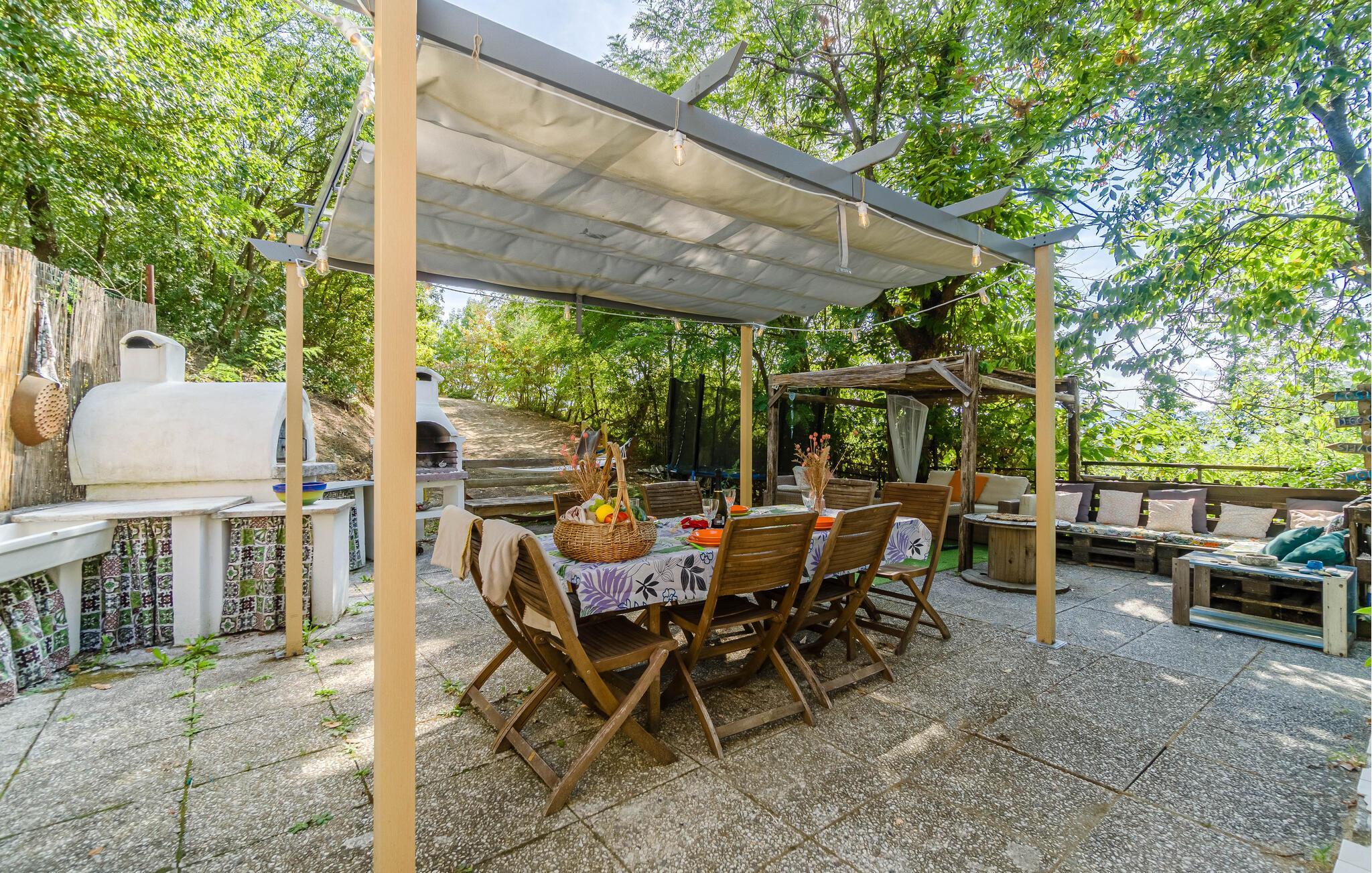 Lassen Sie auch im Freien die Seele baumeln. Genießen Sie die Sonne auf der von Bäumen umgebenen Terrasse, später können Sie Leckereien vom Grill für die ganze Familie servieren und gemeinsam unter freiem Himmel entspannen.