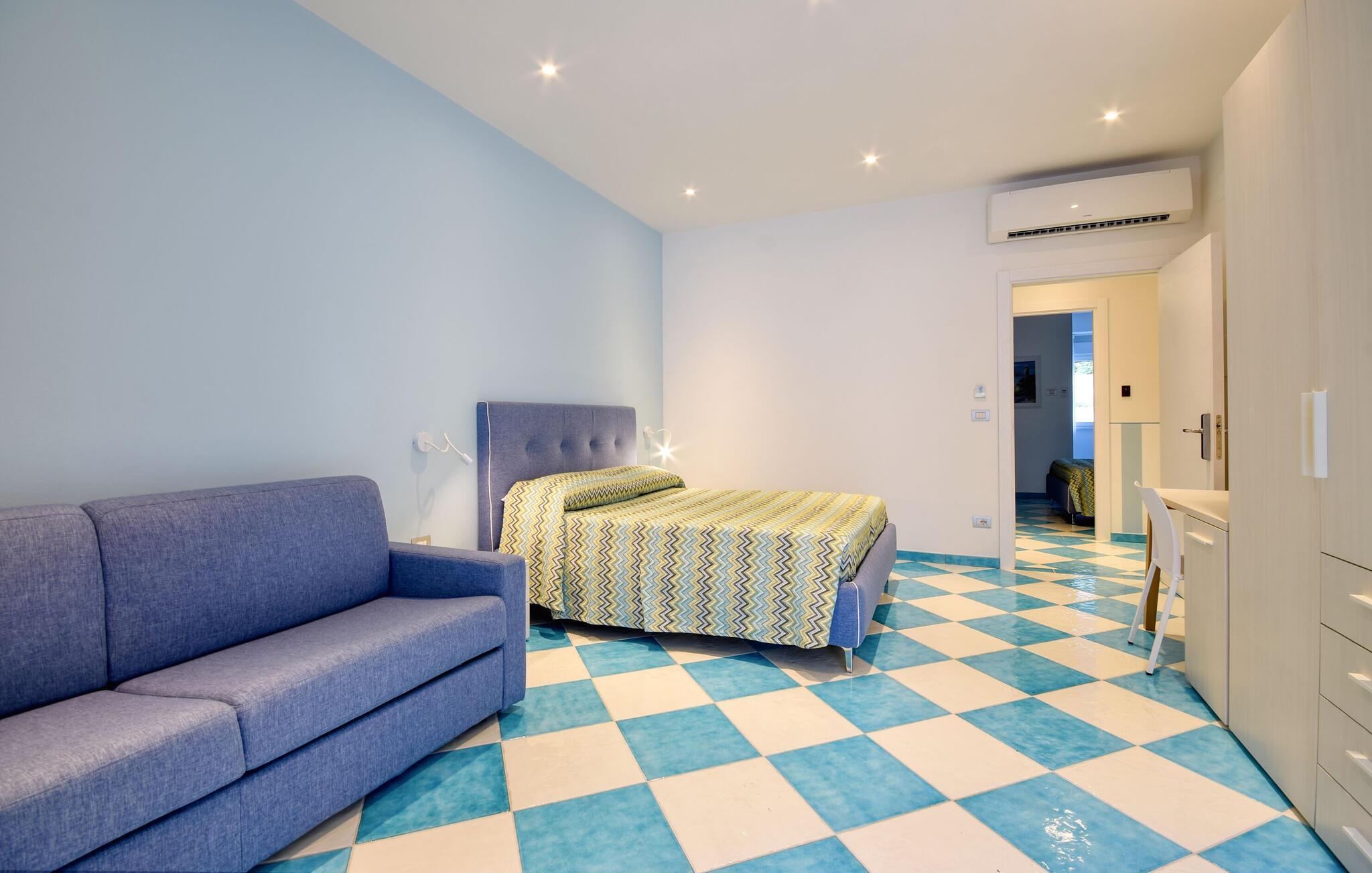 Hinweis: Das Schlafzimmer mit eigenem Bad befindet sich in einem Nebengebäude, das durch einen Korridor mit dem Hauptgebäude verbunden ist.