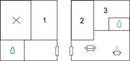 Badezimmer 5m2 (nr. 1) - WC. Warmes und kaltes Wasser. Dusche