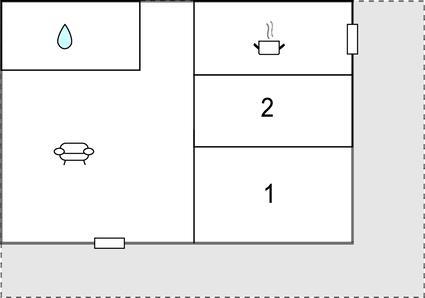 Badezimmer 5m2 (nr. 1) - WC. Warmes und kaltes Wasser. Dusche