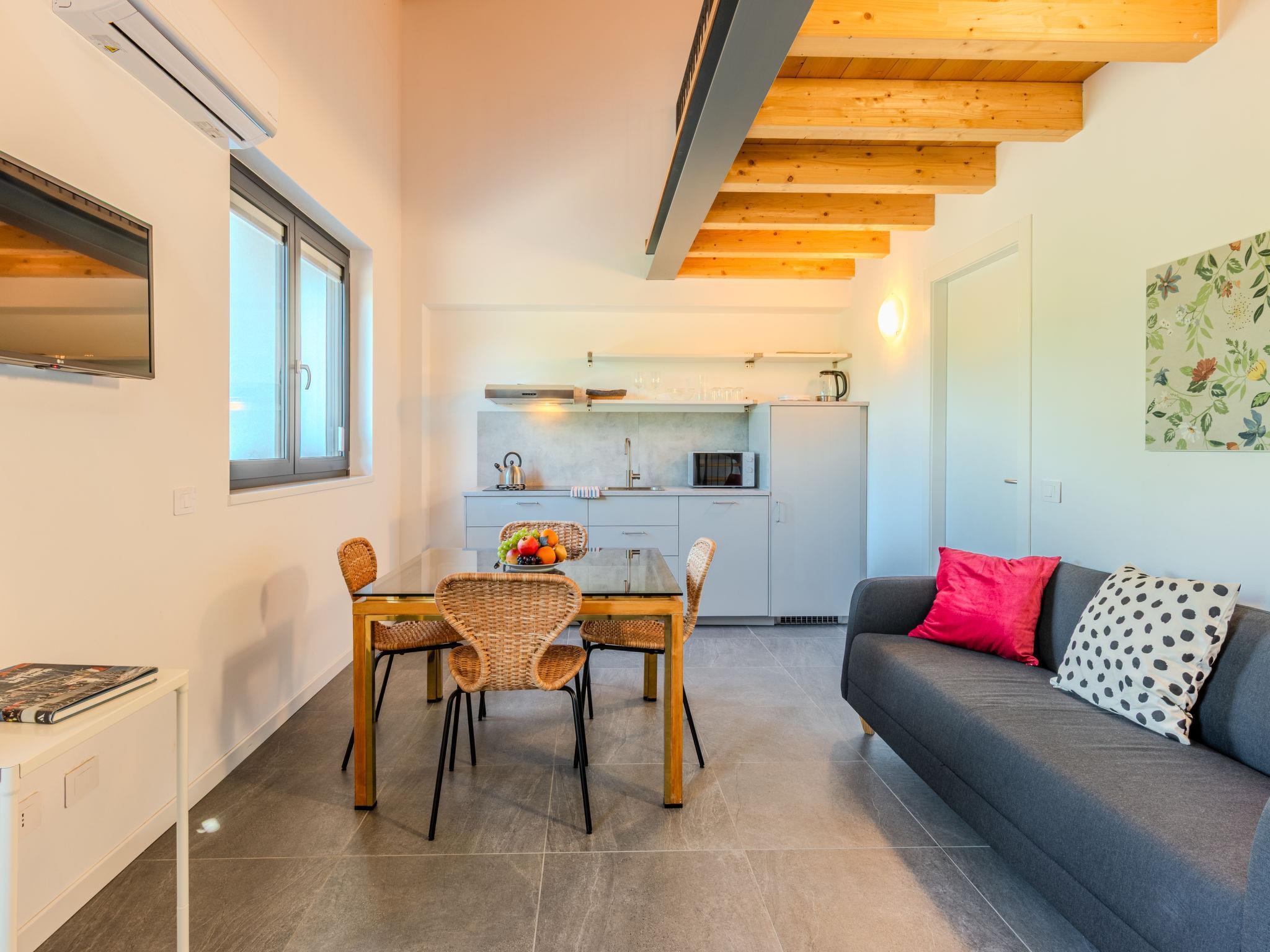 "Flat N°4", 3-Zimmer-Wohnung 45 m2 auf 2 Stockwerken im 1. Stock. Komfortabel eingerichtet: offenes Wohn-/Esszimmer mit TV. 1 Doppelzimmer mit 1 Doppelbett. Offene Küche (Geschirrspüler, 4 Induktionskochplatten, Toaster, Wasserkocher) mit Esstisch. Dusche/Bidet/WC. Klimaanlage. Obergeschoss: offene Galerie mit 2 Betten. Balkon. Balkonmöbel. Sehr schöne, auf die Landschaft. Zur Verfügung: Fliegengitter, Kinderhochstuhl, Babybett bis 2 Jahre, Haartrockner. Internet (WLAN, gratis). Parkplatz (1 Auto). Bitte beachten: Nichtraucher-Unterkunft. Feuerlöscher. IT097030B1KBNMGOD8