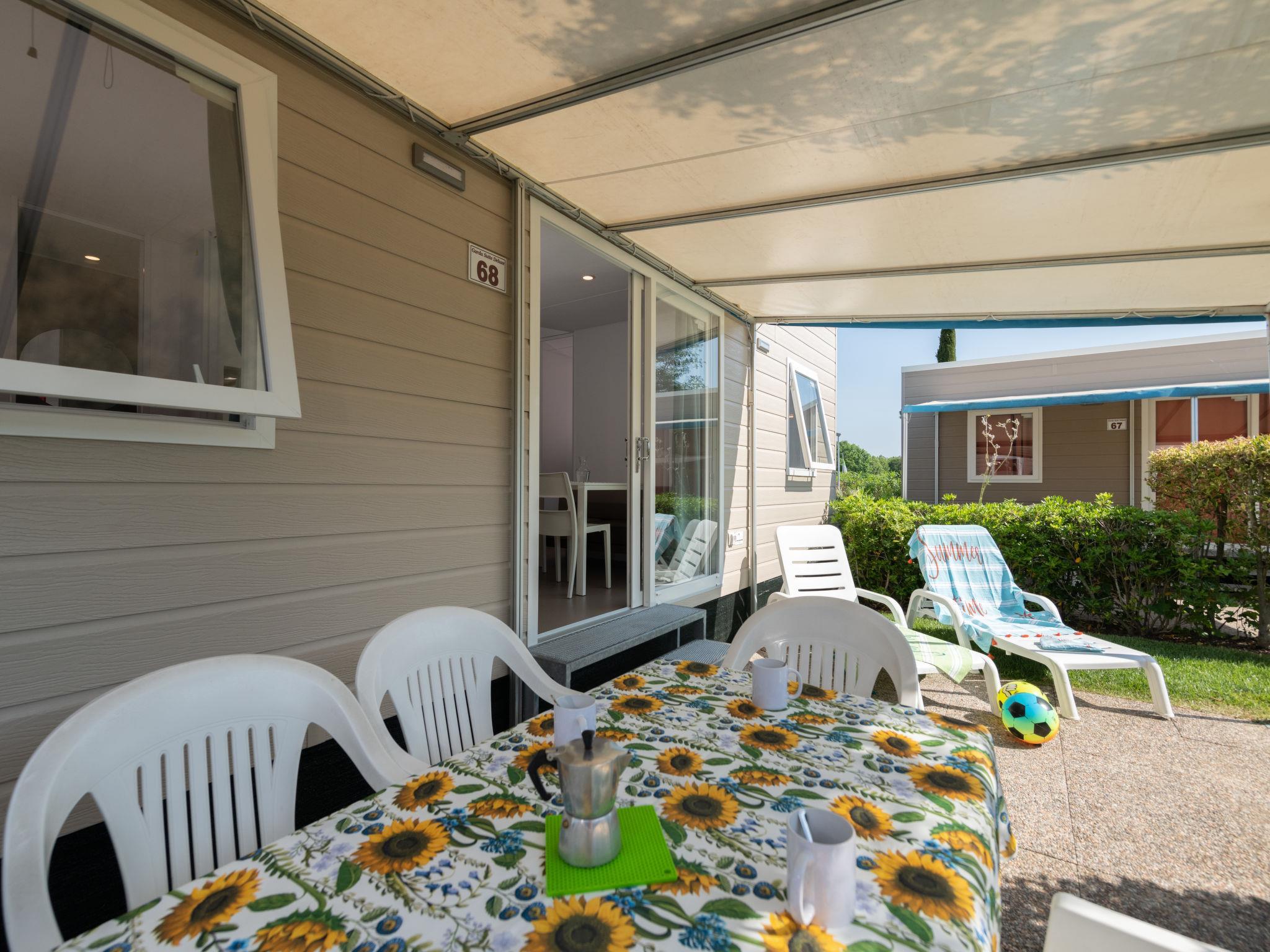 "Garda Suite Deluxe", 3-Zimmer-Mobilheim 32 m2. Objekt geeignet für 4 Erwachsene + 1 Kind. Schön und modern eingerichtet: Wohn-/Schlafzimmer mit 1 Schlafmöglichkeit (77 cm, Länge 190 cm), Esstisch, TV, Klimaanlage und Warmluftheizung. 1 Zimmer mit 1 Doppelbett (140 cm, Länge 190 cm), Dusche/WC. 1 Zimmer mit 2 Betten (80 cm, Länge 190 cm). Offene Küche (4 Flammen, Mikrowelle). Dusche/WC. Gartensitzplatz. Terrassenmöbel, Gartengrill, Liegestühle (2). Zur Verfügung: Safe, Fliegengitter, Haartrockner. Parkplatz (1 Auto). Maximal 1 Haustier/Hund erlaubt. IT017067B1HII4DV9G