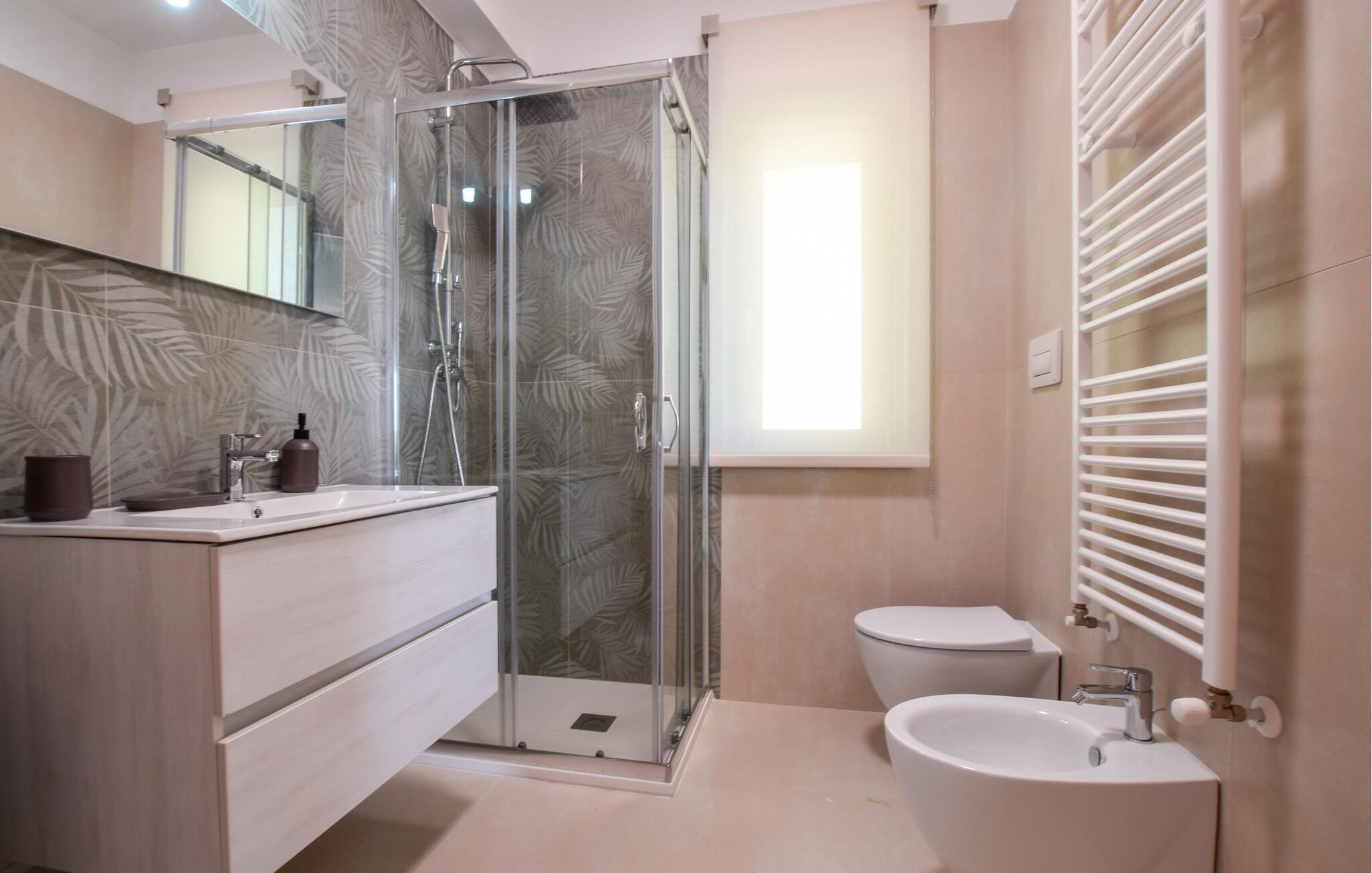 Badezimmer (nr. 2) - WC. Warmes und kaltes Wasser. Dusche