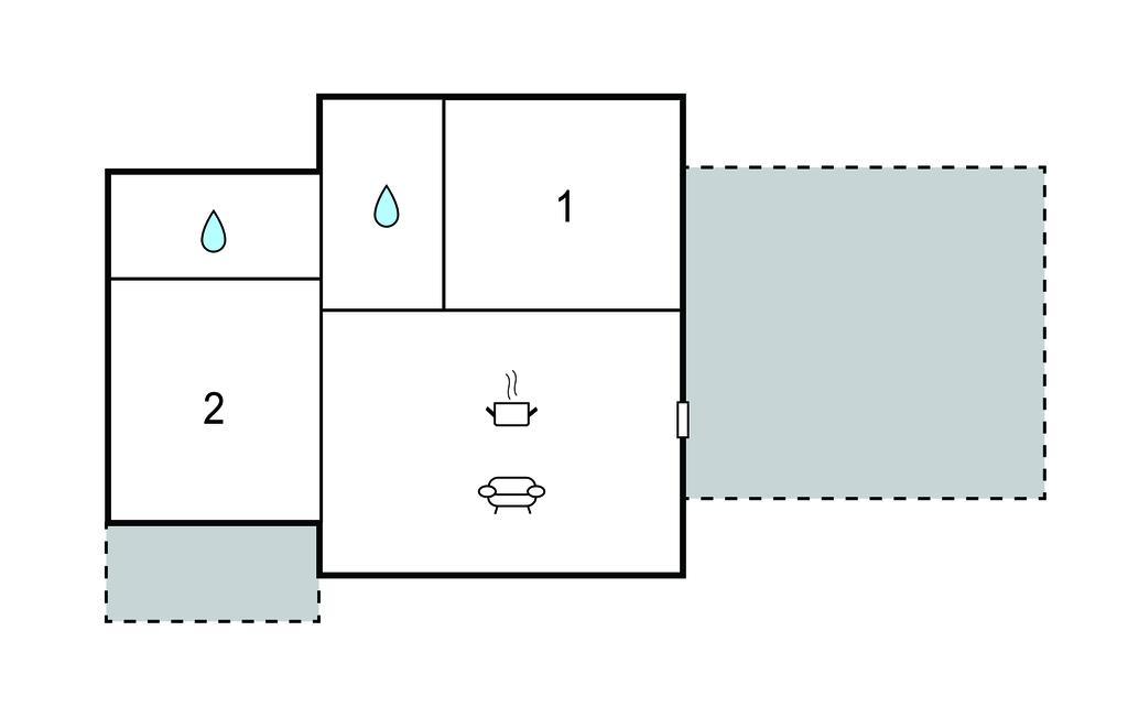 Zwei schlafzimmer, zwei badezimmer und ein großer Wohn- und Essraum mit Küche heißen Sie willkommen. Das Haus bietet genug Platz für vier Gäste. Vom Wohnraum aus führen große Balkontüren auf Ihre überdachte Terrasse. Hier können Sie morgens frühstücken oder den Tag bei einem Glas Wein ausklingen lassen während Sie den wundervollen Blick aufs Meer genießen.