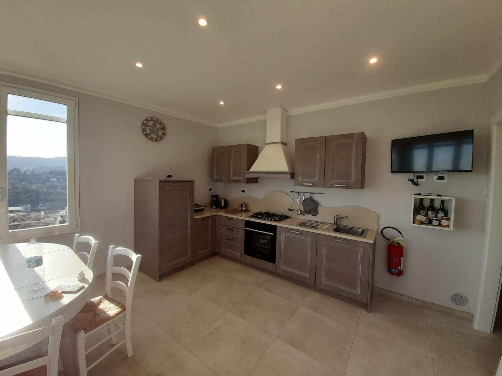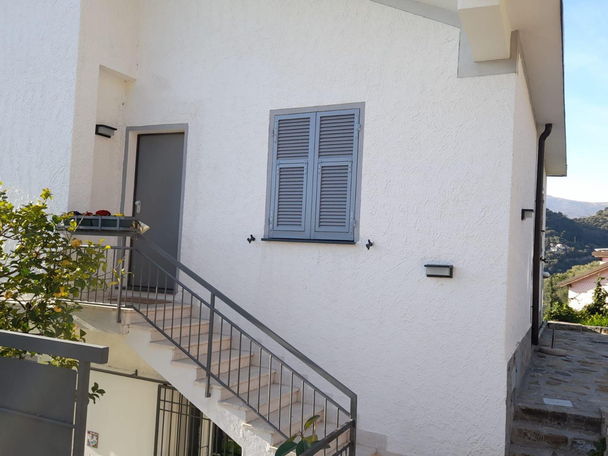 Im Außenbereich lädt der private Garten, der mit einem Esstisch, Liegestühlen, Sonnenschirm und Grill ausgestattet ist, zu entspannenden Momenten unter der ligurischen Sonne ein. Diese Grünfläche, die an die Wohnung angrenzt und ausschließlich den Gästen vorbehalten ist, ist ideal, um die Ruhe der Landschaft zu genießen, begleitet vom Rauschen der Olivenhaine, die das gesamte Anwesen umrahmen.