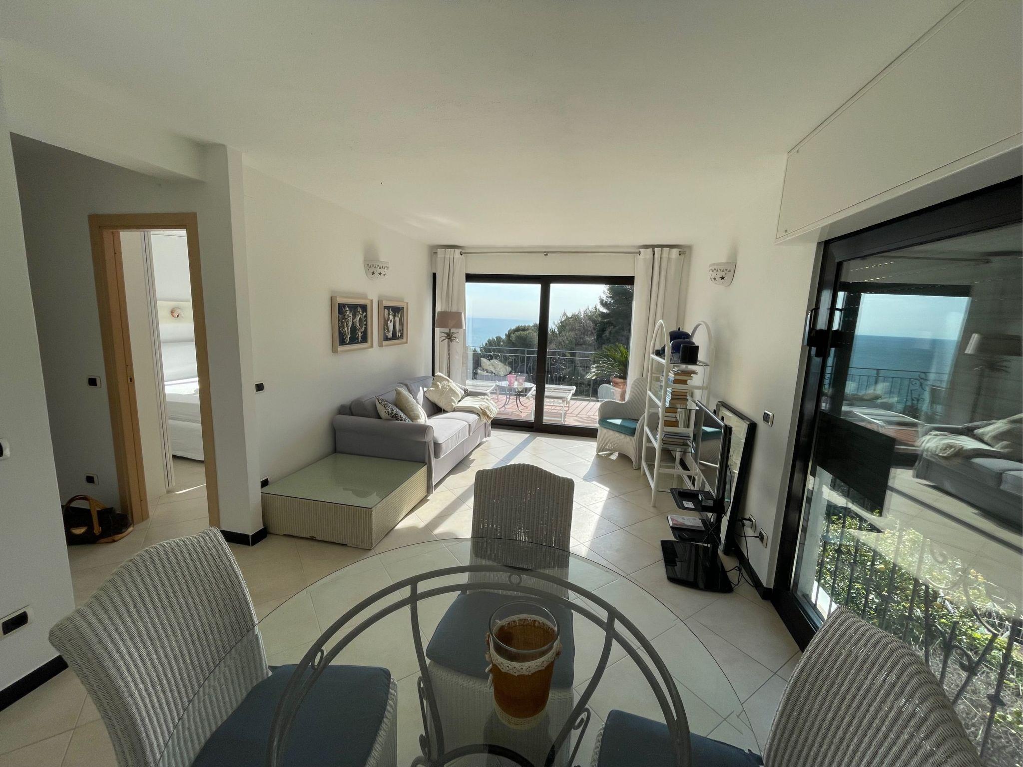 Die Wohnküche und das Schlafzimmer bieten durch große Fenstertüren Zugang zu einer herrlichen Terrasse mit Meerblick, die mit Gartenmöbeln, Liegestühlen und Sonnenschirmen ausgestattet ist. Zur Wohnung gehört auch ein Privatparkplatz.