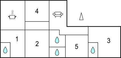 Badezimmer (nr. 1) - WC. Warmes und kaltes Wasser. Dusche