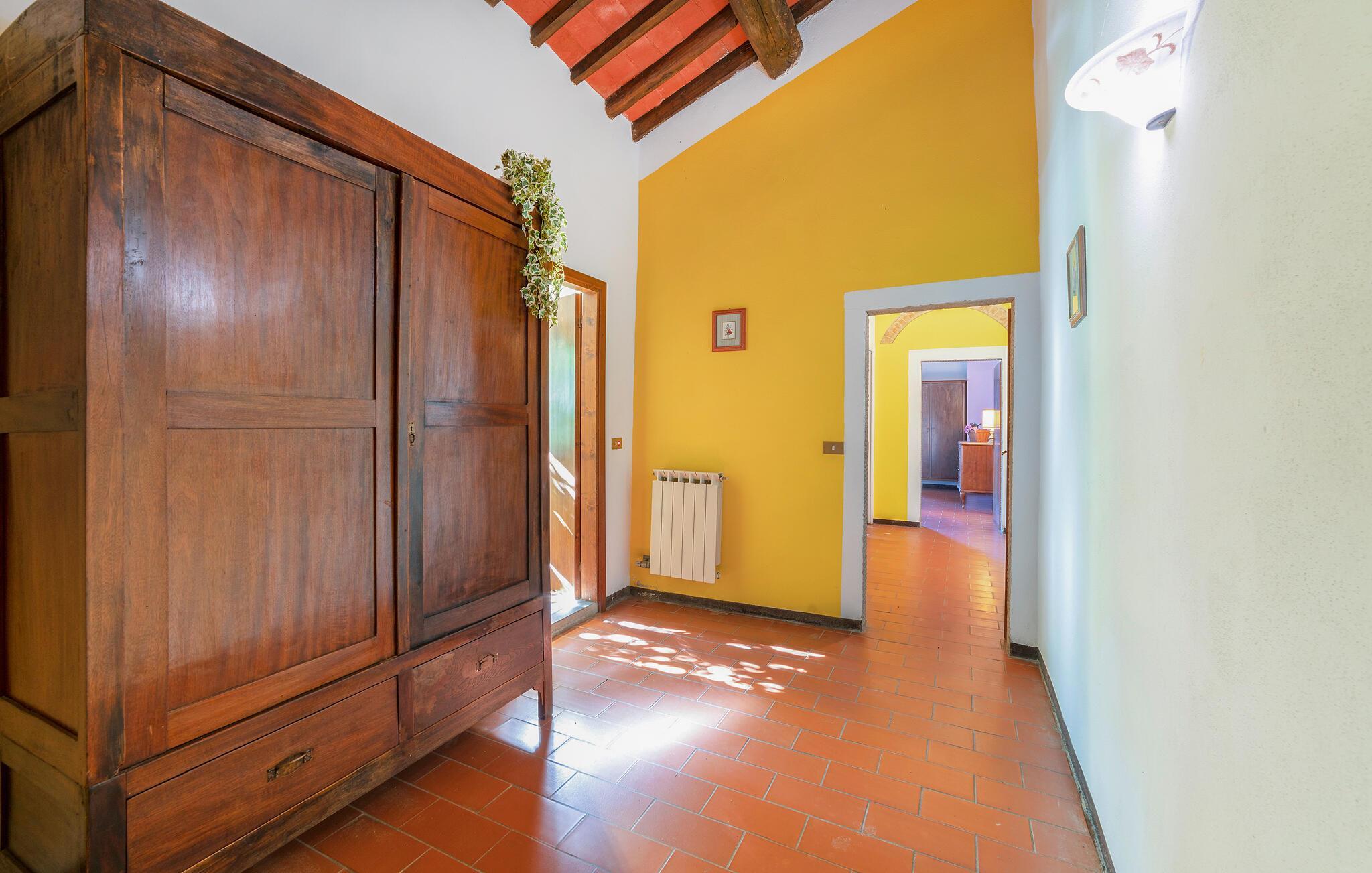 Dieses charmante und farbenfrohe Ferienhaus in Dicomano, umgeben von sanften Hügeln und üppigem Grün, bietet Ihnen die Gelegenheit, dem Alltag zu entfliehen. Genießen Sie den Komfort und die Ruhe dieses authentischen Landhauses, während Sie gleichzeitig von modernen Annehmlichkeiten profitieren. Das Ferienhaus ist liebevoll gestaltet und lädt Sie zum Verweilen ein. Der großzügige Wohnbereich mit traditionellen Holzbalken und Terrakottaböden vermittelt ein warmes Ambiente. Nutzen Sie den offenen Kamin, um gemütliche Abende zu verbringen, oder bereiten Sie in der offenen Küche köstliche Gerichte mit regionalen Zutaten zu. Die Essküche bietet Ihnen genügend Platz für gemeinsame Mahlzeiten, bei denen Sie unvergessliche Momente mit der Familie oder Freunden schaffen.