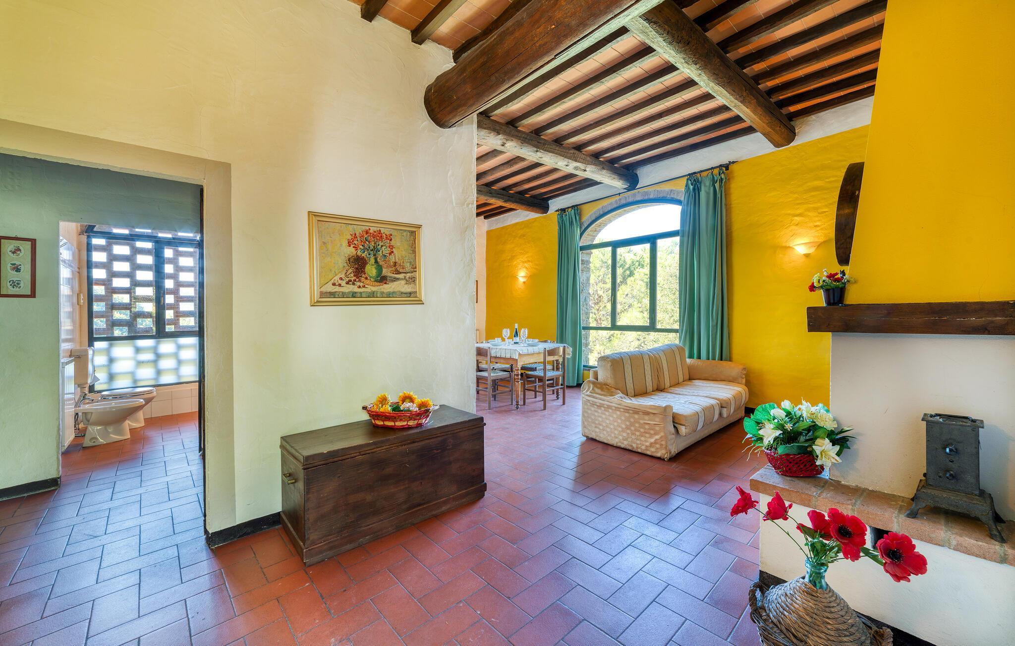 Dieses charmante und farbenfrohe Ferienhaus in Dicomano, umgeben von sanften Hügeln und üppigem Grün, bietet Ihnen die Gelegenheit, dem Alltag zu entfliehen. Genießen Sie den Komfort und die Ruhe dieses authentischen Landhauses, während Sie gleichzeitig von modernen Annehmlichkeiten profitieren. Das Ferienhaus ist liebevoll gestaltet und lädt Sie zum Verweilen ein. Der großzügige Wohnbereich mit traditionellen Holzbalken und Terrakottaböden vermittelt ein warmes Ambiente. Nutzen Sie den offenen Kamin, um gemütliche Abende zu verbringen, oder bereiten Sie in der offenen Küche köstliche Gerichte mit regionalen Zutaten zu. Die Essküche bietet Ihnen genügend Platz für gemeinsame Mahlzeiten, bei denen Sie unvergessliche Momente mit der Familie oder Freunden schaffen.
