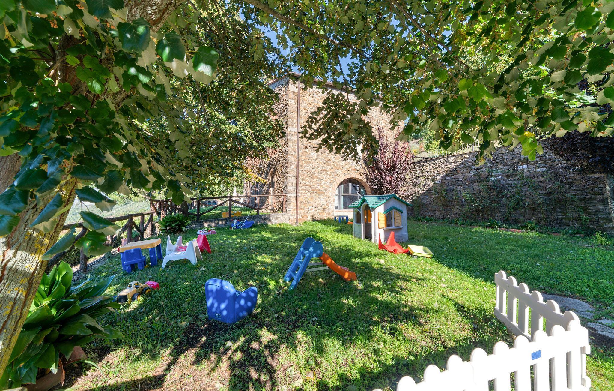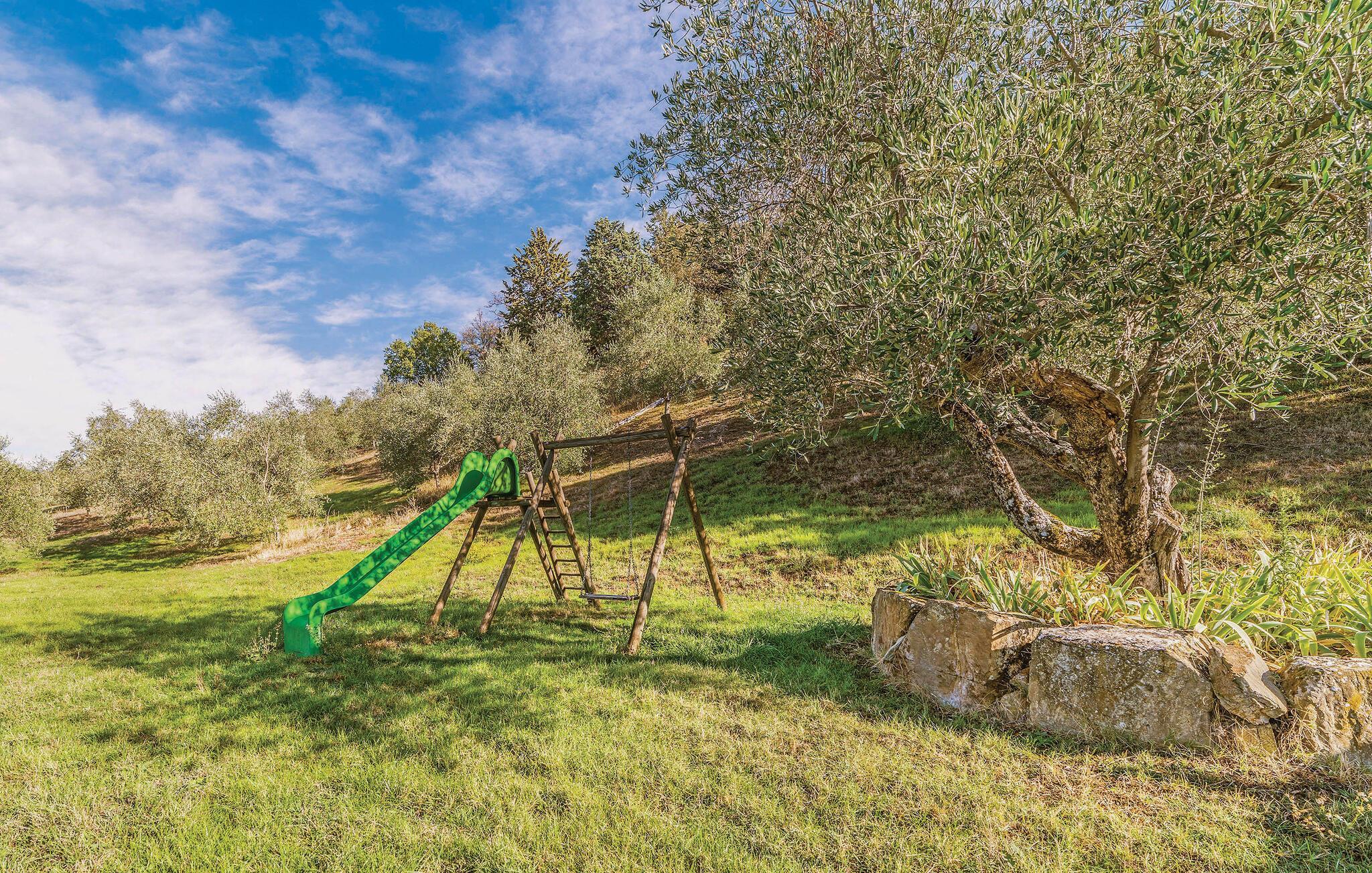 Der Außenbereich ist ein wahres Paradies. Entspannen Sie am großen Gemeinschaftspool mit Liegen und Sonnenschirmen oder genießen Sie ein Picknick auf der grünen Wiese. Für die kleinen Gäste gibt es eine Schaukel und eine Rutsche sowie viel Platz zum Spielen. Nutzen Sie die Terrasse für Mahlzeiten im Freien und bewundern Sie dabei den herrlichen Blick auf die Landschaft.